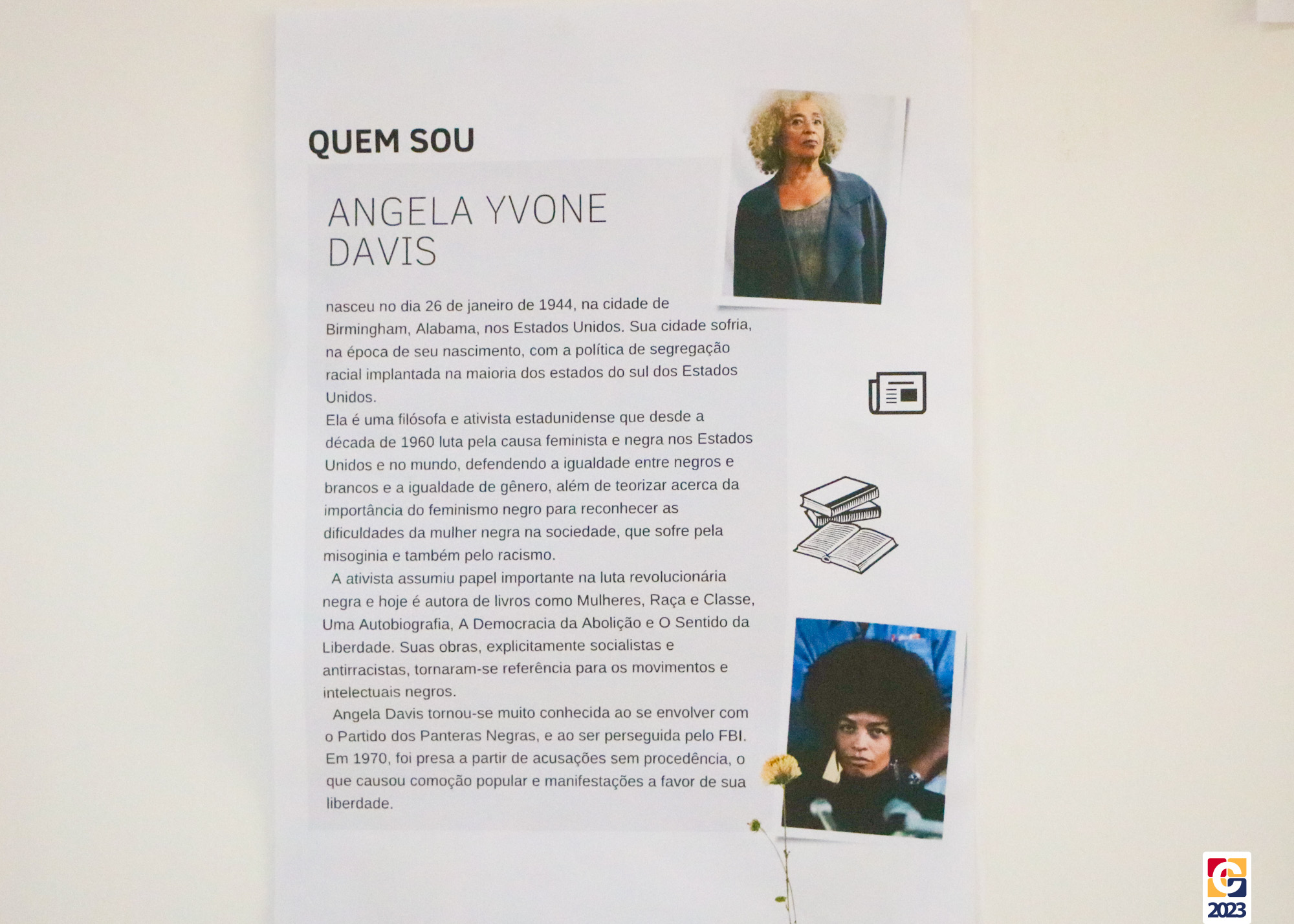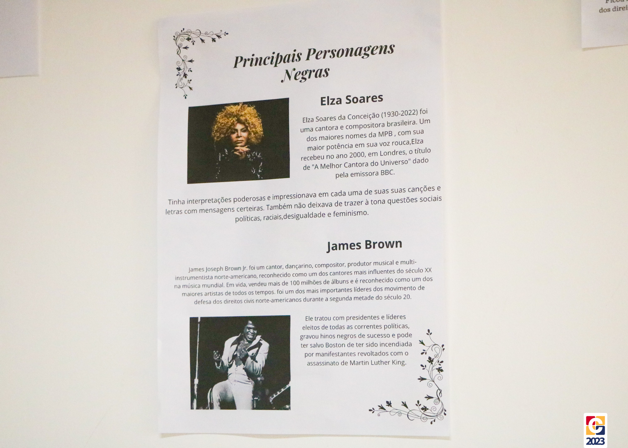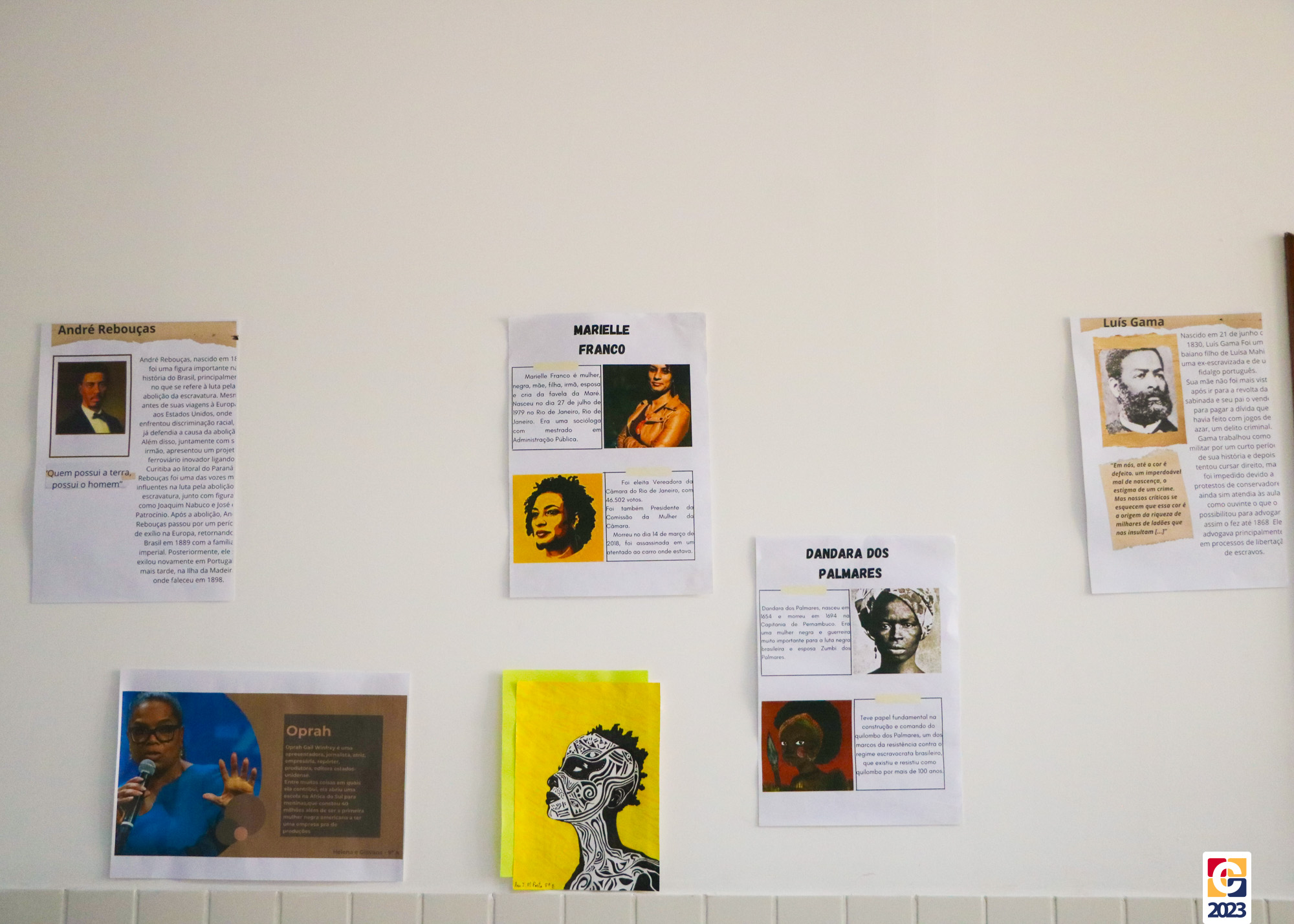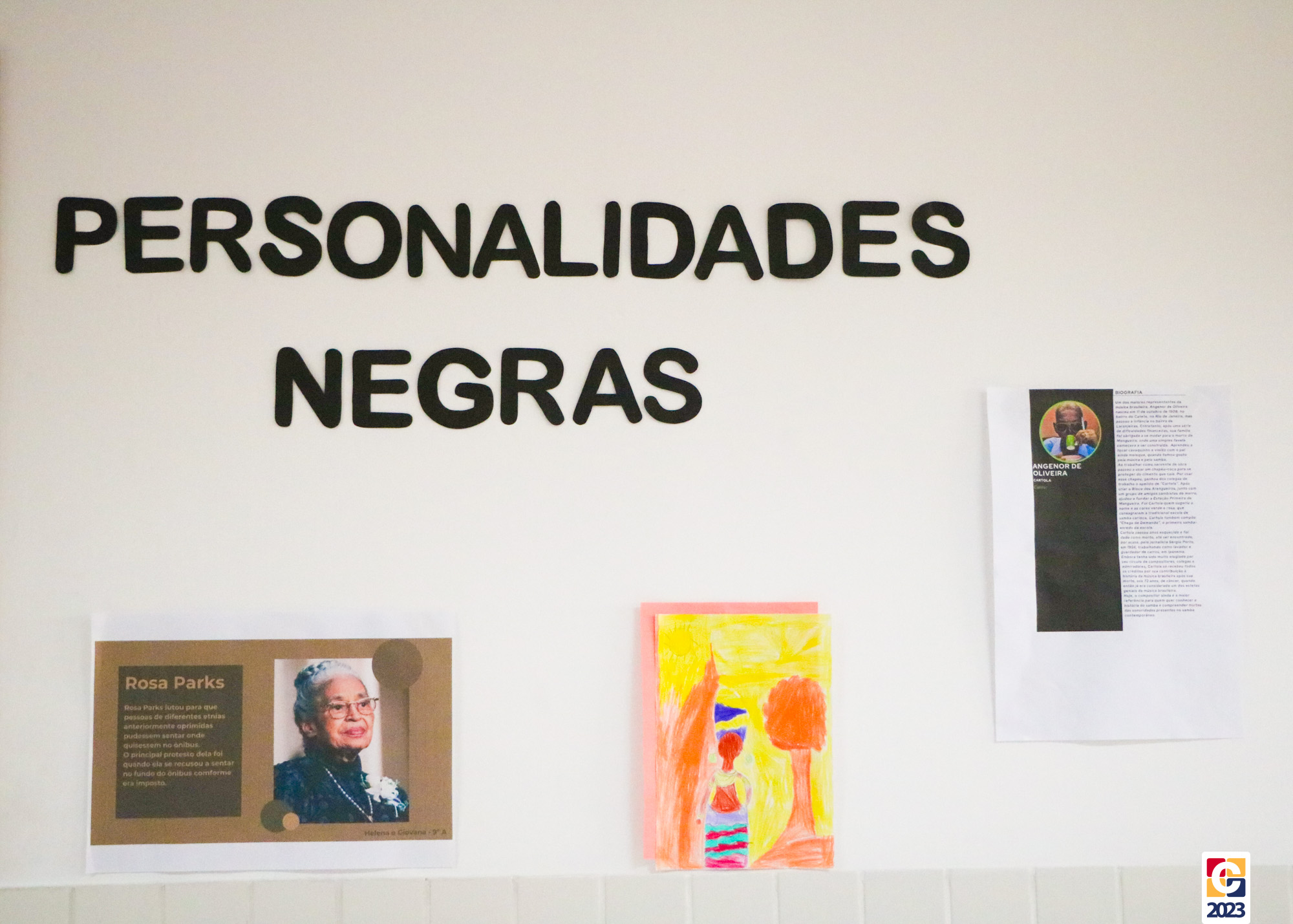 Até hoje (23), os corredores do colégio estão adornados; neles, destacam-se nomes e histórias marcantes na luta contra o preconceito racial, como Tim Maia, Michelle Obama, Angenor de Oliveira (o Cartola), Rosa Parks, dentre outros, imortalizados em trabalhos pelas paredes. As fotos da exposição você acessa, curte e compartilha com amigos e familiares no álbum a seguir. 😍