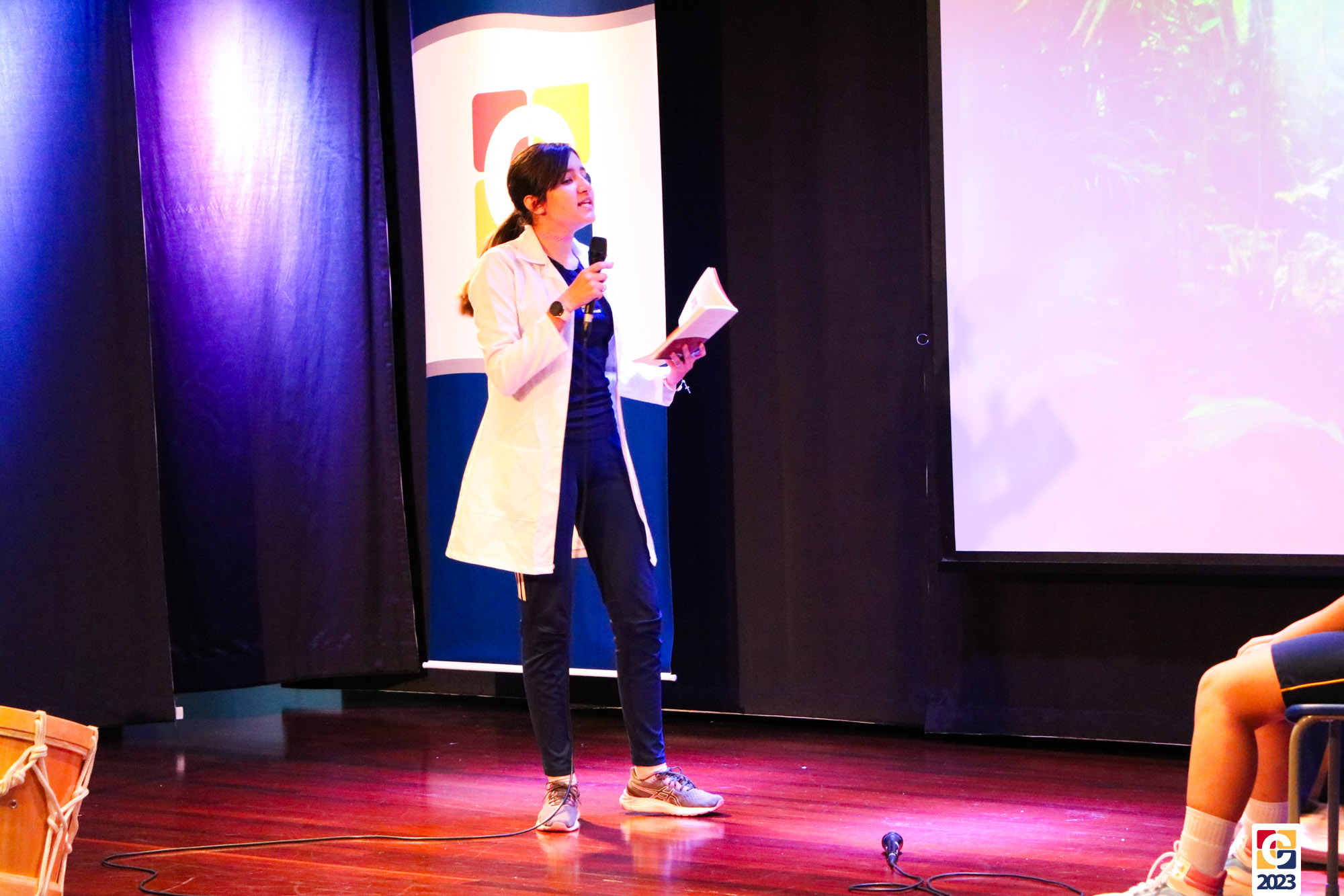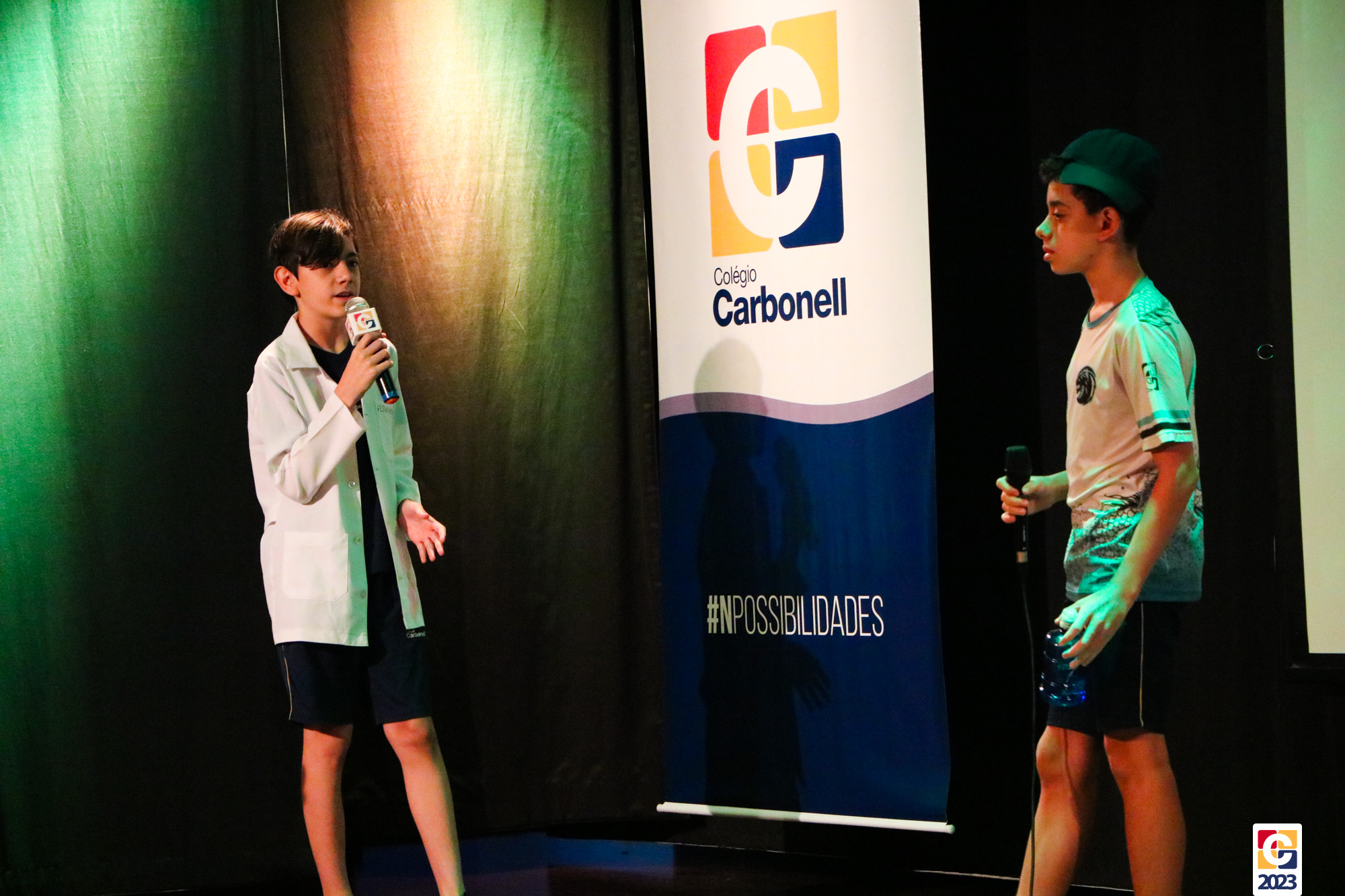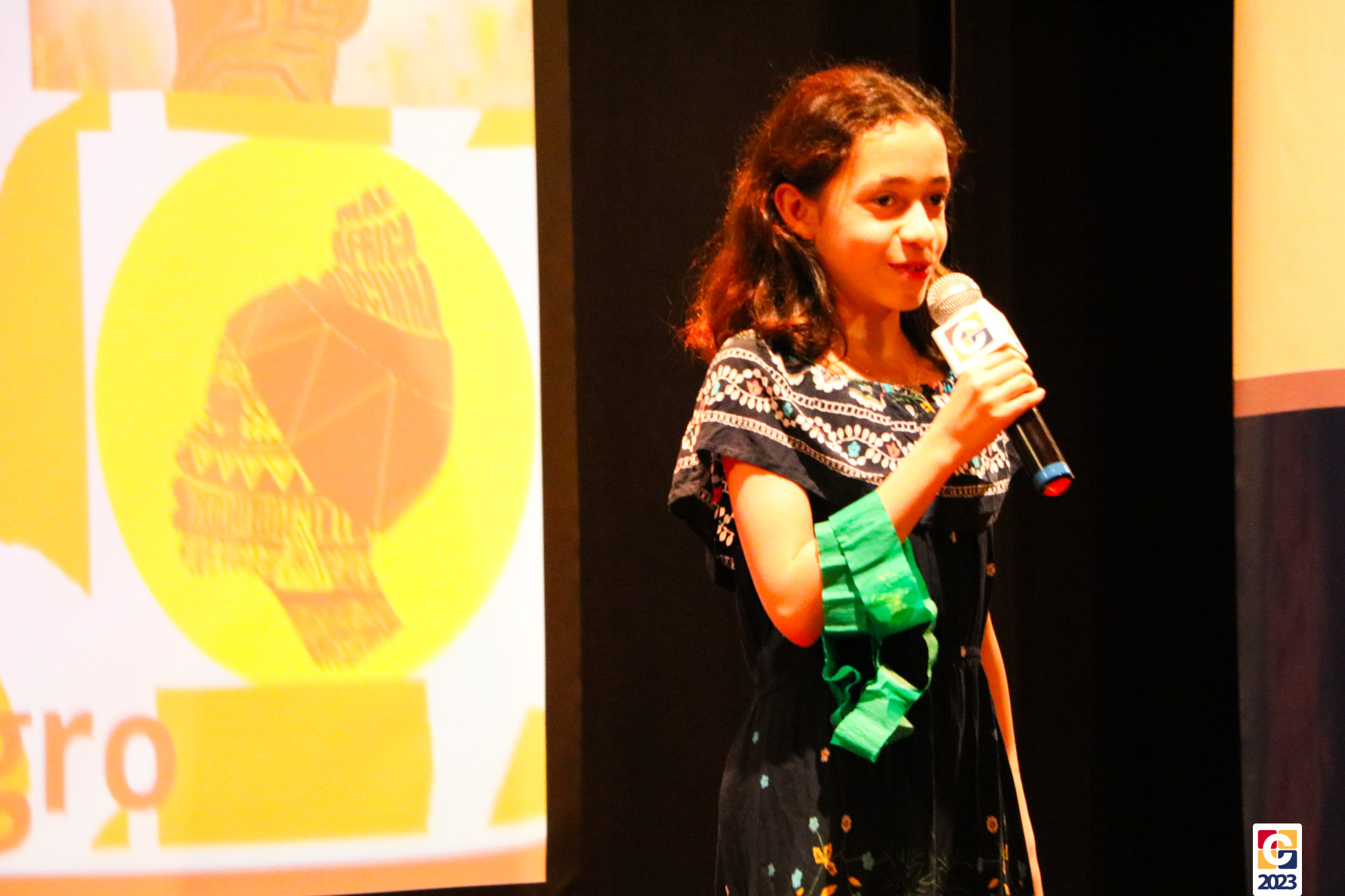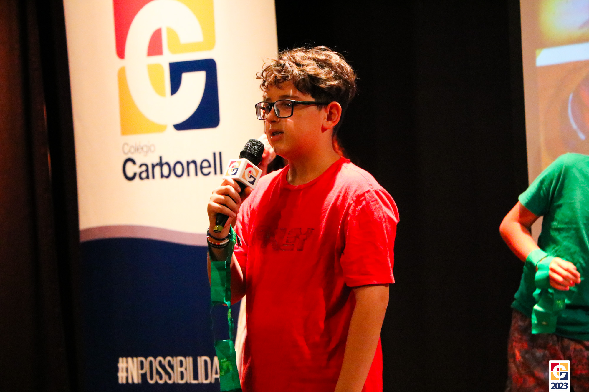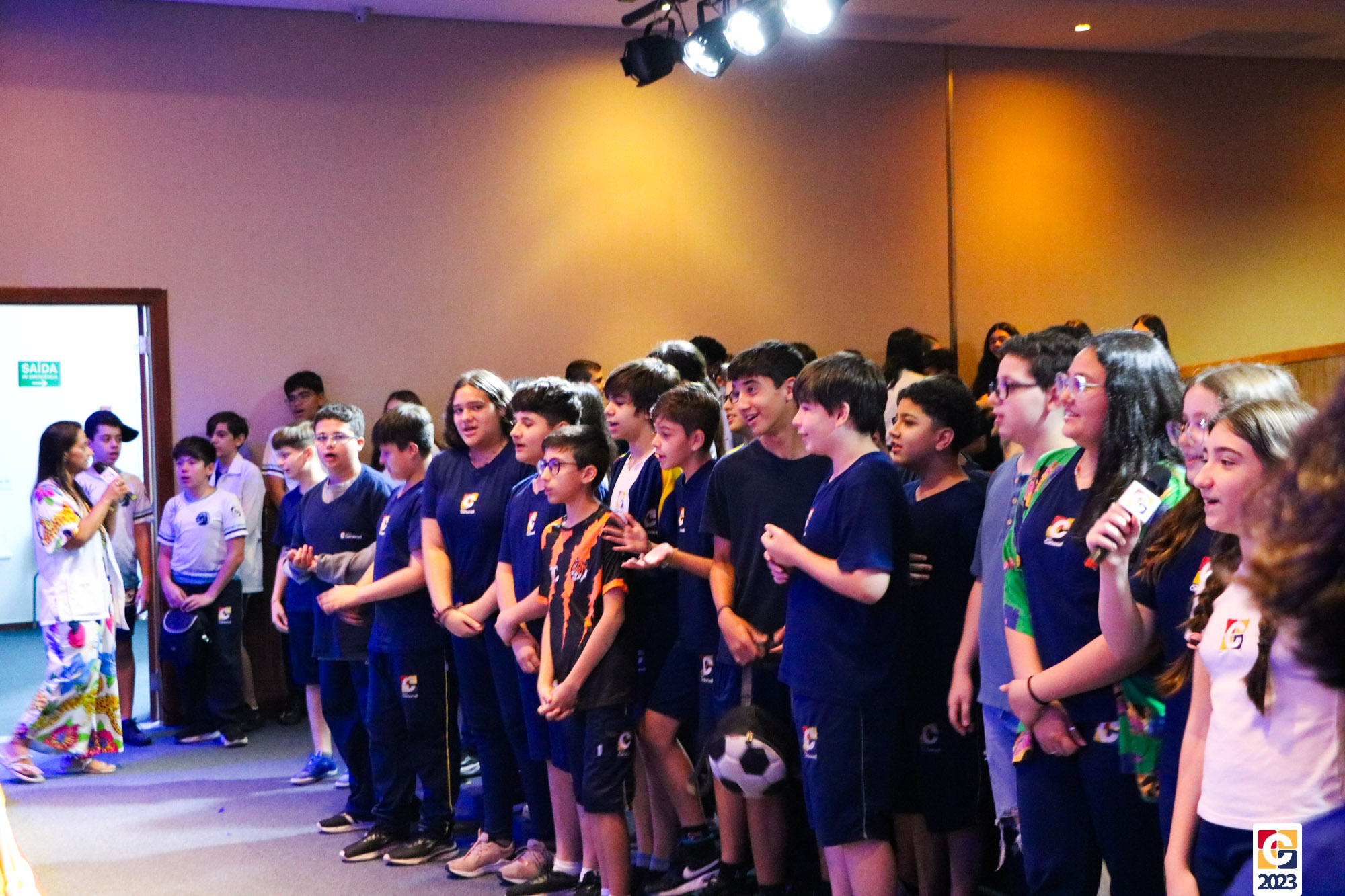 Turmas de 6º ano apresentaram poemas baseados em contos africanos que eles mesmos produziram, reforçando, assim, a aprendizagem e a absorção das leituras. A abordagem proporcionou uma perspectiva da cultura africana que contribui para promover o entendimento e o respeito pela diversidade. Já o 7º ano tomou conta do palco e apresentou um espetáculo teatral também baseado nos contos africanos. Nas peças, salas de aula onde o professor narrava o conto eram retratadas, enquanto os atores encenavam a história caracterizados com roupas típicas. 🎭