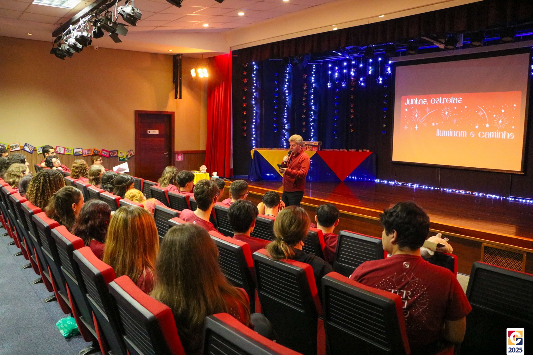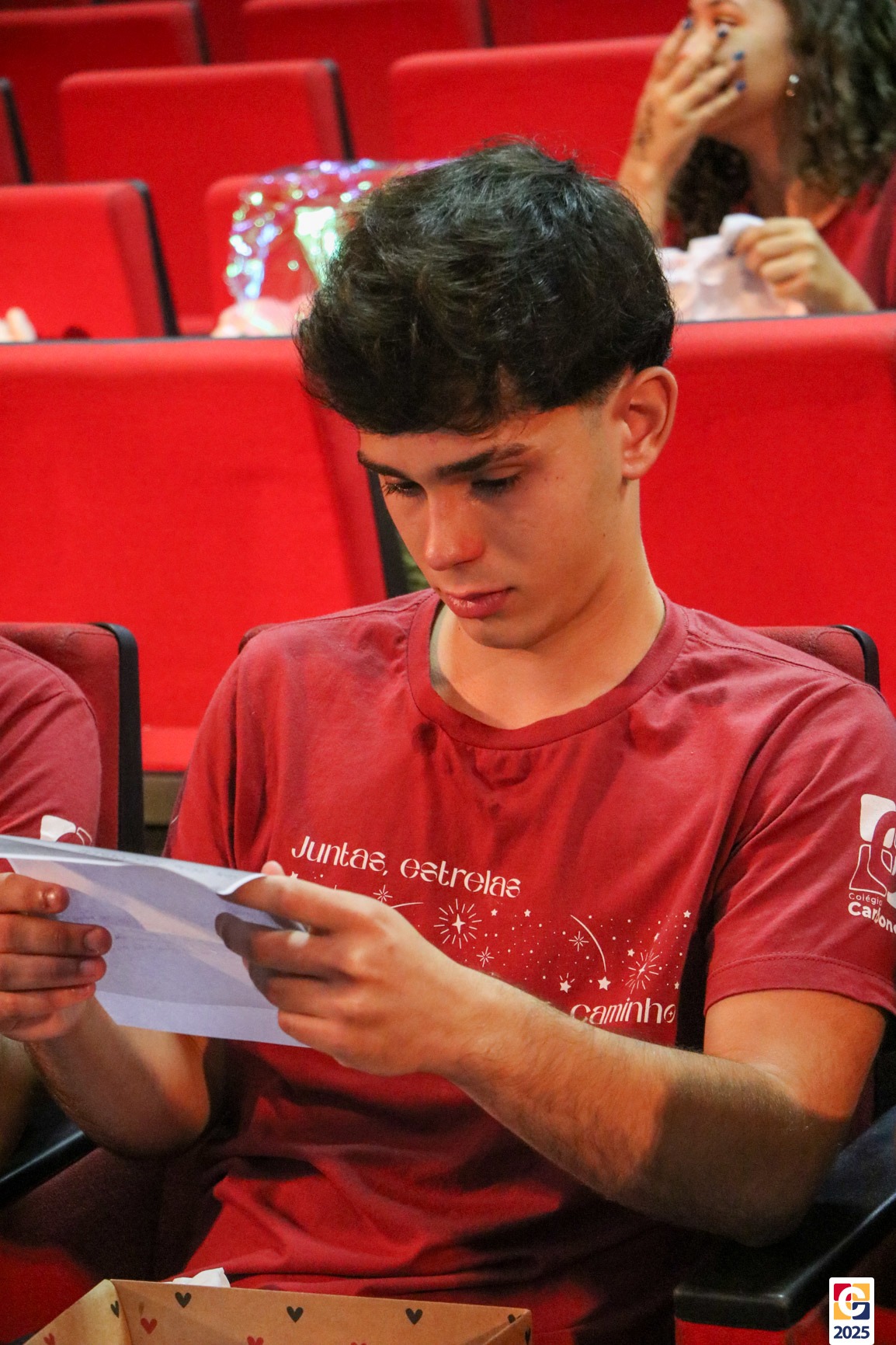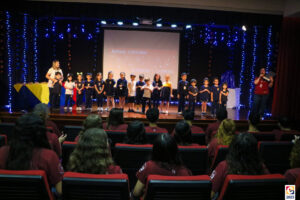 O Terceirão 2025 viveu um dia inesquecível. Em um evento realizado no Teatro Oswaldo Mazoni, os estudantes participaram de uma despedida onde cada dinâmica teve seu brilho e importância especial. O dia contou com uma linda apresentação do Infantil 5 para os estudantes, uma retrospectiva tocante e com a entrega das “caixas nostálgicas”, preparadas com carinho pelos pais com objetos cheios de significado. 🤗