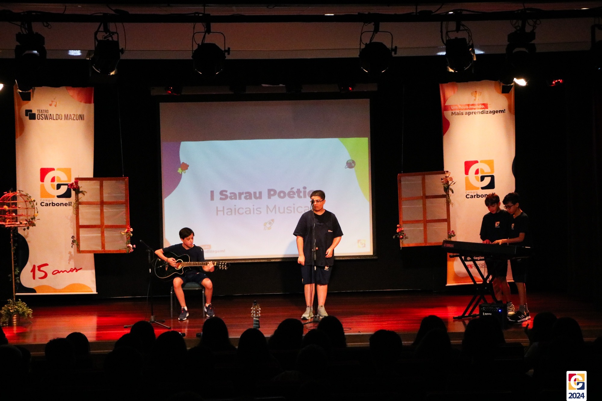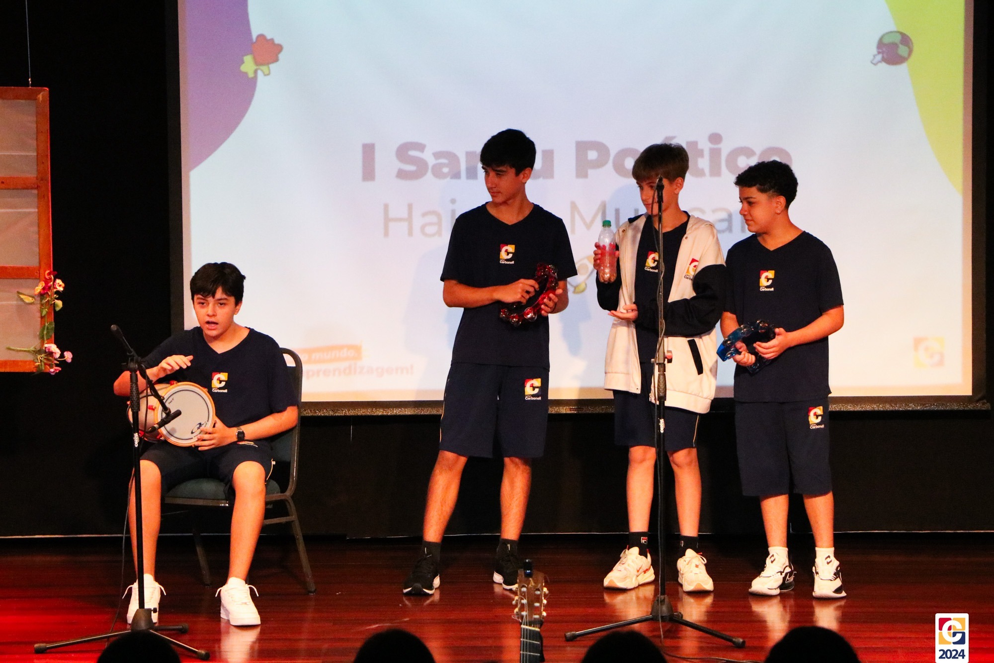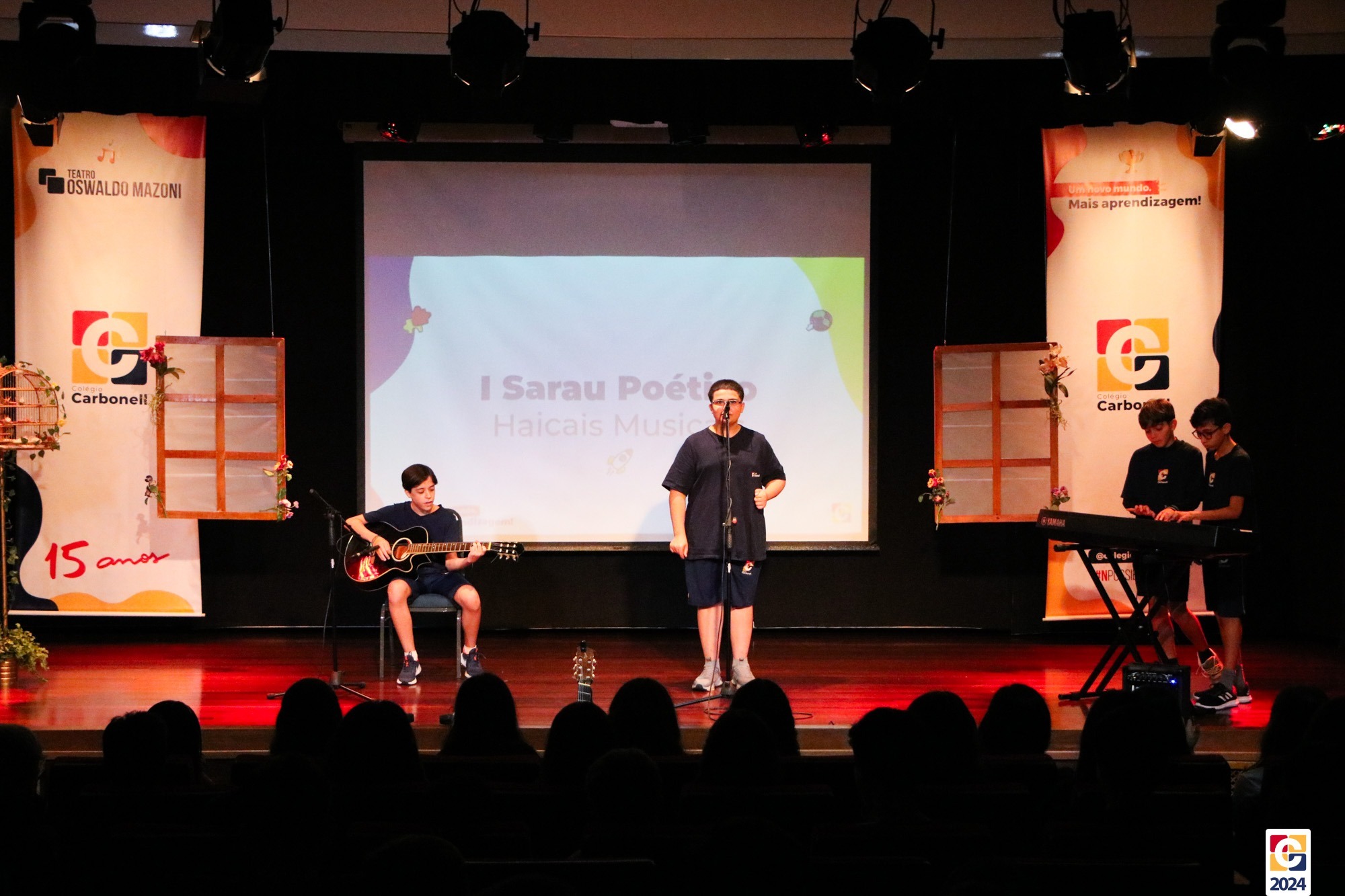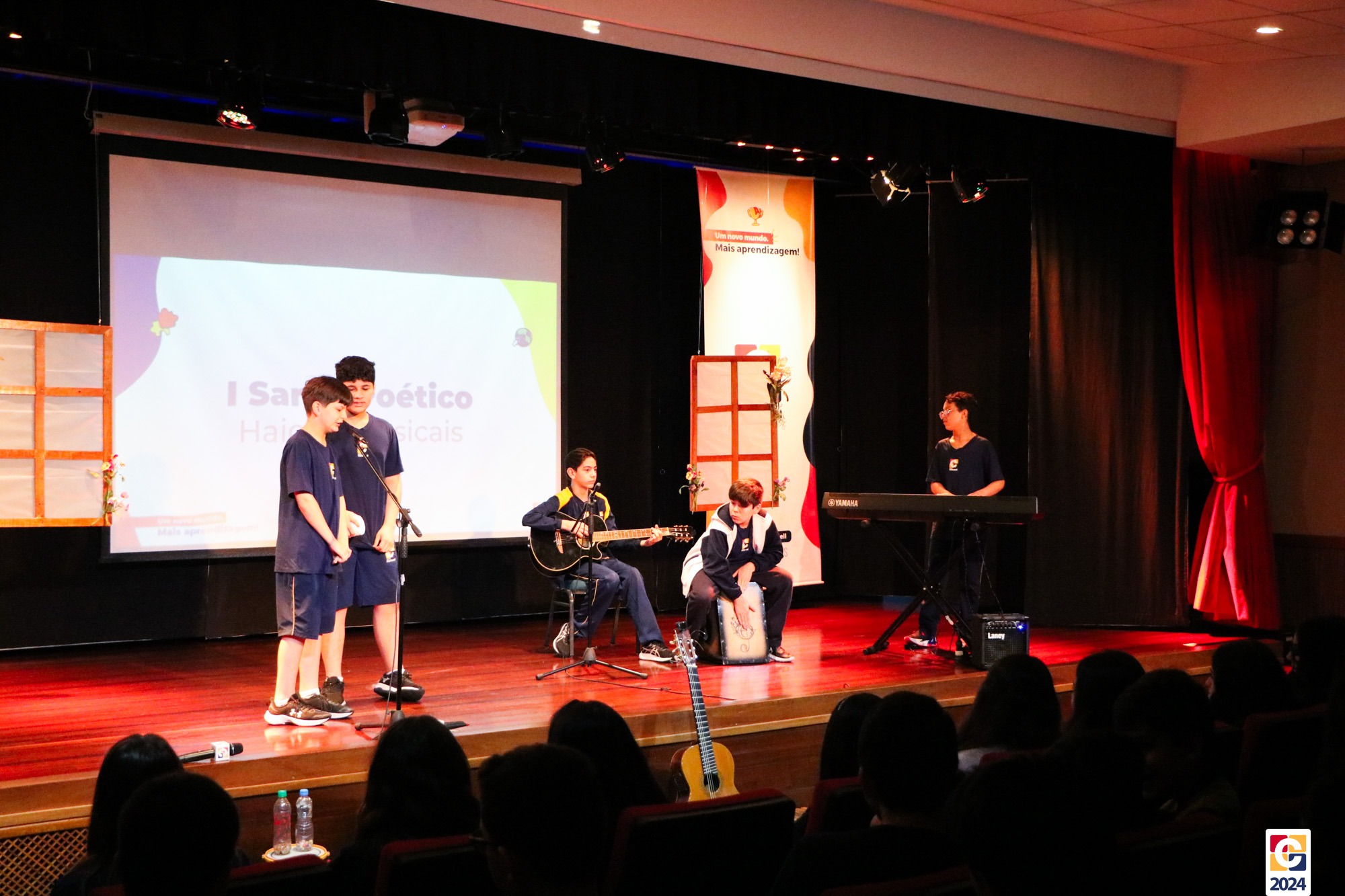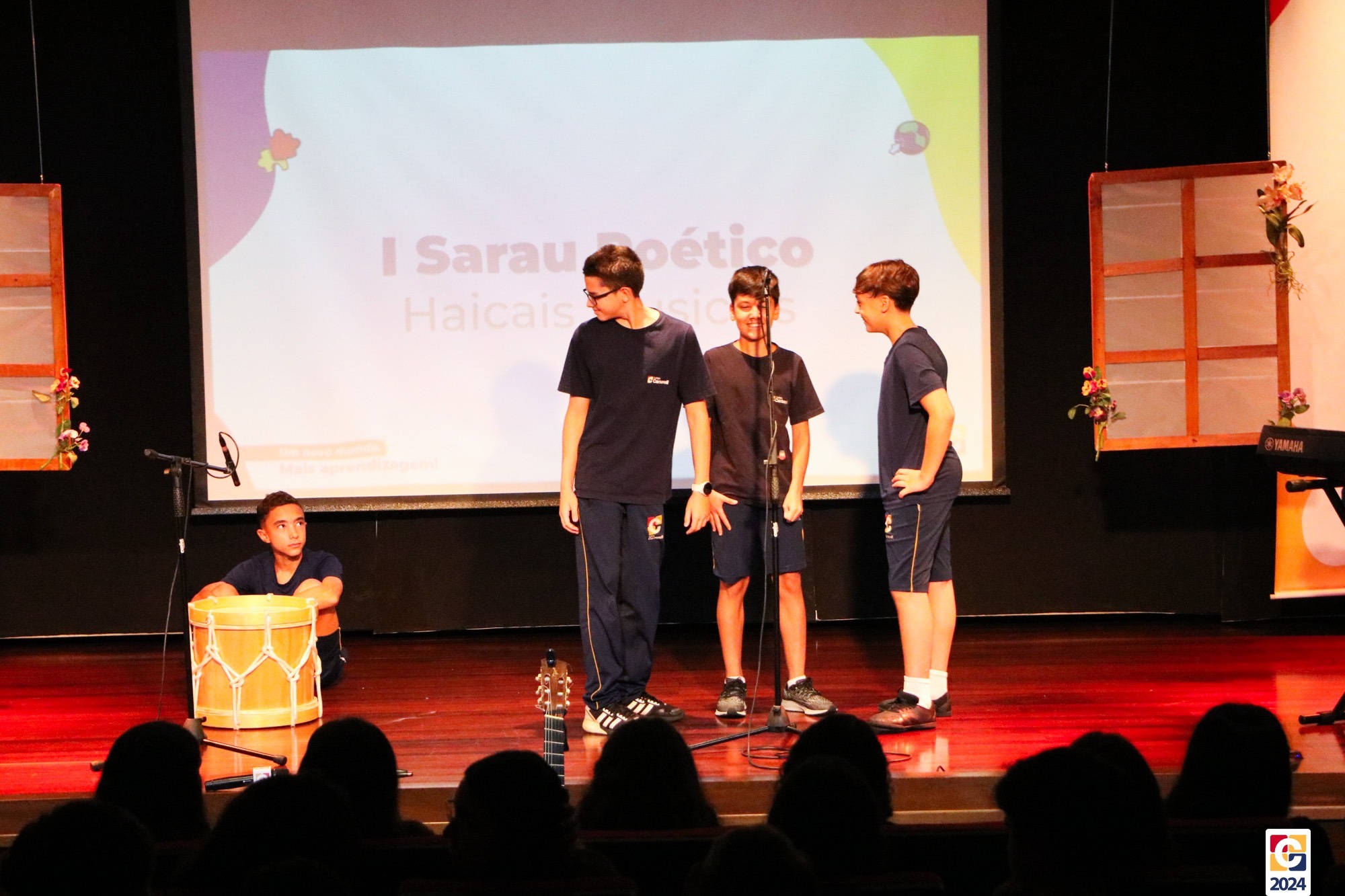 Assim, os haicais — agora, “musicais” — foram apresentados em um show de criatividade e originalidade! O evento também contou com a participação da Diana, responsável pela Sala de Leitura, e dos professores Kadu, Guilherme Vasquez e Guilherme Ghellere, os quais abrilhantaram a manhã com textos autorais e dramatizações de poemas. Foi um momento de muita poesia e canção, que, certamente, gerou muito aprendizado a todos os envolvidos. 🔰