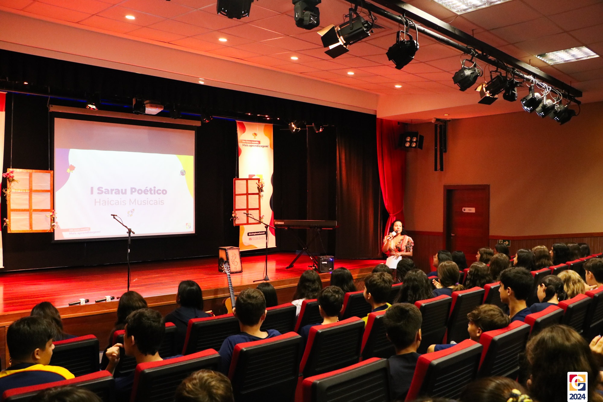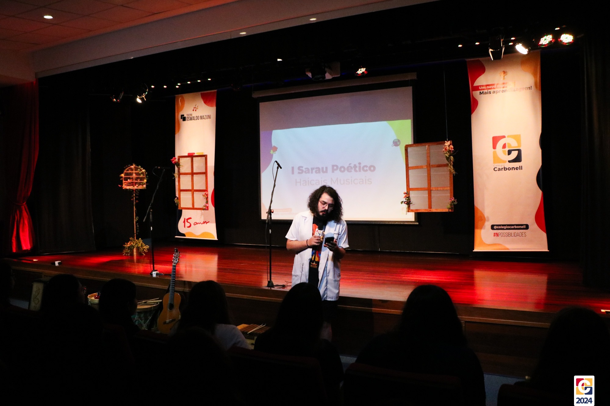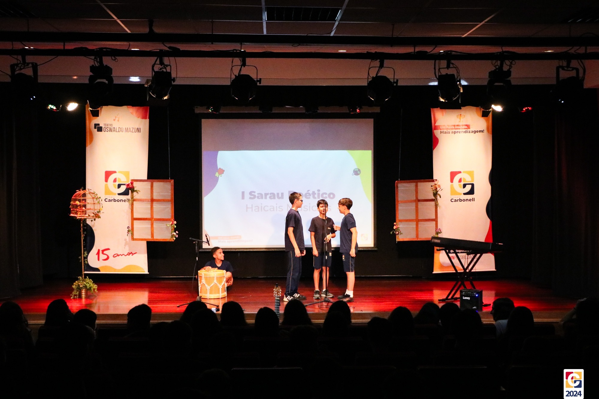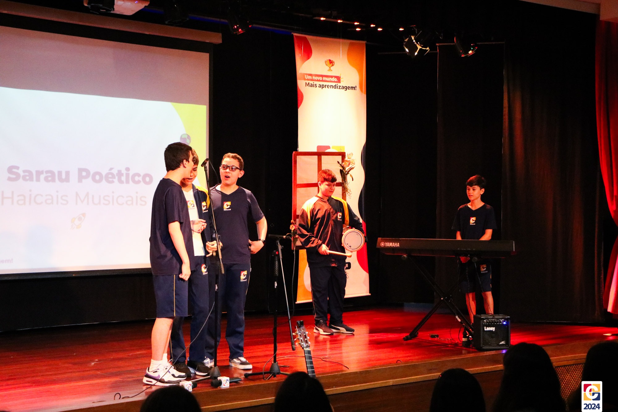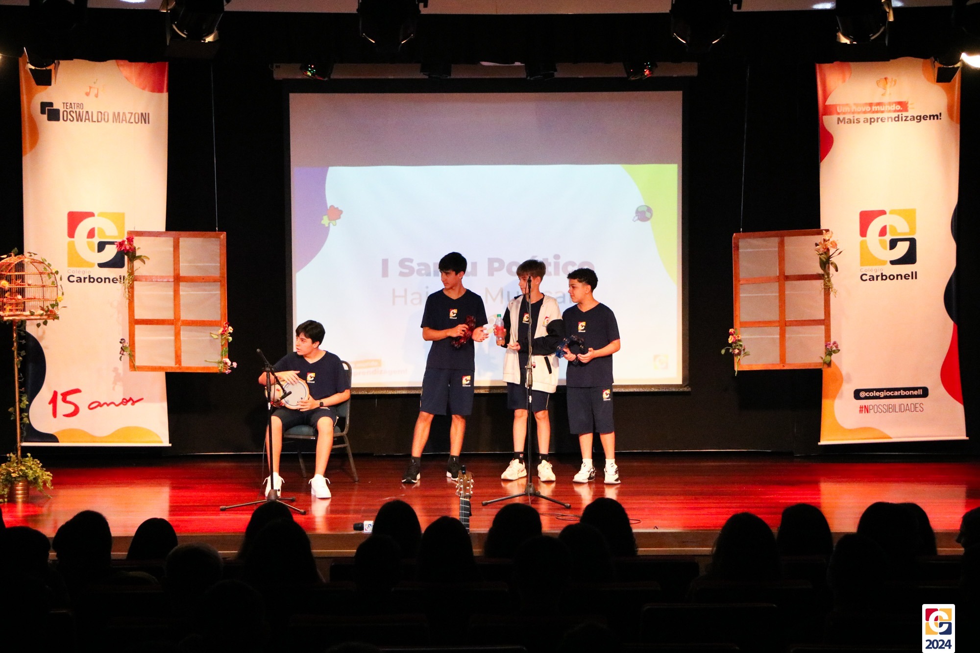 Assim, os haicais — agora, “musicais” — foram apresentados em um show de criatividade e originalidade! O evento também contou com a participação da Diana, responsável pela Sala de Leitura, e dos professores Kadu, Guilherme Vasquez e Guilherme Ghellere, os quais abrilhantaram a manhã com textos autorais e dramatizações de poemas. Foi um momento de muita poesia e canção, que, certamente, gerou muito aprendizado a todos os envolvidos. 🔰