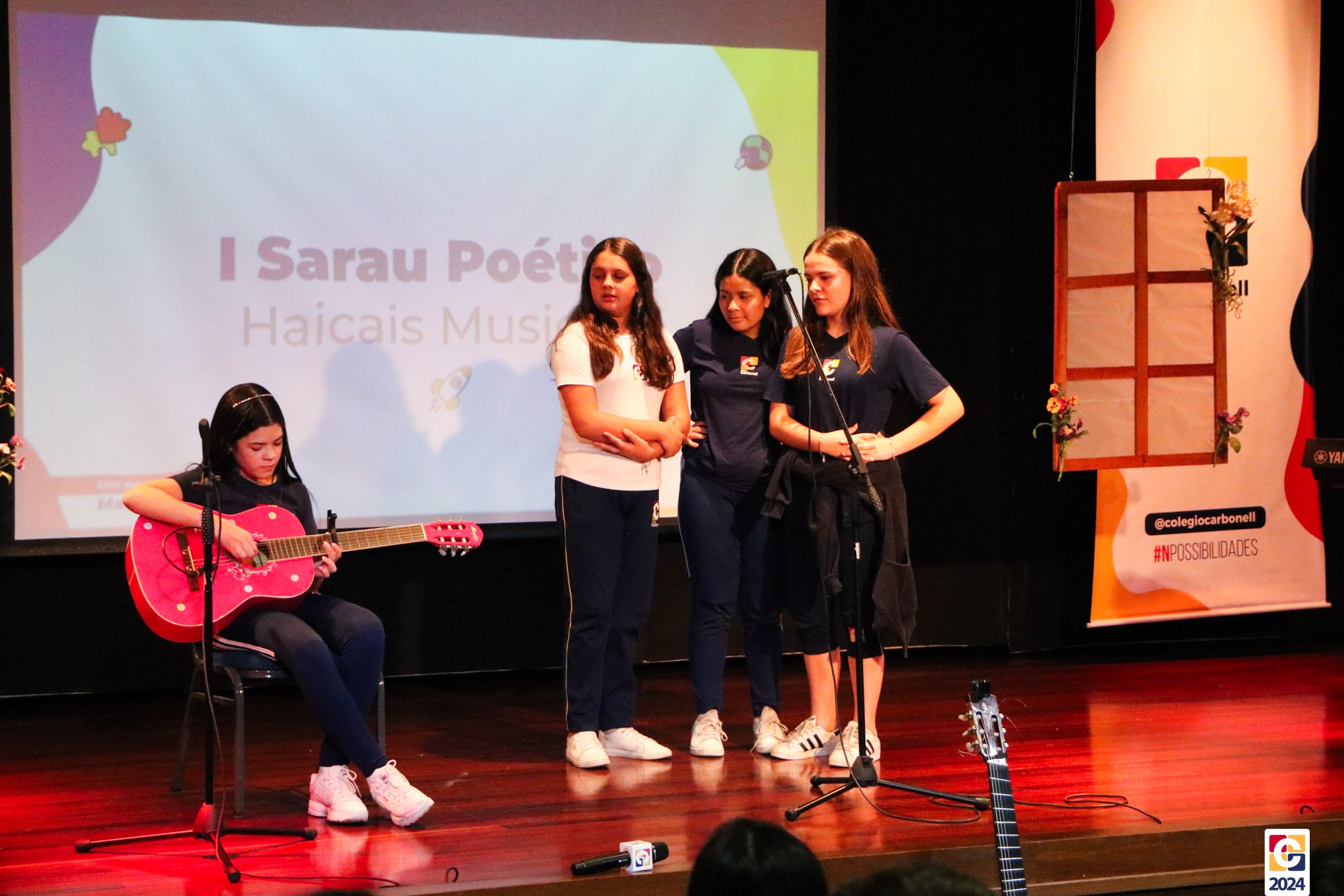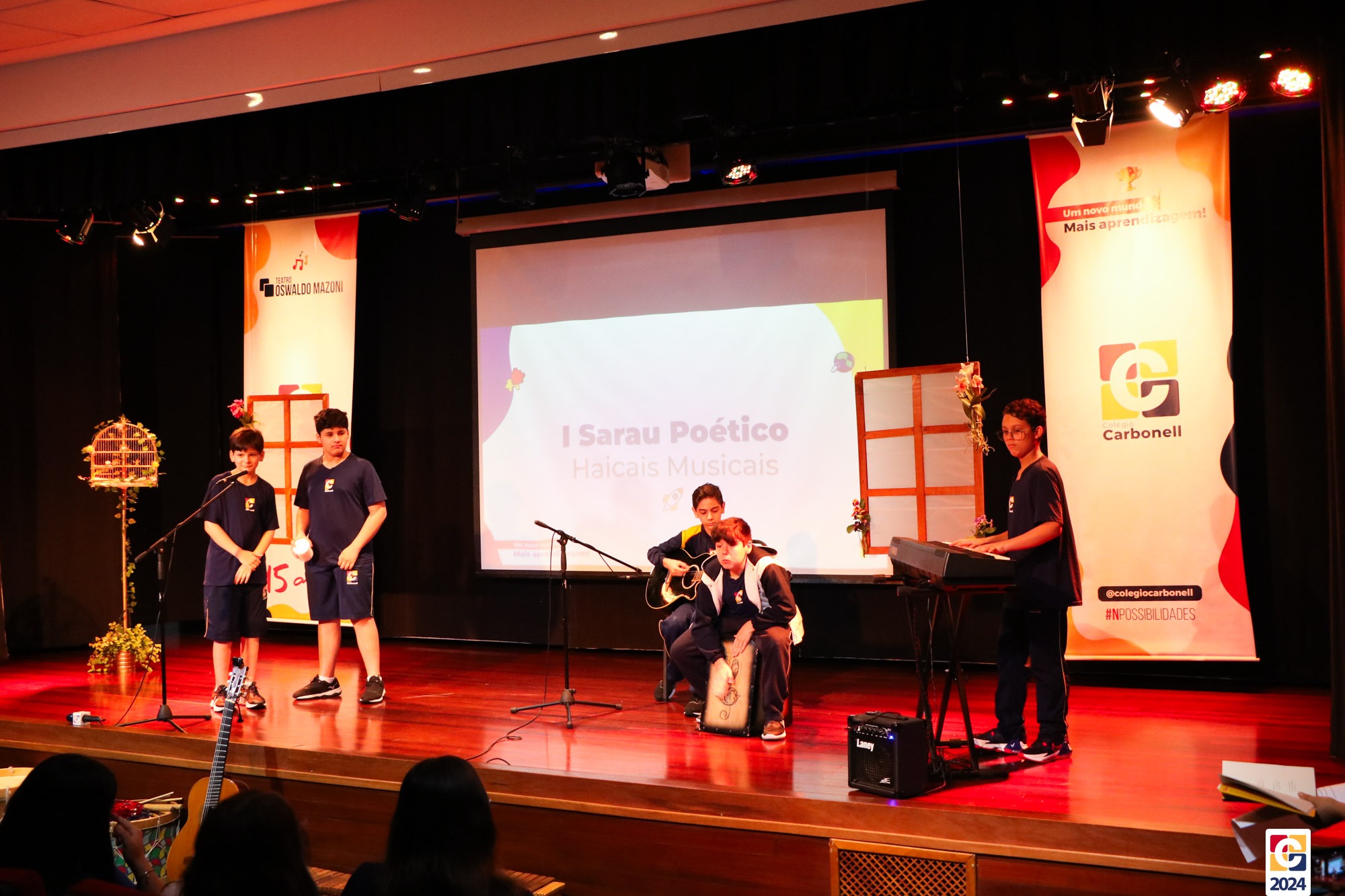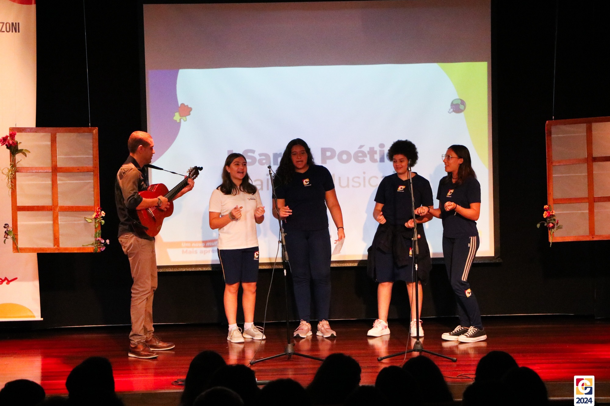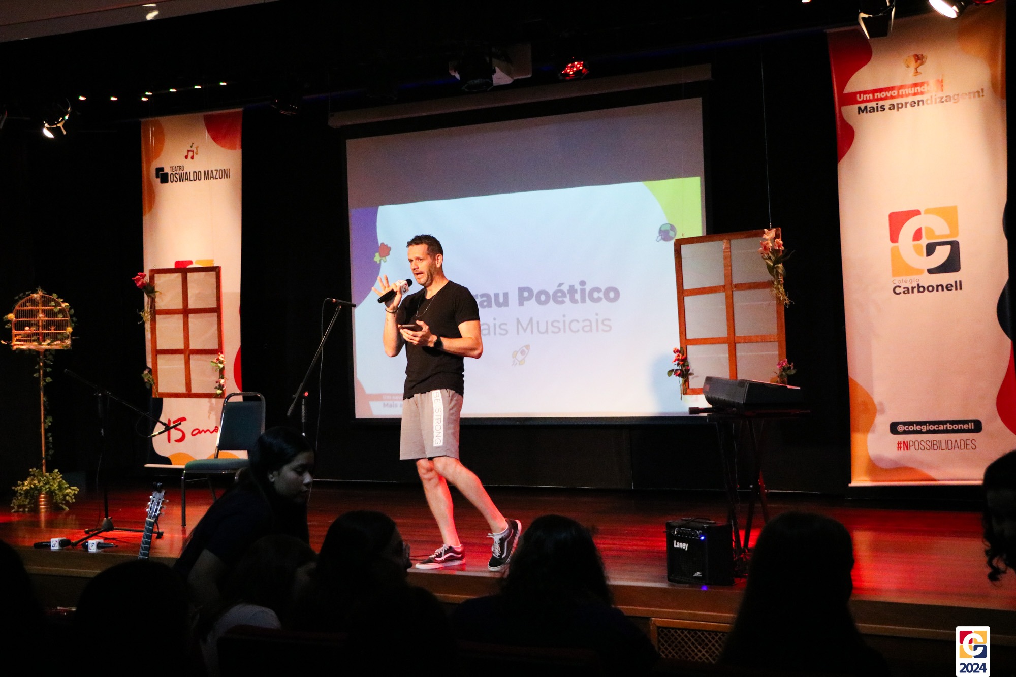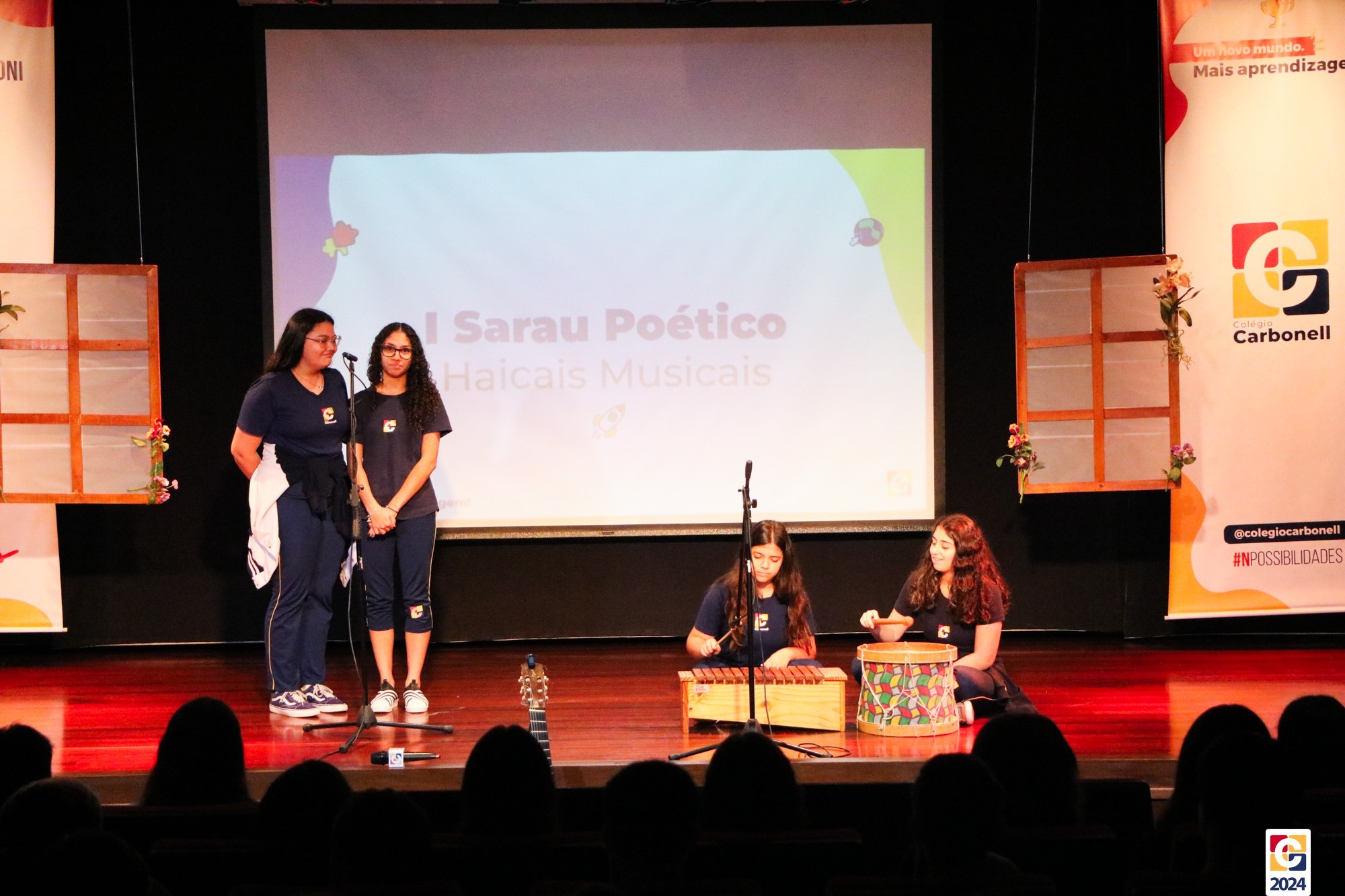 Assim, os haicais — agora, “musicais” — foram apresentados em um show de criatividade e originalidade! O evento também contou com a participação da Diana, responsável pela Sala de Leitura, e dos professores Kadu, Guilherme Vasquez e Guilherme Ghellere, os quais abrilhantaram a manhã com textos autorais e dramatizações de poemas. Foi um momento de muita poesia e canção, que, certamente, gerou muito aprendizado a todos os envolvidos. 🔰