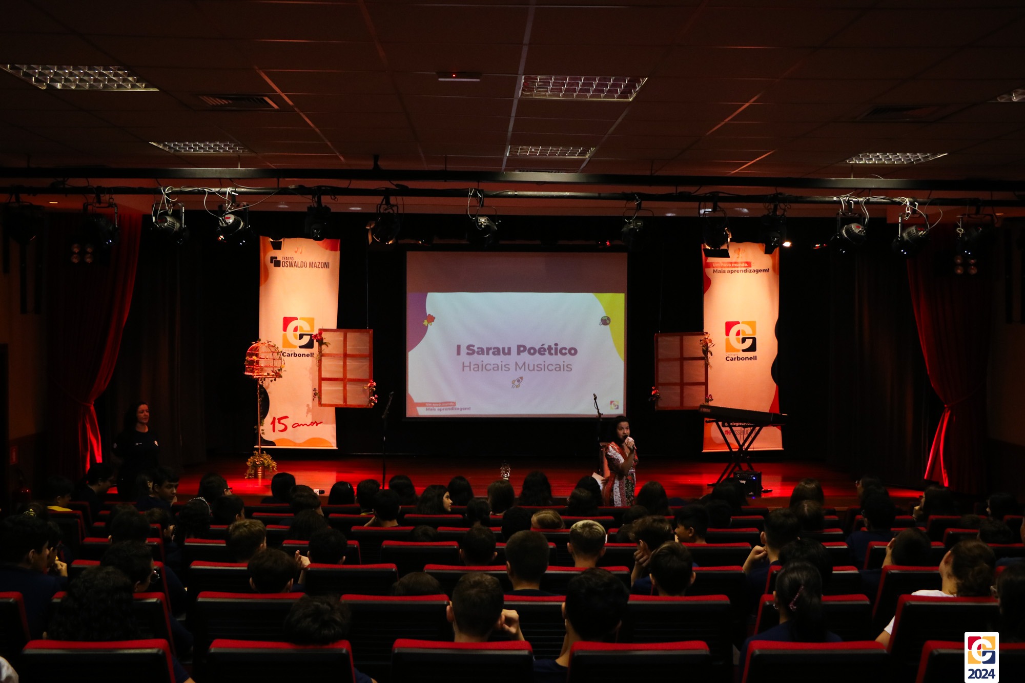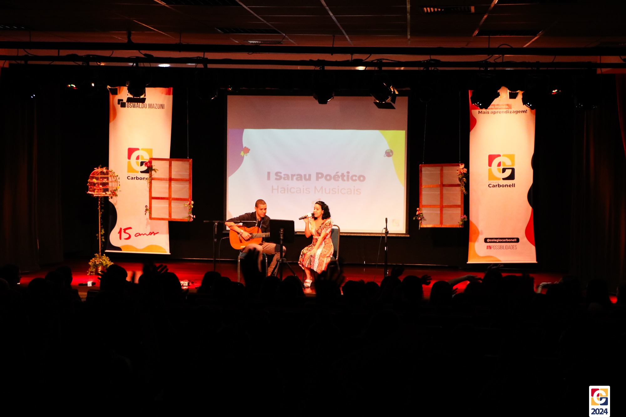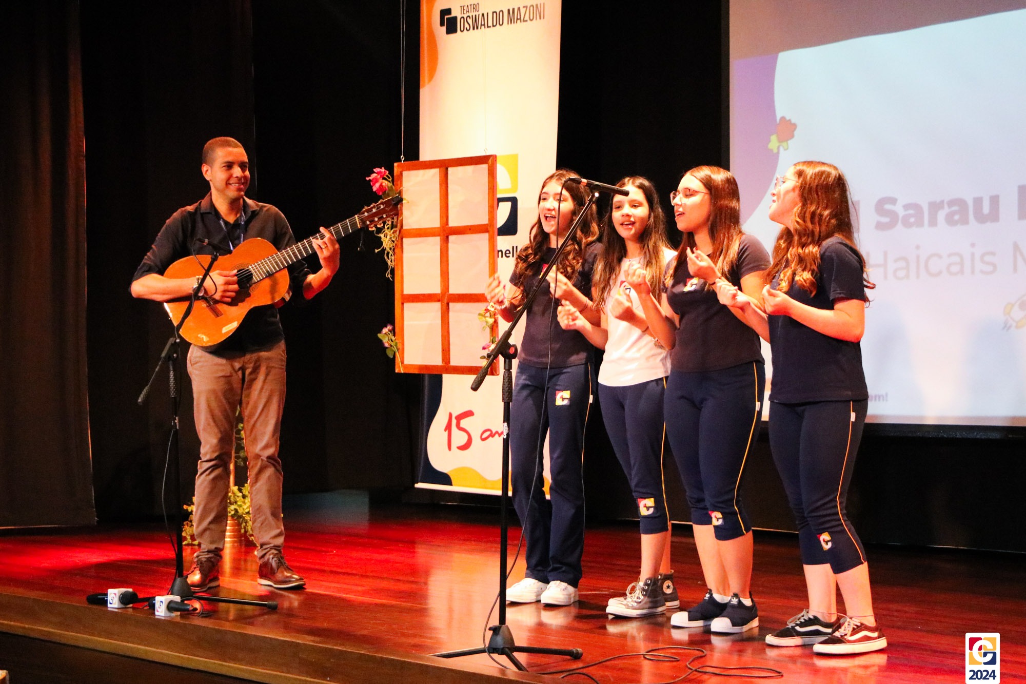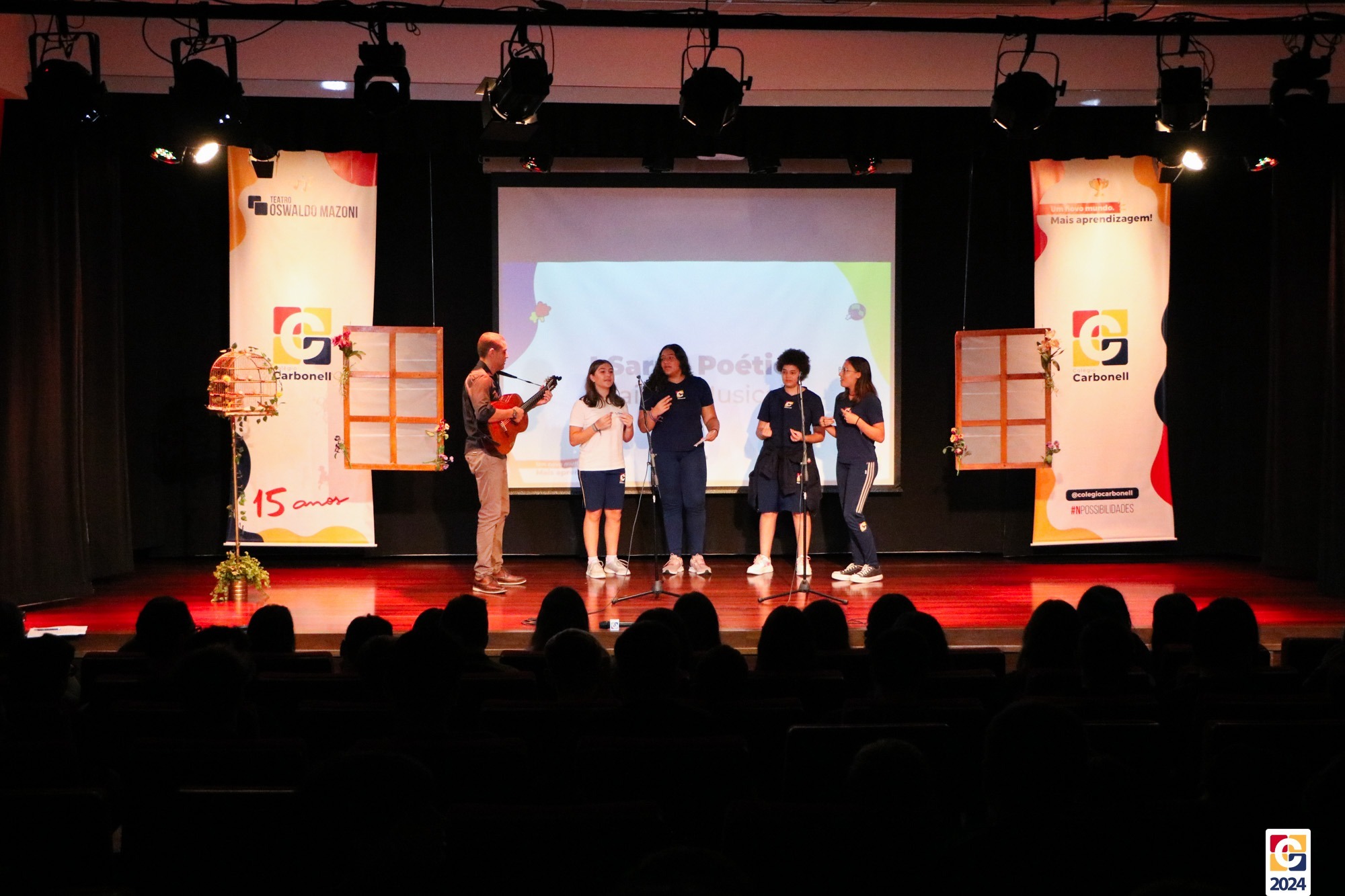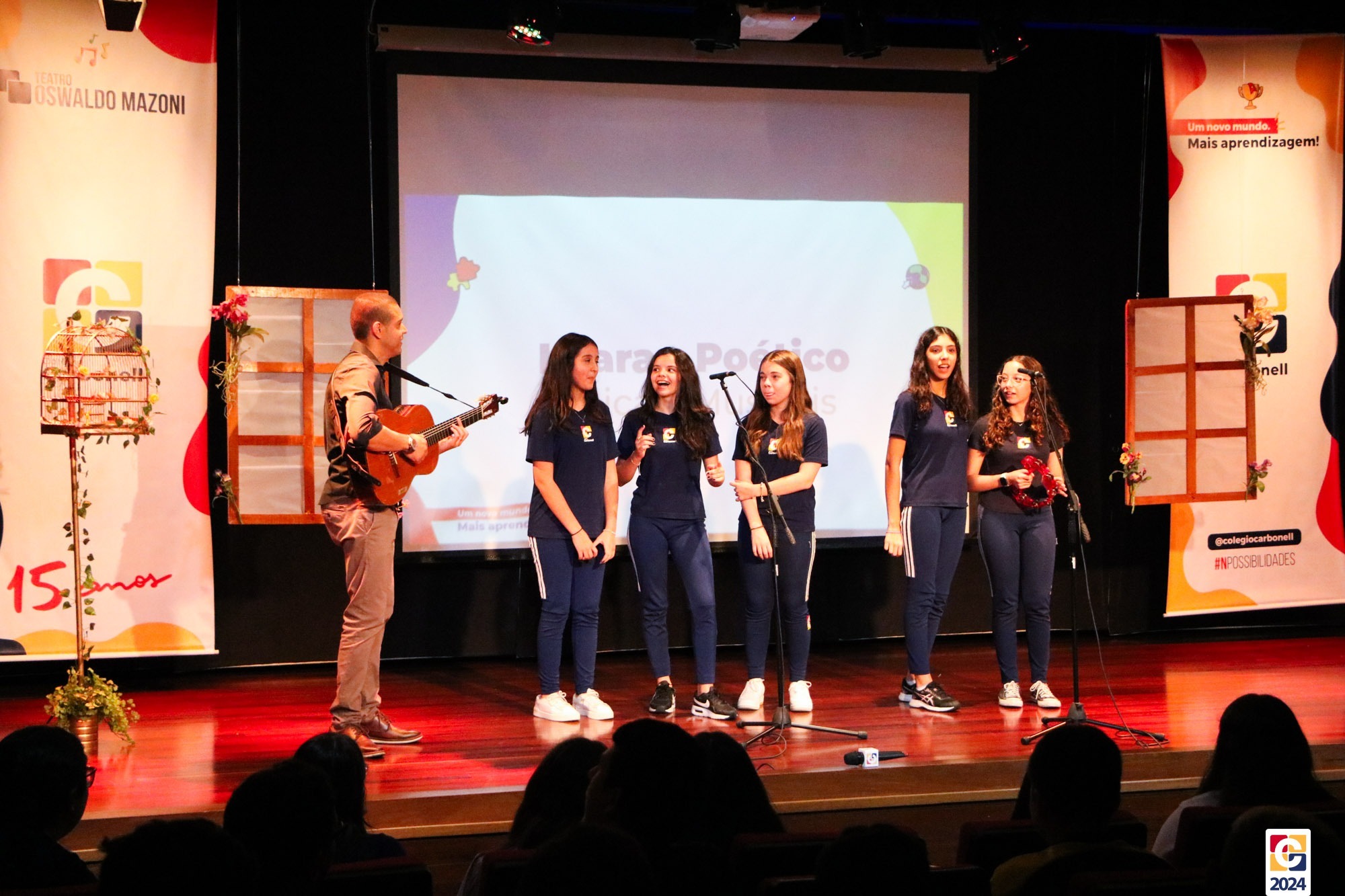 Assim, os haicais — agora, “musicais” — foram apresentados em um show de criatividade e originalidade! O evento também contou com a participação da Diana, responsável pela Sala de Leitura, e dos professores Kadu, Guilherme Vasquez e Guilherme Ghellere, os quais abrilhantaram a manhã com textos autorais e dramatizações de poemas. Foi um momento de muita poesia e canção, que, certamente, gerou muito aprendizado a todos os envolvidos. 🔰