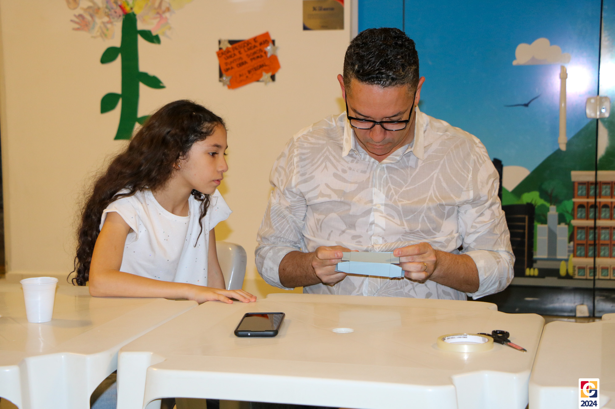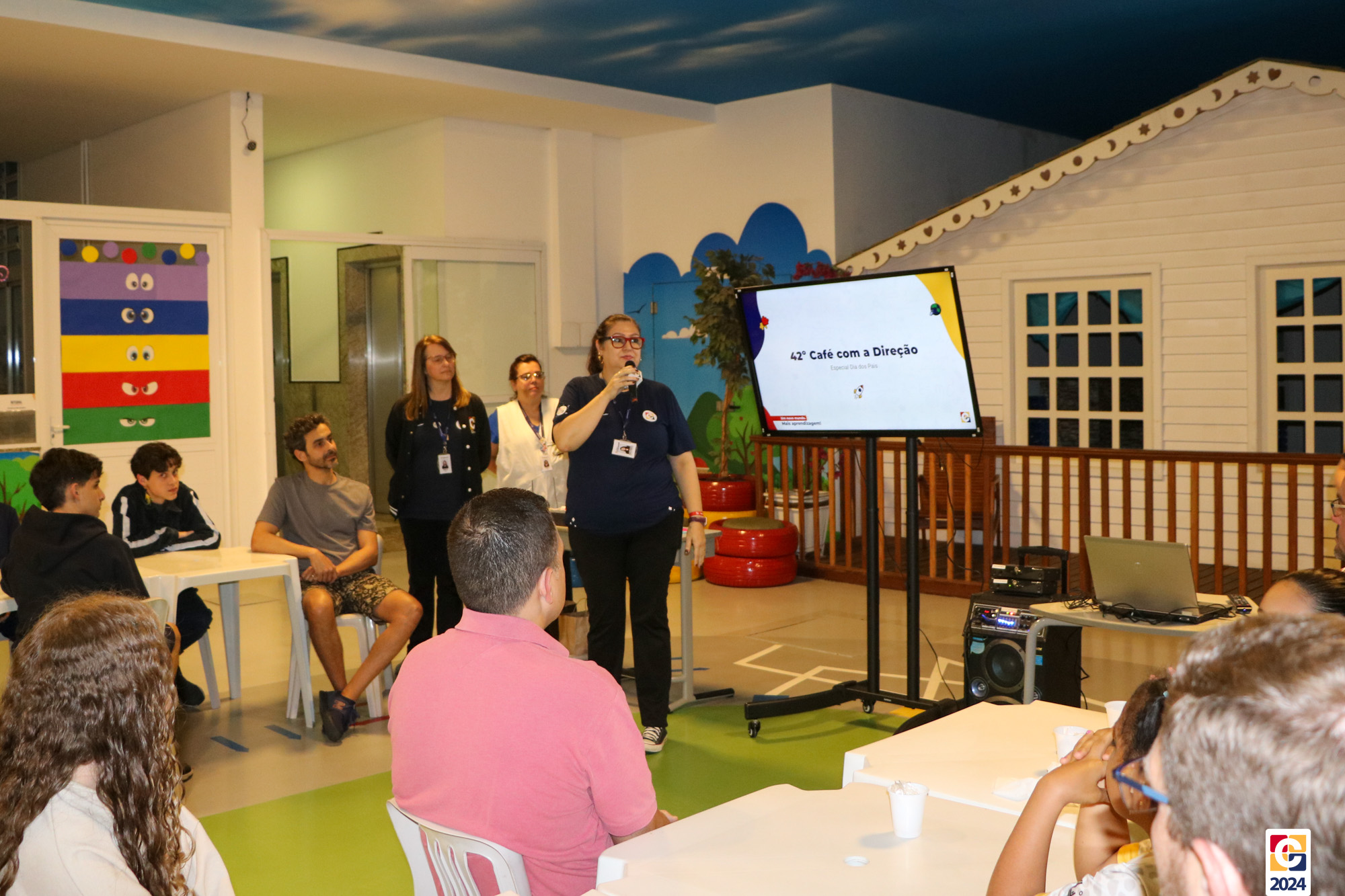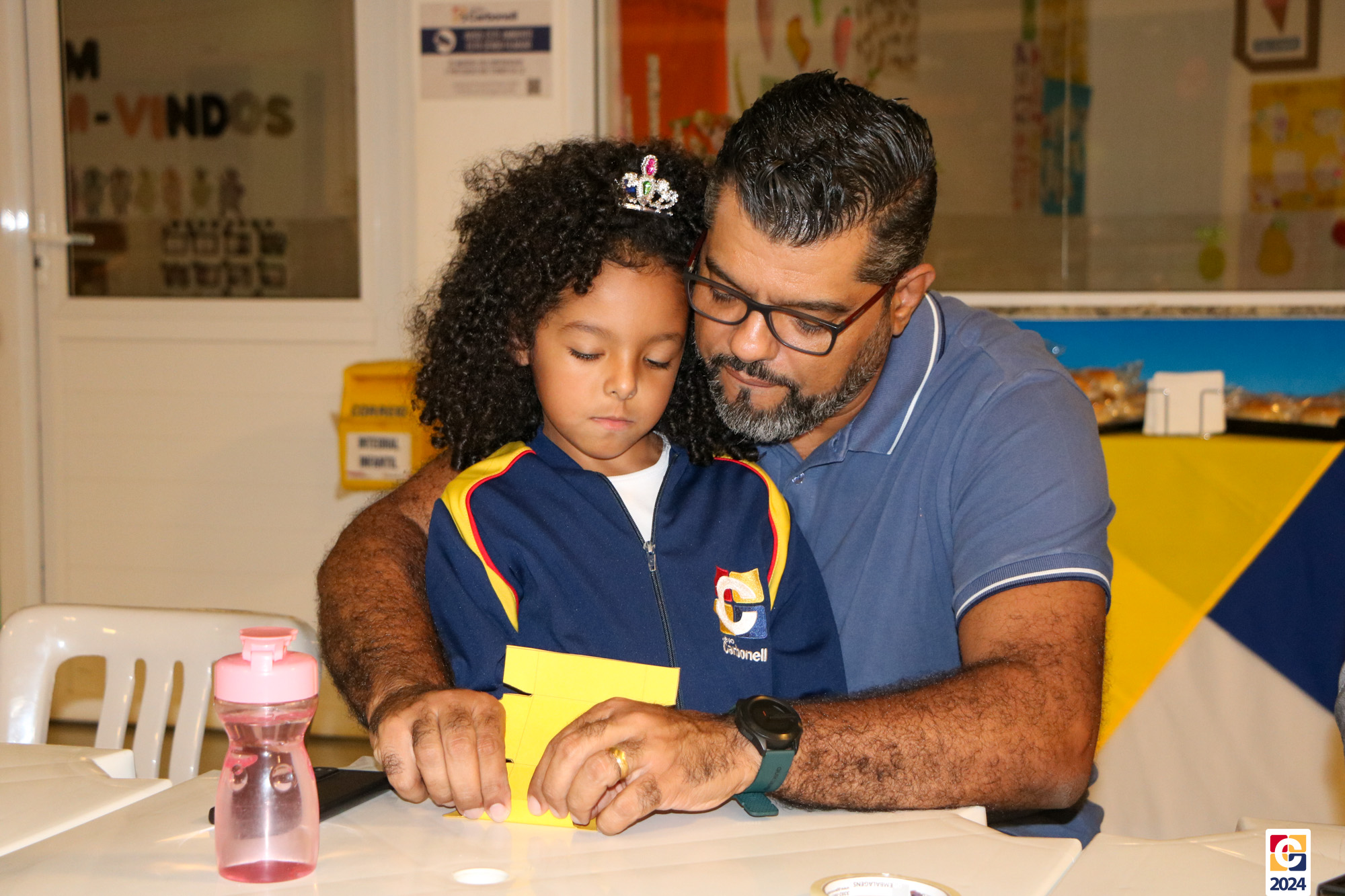 Por conta da celebração do próximo domingo (11), o Café com a Direção convidou a comunidade escolar para uma edição especial em homenagem ao Dia dos Pais. O evento, que aconteceu na noite de segunda-feira (5), já está na 42ª edição e contou com dezenas de pais, que puderam trazer seus filhos ao colégio para mais uma experiência inesquecível. Na ocasião, além de assistir a vídeos emocionantes sobre a paternidade, os participantes elaboraram um divertido brinquedo — a clássica cobrinha de papel alumínio utilizando bolinha de gude — com ajuda de nossa querida Professora Maria de Fátima, de Pensamento Computacional, em encontro marcante. 🐍