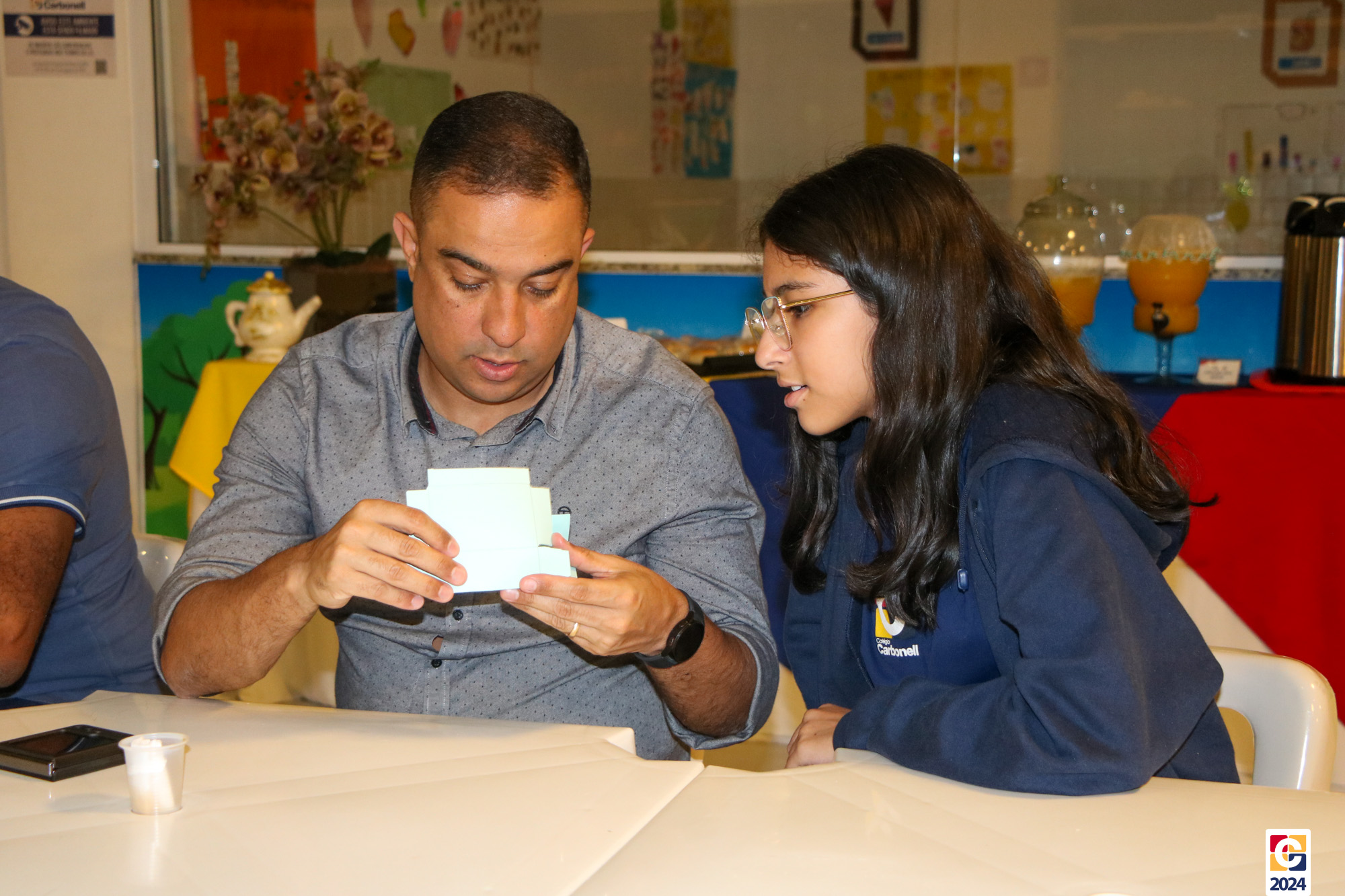 Para Willian Girarde, colaborador do Carbonell e pai, o Café com a Direção deste mês foi nostálgico. “Lembro-me como se fosse hoje de uma experiência que vivi com meu pai há mais de 30 anos na escola e hoje, orgulhosamente, vim ao colégio exercendo o papel de pai. Foi emocionante ver meu filho, Emanuel, com os olhos brilhando de alegria, assim como brilhavam os meus quando eu era criança. Sou grato por poder proporcionar a ele a formação numa escola como o Carbonell”. Renata Geraldo é mãe, colaboradora, organizadora do Café e, nesta edição, viu seu filho Gabriel interagindo com o padrasto Oscar Geraldo. “Meu filho testou sete versões do brinquedo, mas foi com a ajuda do Oscar que ele construiu a definitiva. A experiência o fez perceber que, sozinho, a construção é sempre mais difícil. A mim foi tocante e creio que tenha sido a todos”. 😍💕