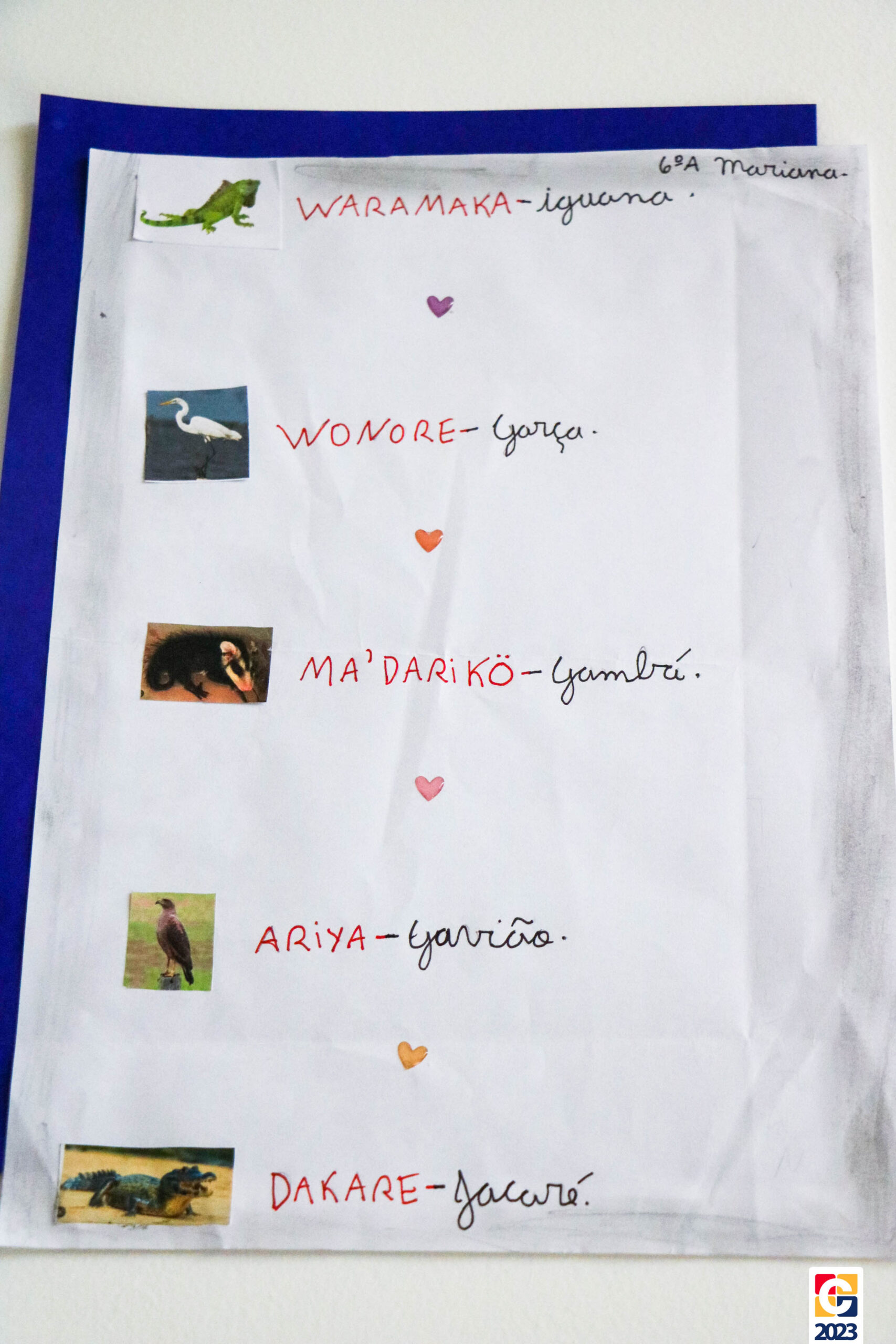 Taurepang, Baniwa, Guató, Kawahiva, Xavante, Galibi e Karipuna foram algumas das línguas pesquisadas por meio de aplicativos fornecidos pela FUNAI e que serviram de base para a atividade. O objetivo, é evidente, foi incentivar a curiosidade, despertar o interesse e aprofundar a abordagem teórica obtida em aula sobre alguns dos diversos idiomas indígenas falados no território brasileiro, bem como as culturas dos povos originários. 🍂