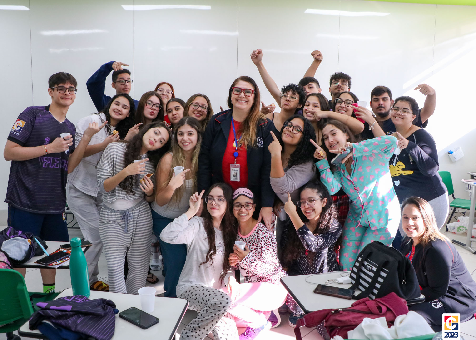 Nesta quarta-feira (28), estudantes do Terceirão curtiram mais uma edição do Dia Temático; desta vez, já em ritmo de férias, todos vieram vestidos com pijamas. A novidade ficou por conta de um delicioso café comunitário ao som de uma playlist criada por eles mesmos. 🥳☕