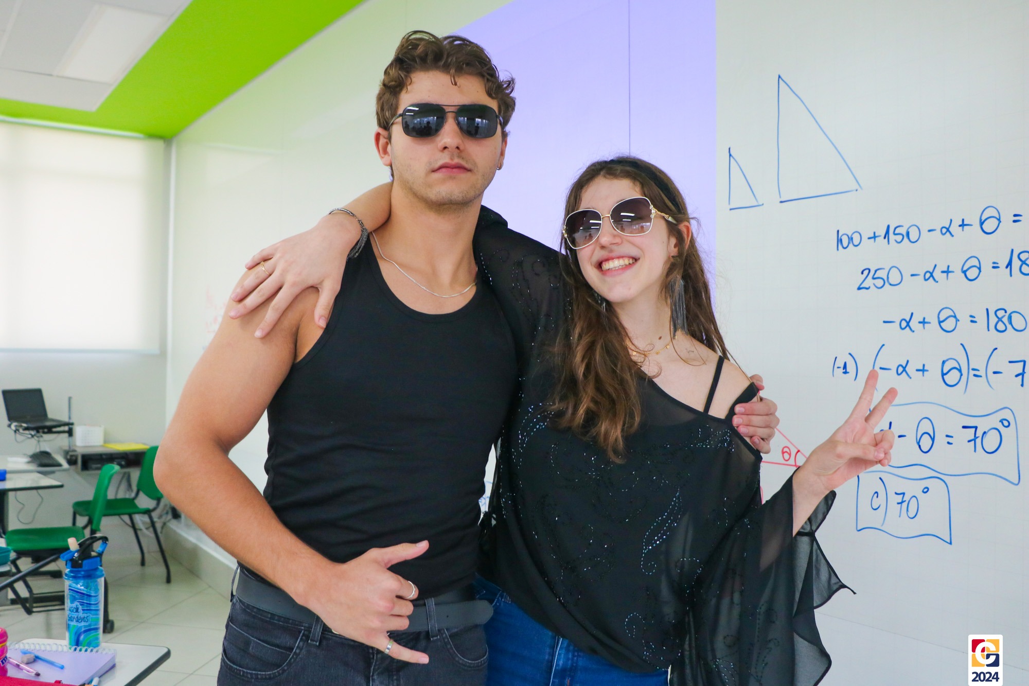 Na última quinta-feira (28), o prédio do Ensino Médio foi transformado em um verdadeiro palco de nostalgia, onde camisetas brancas, regatas e lenços na cabeça se misturavam com calças jeans, óculos retrô e até jaquetas de couro em uma celebração única da história da moda. Nossos estudantes realmente nos surpreenderam ao recriar estilos das décadas, trazendo à escola os anos dourados com muita criatividade. 👗