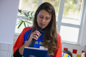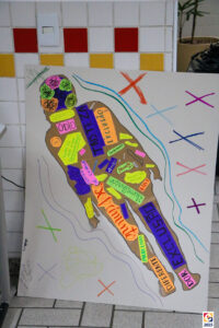 ApĂłs um delicioso cafĂ©, a teoria virou prĂĄtica na proposta artĂstica, onde os jovens construĂram coletivamente um painel de colagem para representar a “invisibilidade que busca ser vista”. AlĂ©m disso, os estudantes ainda debateram e registraram propostas prĂĄticas para ajudar pessoas em situação de invisibilidade, transformando a reflexĂŁo em compromisso. O evento culminou com um encerramento simbĂłlico emocionante, onde, apĂłs a leitura de um poema, cada estudante colou seu nome no painel da CCA, simbolizando seu papel ativo na comunidade. đ«
