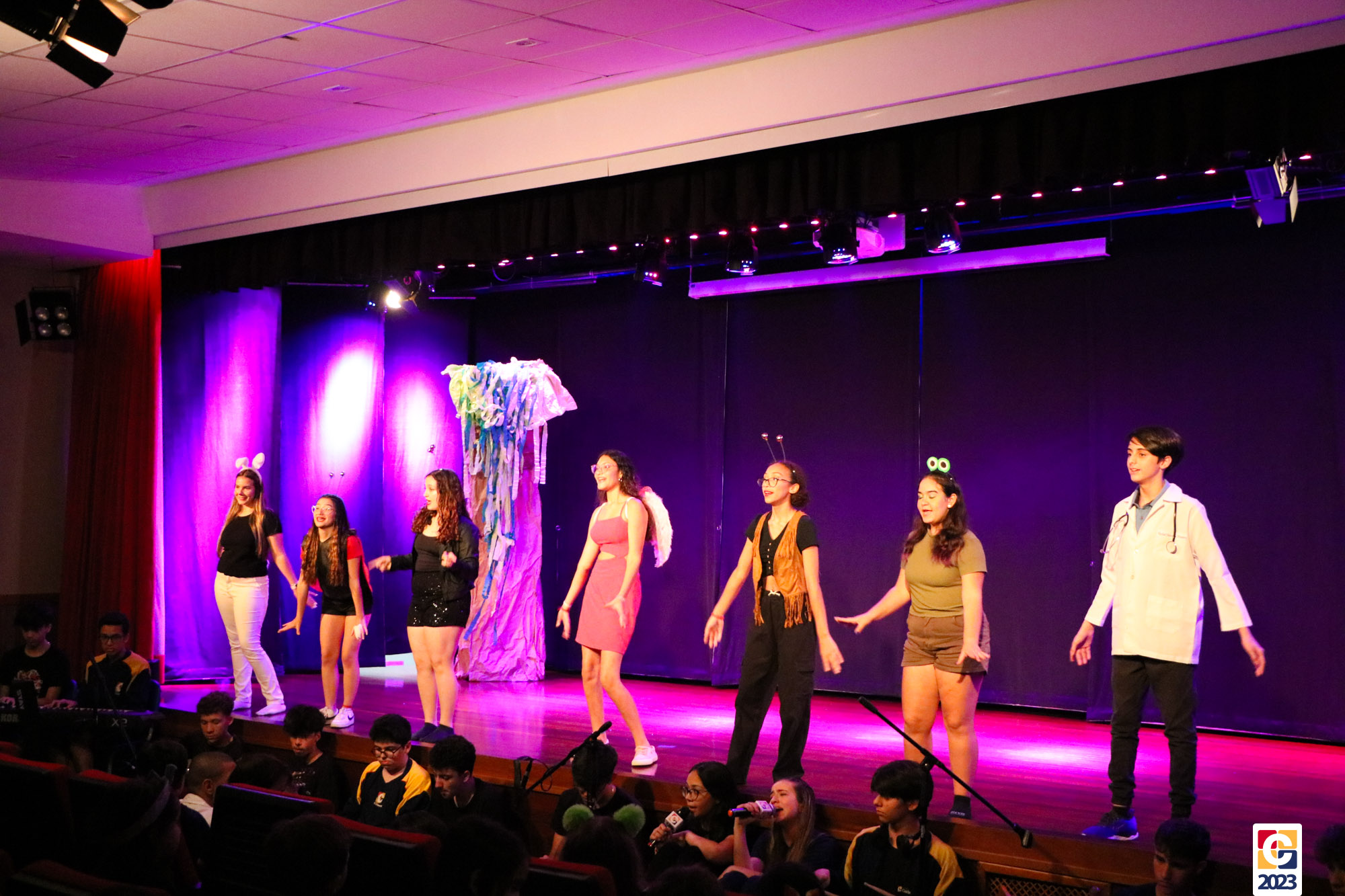 Nossos estudantes, ou melhor, nossos atores do 9º ano apresentaram uma peça às crianças da Educação Infantil e Anos Iniciais de forma brilhante e didática. Durante o espetáculo, que aconteceu no palco do Teatro Oswaldo Mazoni, em ação eles interagiam com o público — usando até objetos interativos escondidos entre as cadeiras! — e recebiam respostas muito entusiasmadas. Toda a produção teve assinatura dos próprios estudantes, incluindo os efeitos sonoros, o coral, o elenco e os cenários, que foram elaborados durante dois meses para que a apresentação fosse inesquecível. E todos adoraram!