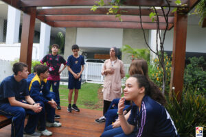 A dinâmica contou com o apoio do colaborador do time de Infraestrutura, Alex Ferreira, que ajudou os estudantes a preparar o local ideal no bosque para o plantio. Cada estudante realizou uma pesquisa profunda sobre a planta que escolheu, reunindo informações como nome comum, nome científico, propriedades terapêuticas, formas de cultivo, e como preparar o chá corretamente — seja por infusão, cozimento ou maceração. 🫂