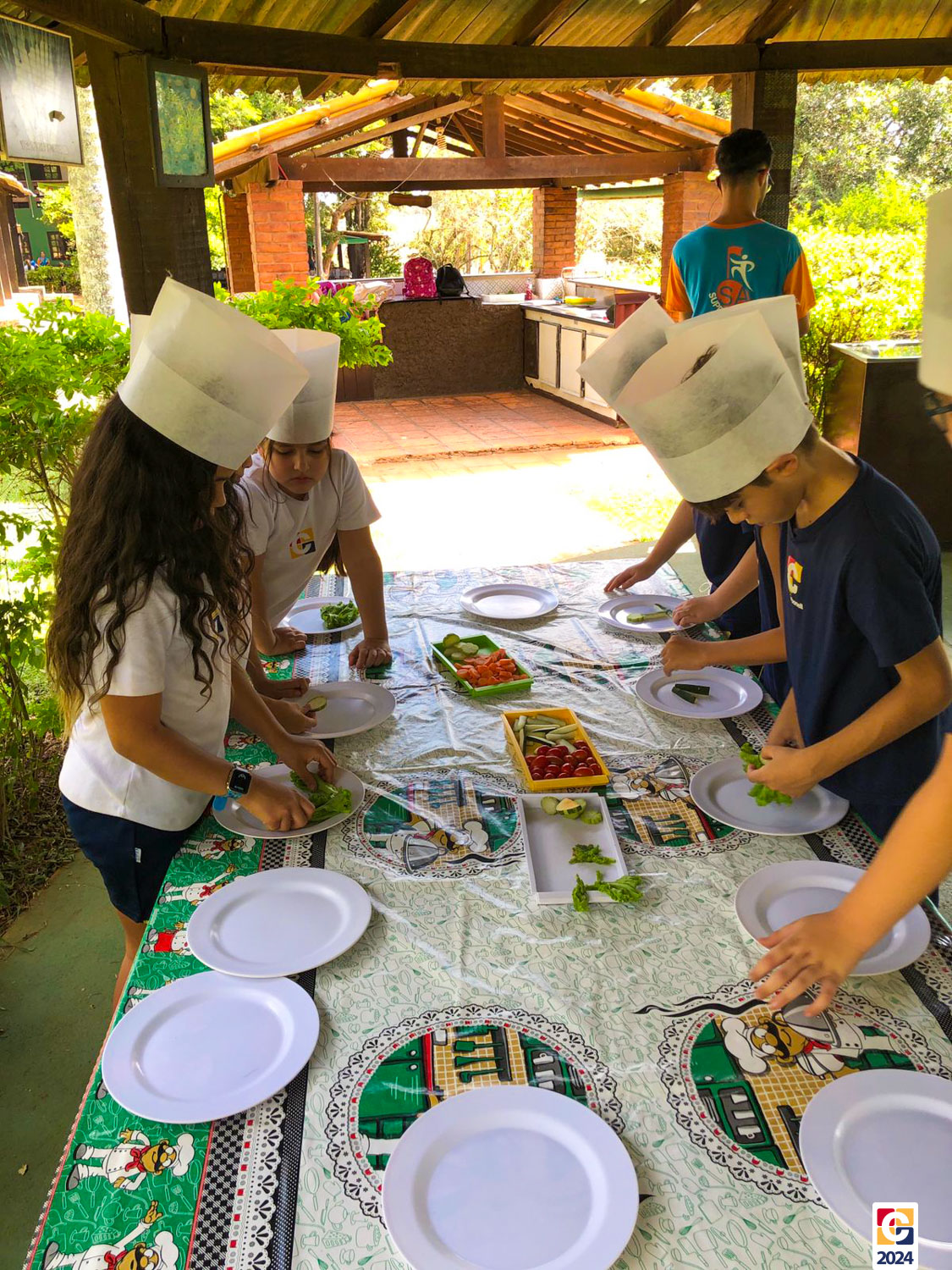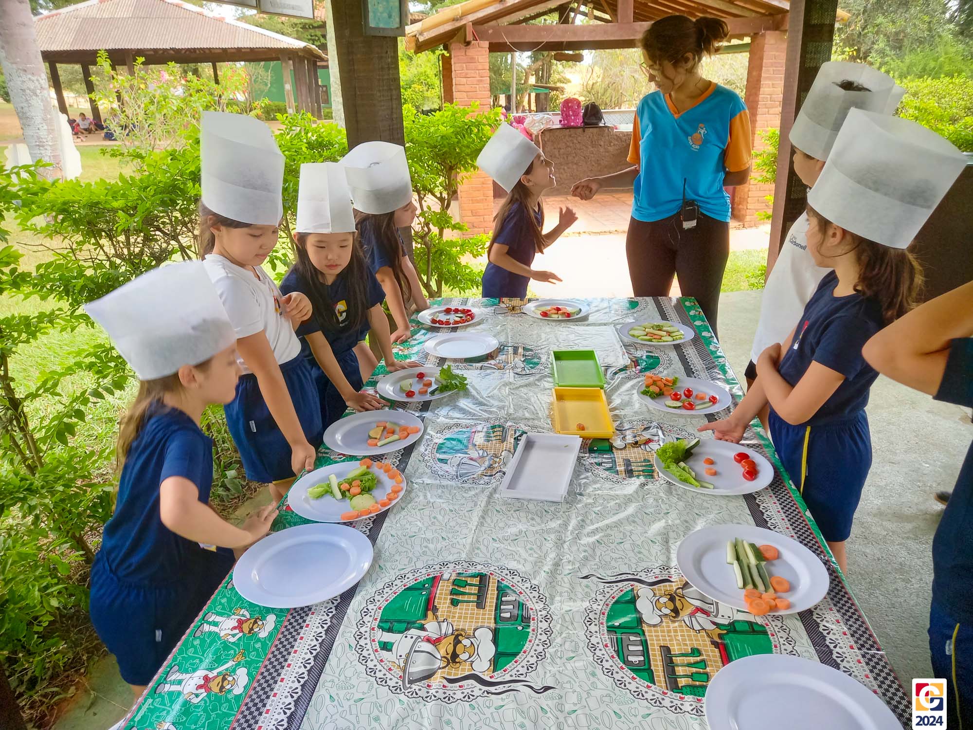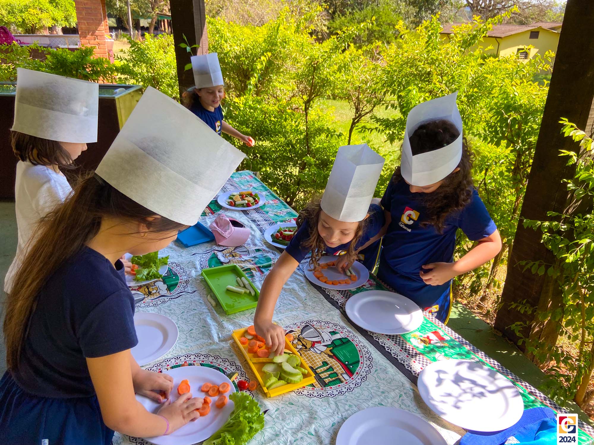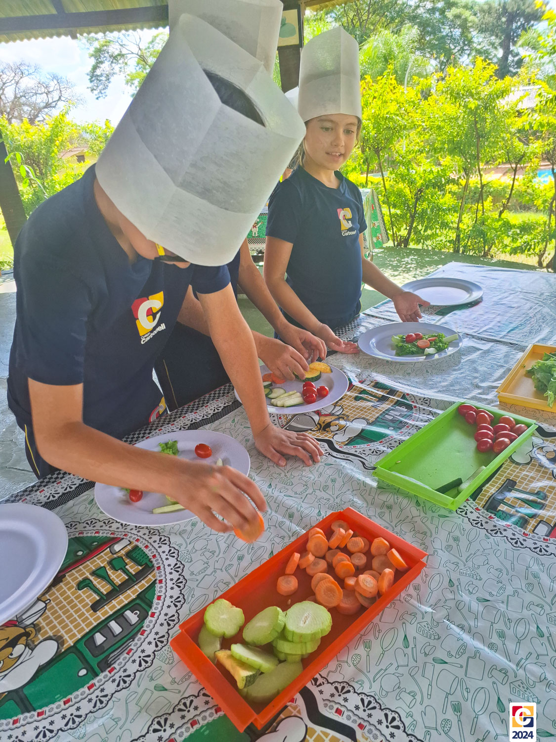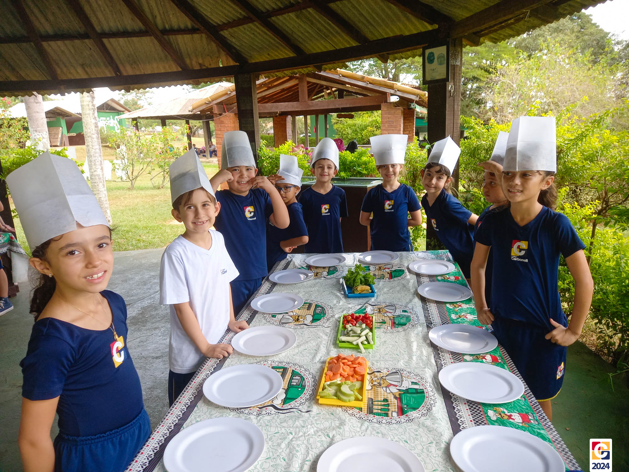 Durante a visita, nossos estudantes exploraram um espaço criado para ensinar sobre os sabores naturais, os desafios da agricultura e a importância de uma alimentação saudável; eles aprenderam sobre plantas, semearam e plantaram nas estufas. Depois, ainda foram levados à “cozinha da turminha saudável” para preparar uma refeição, aplicando o que aprenderam. 🍅