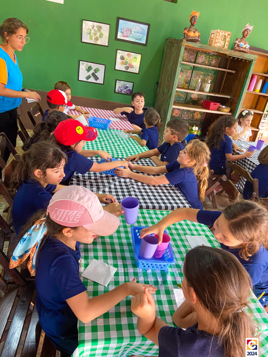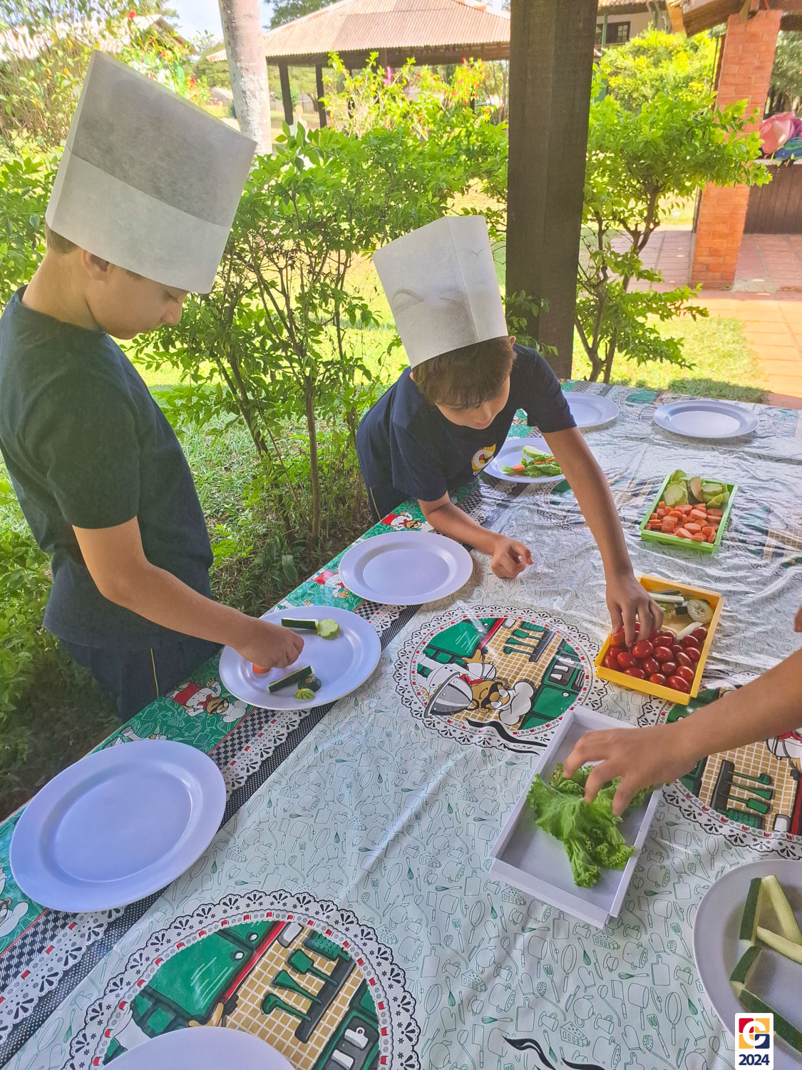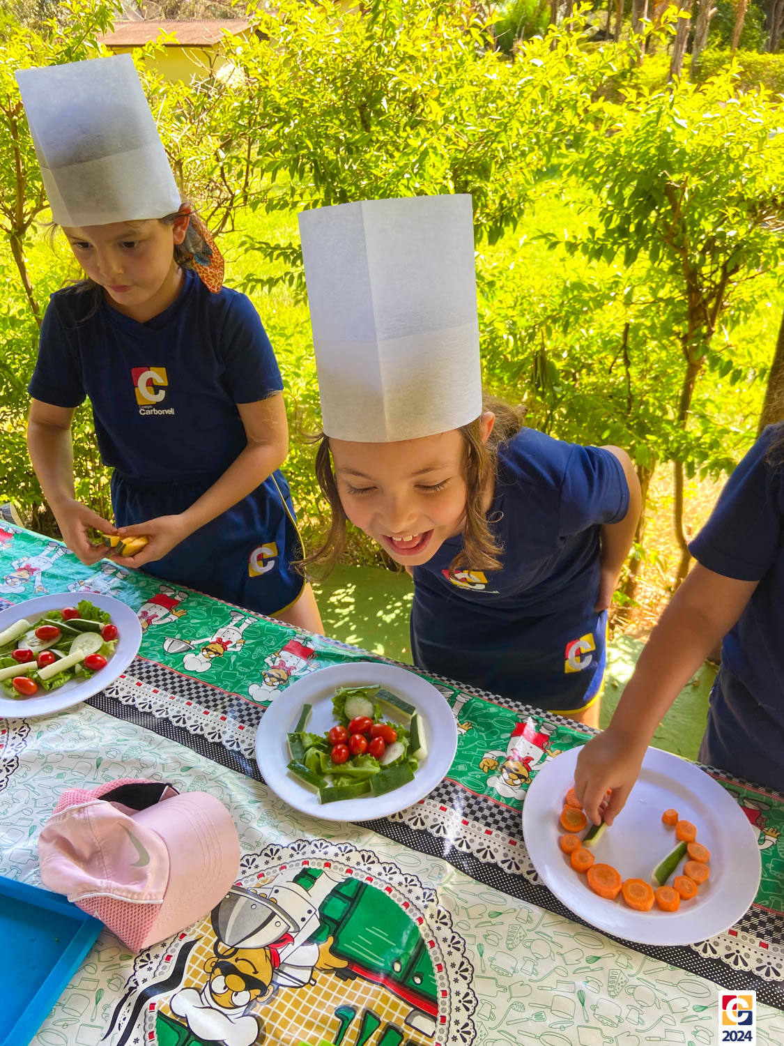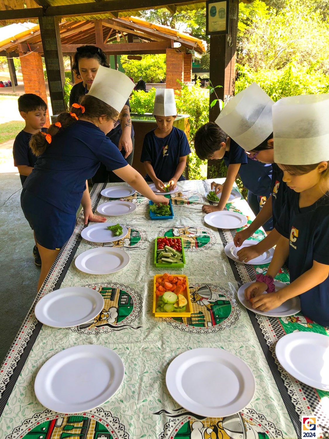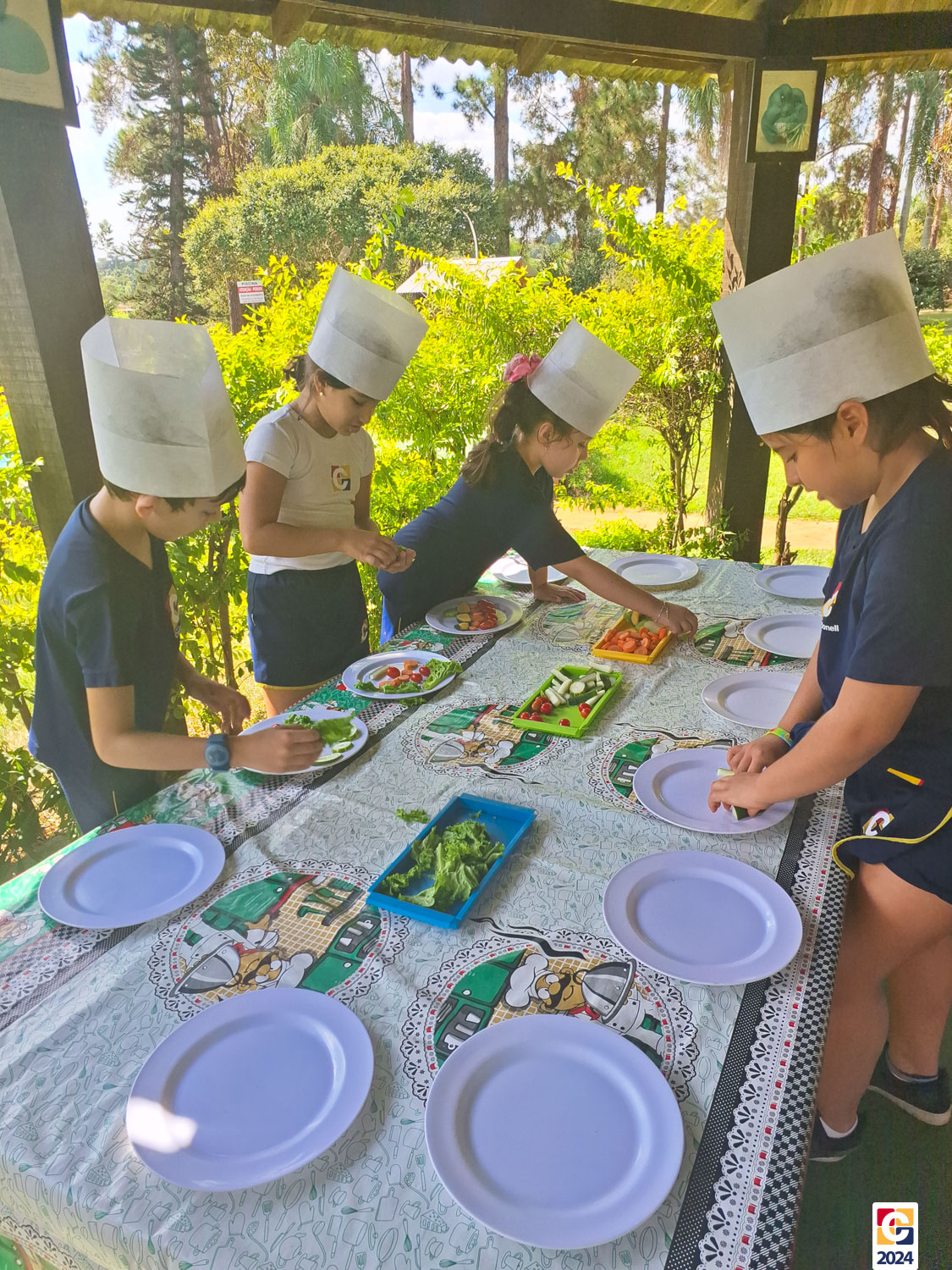 Durante a visita, nossos estudantes exploraram um espaço criado para ensinar sobre os sabores naturais, os desafios da agricultura e a importância de uma alimentação saudável; eles aprenderam sobre plantas, semearam e plantaram nas estufas. Depois, ainda foram levados à “cozinha da turminha saudável” para preparar uma refeição, aplicando o que aprenderam. 🍅