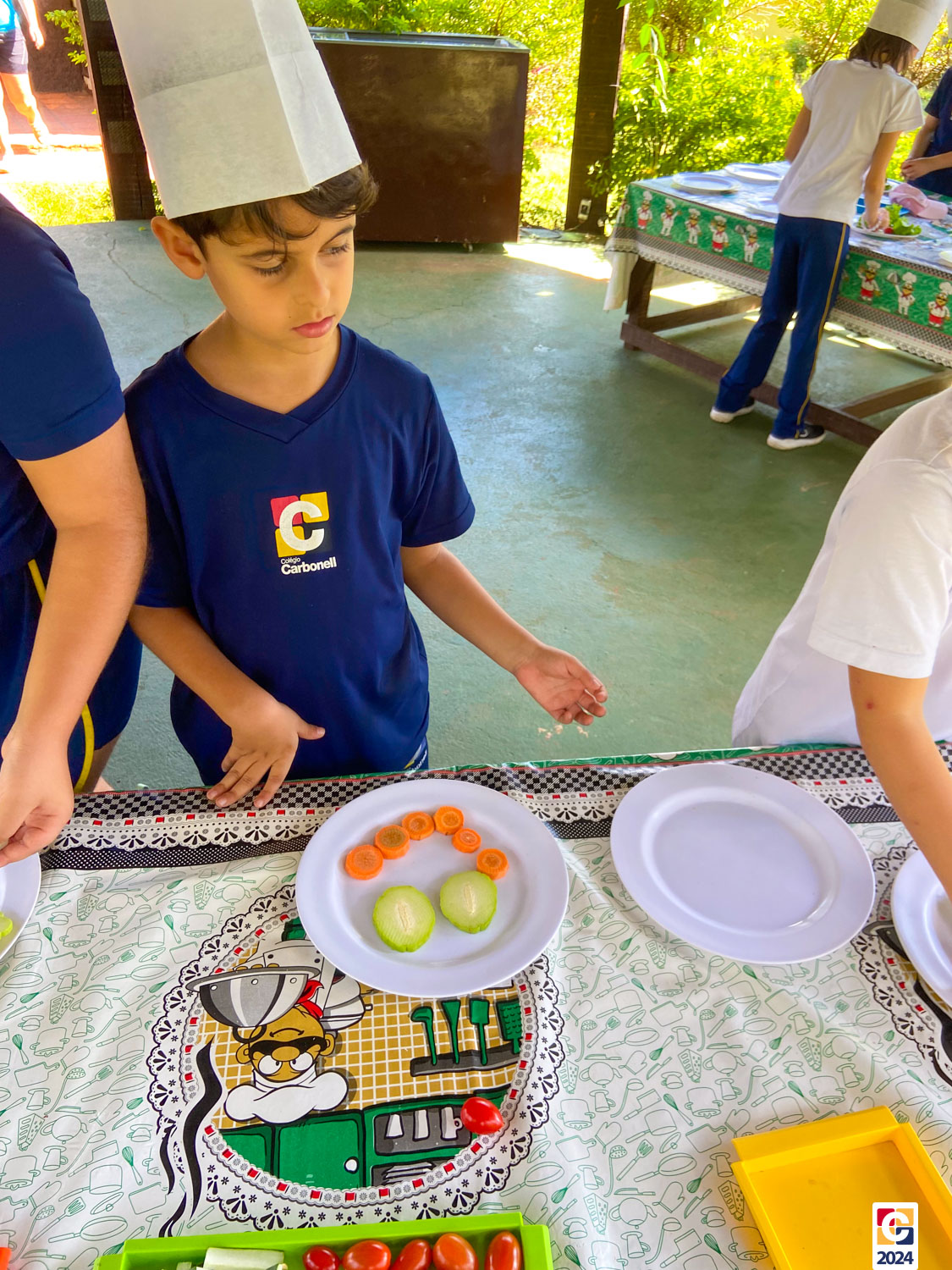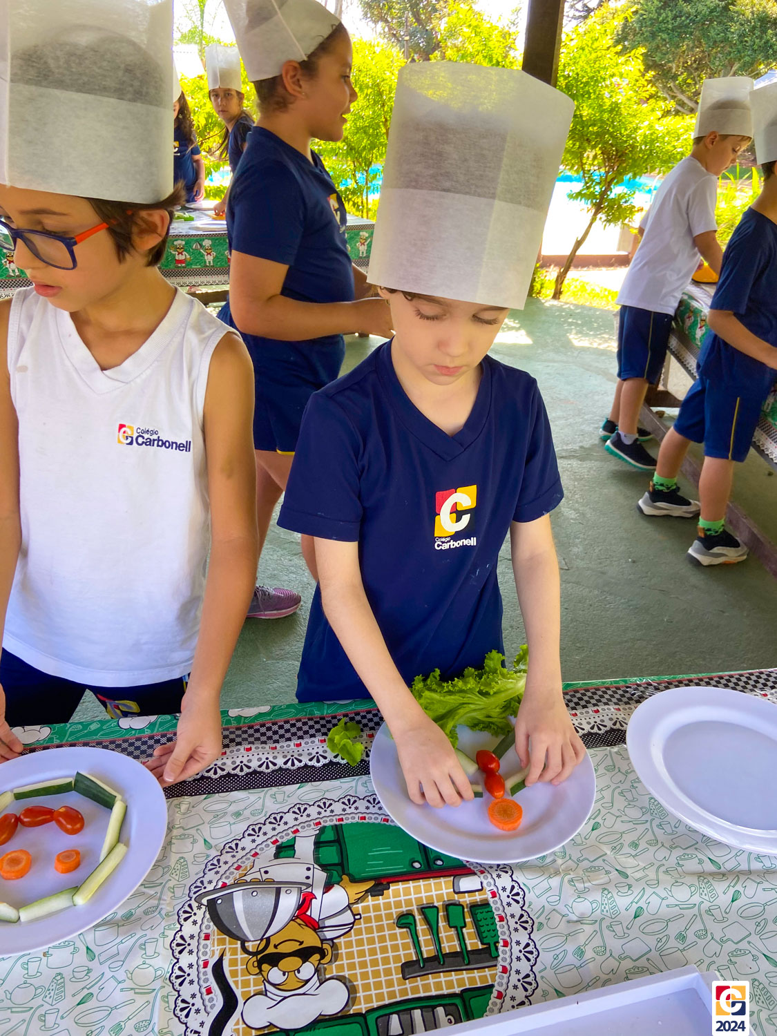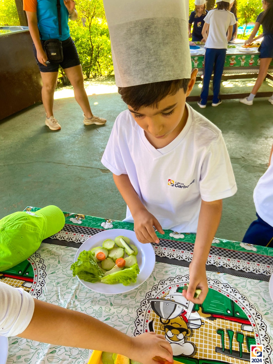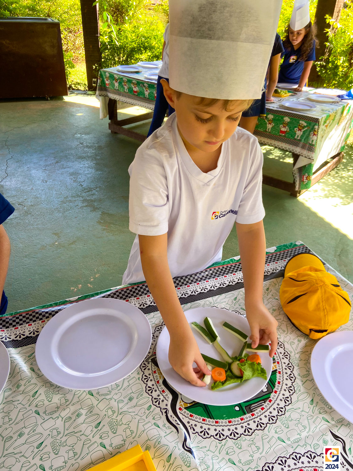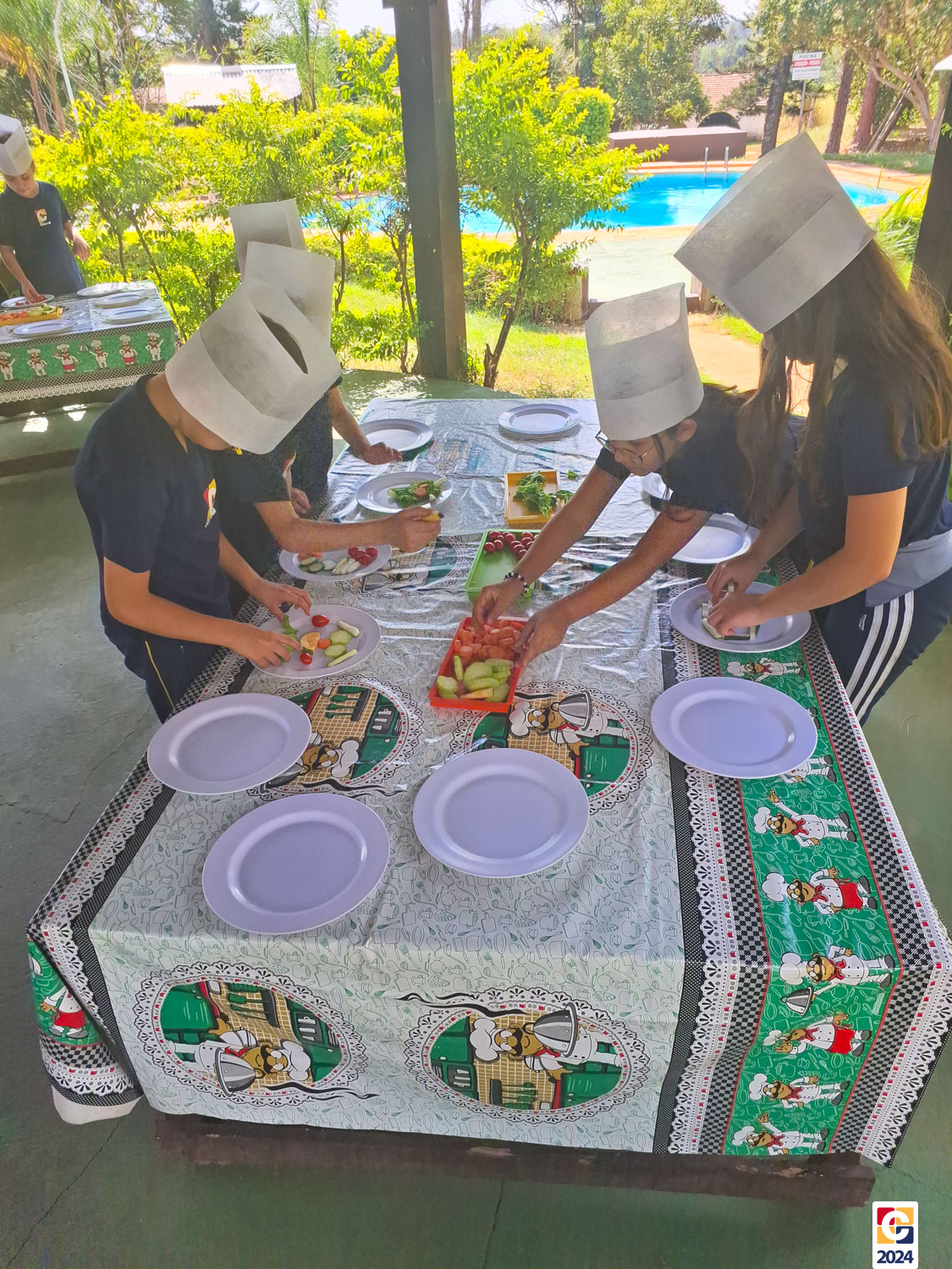 Durante a visita, nossos estudantes exploraram um espaço criado para ensinar sobre os sabores naturais, os desafios da agricultura e a importância de uma alimentação saudável; eles aprenderam sobre plantas, semearam e plantaram nas estufas. Depois, ainda foram levados à “cozinha da turminha saudável” para preparar uma refeição, aplicando o que aprenderam. 🍅