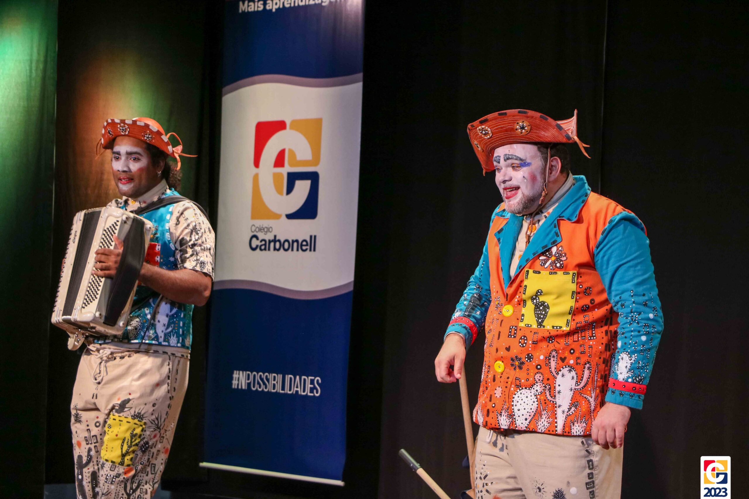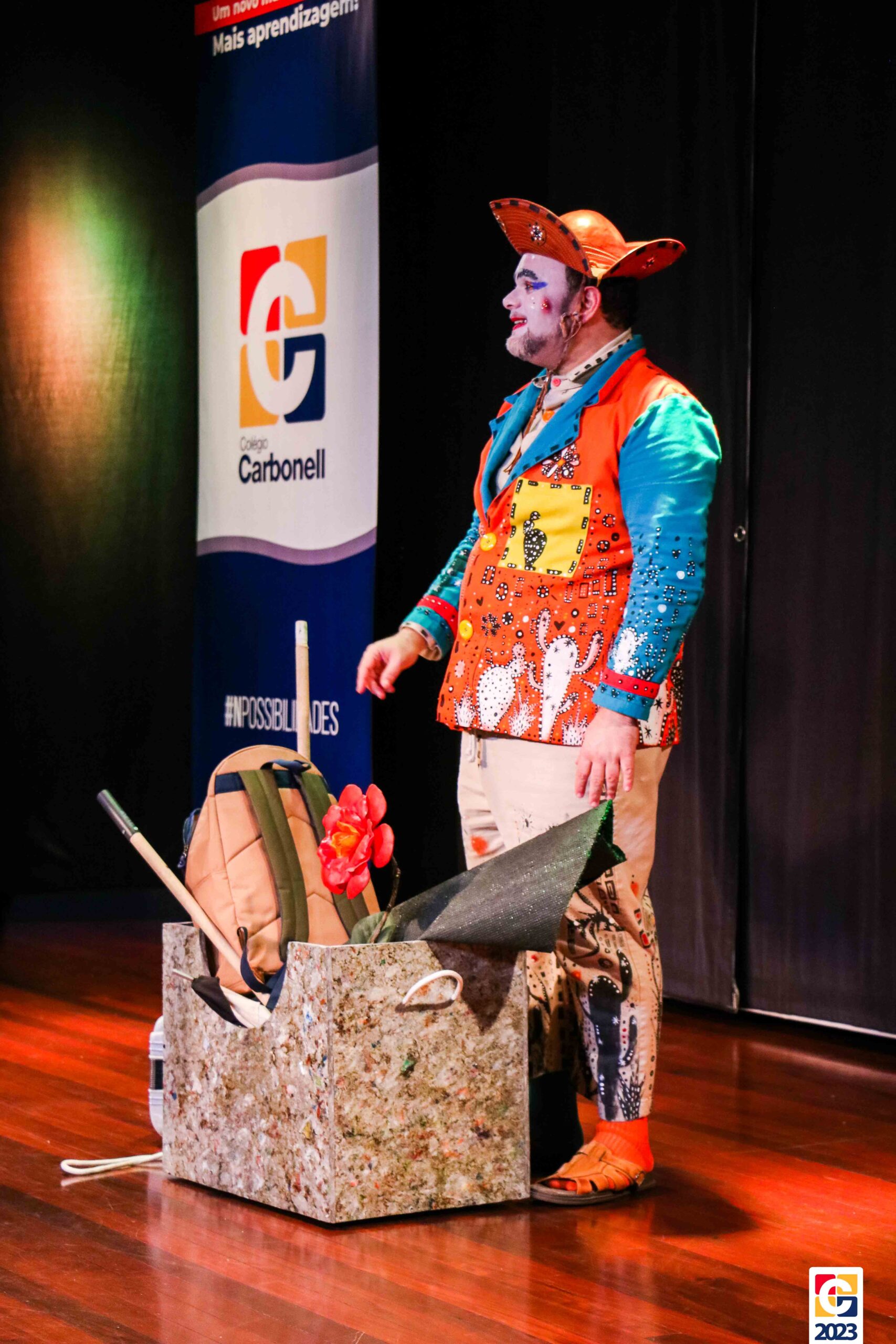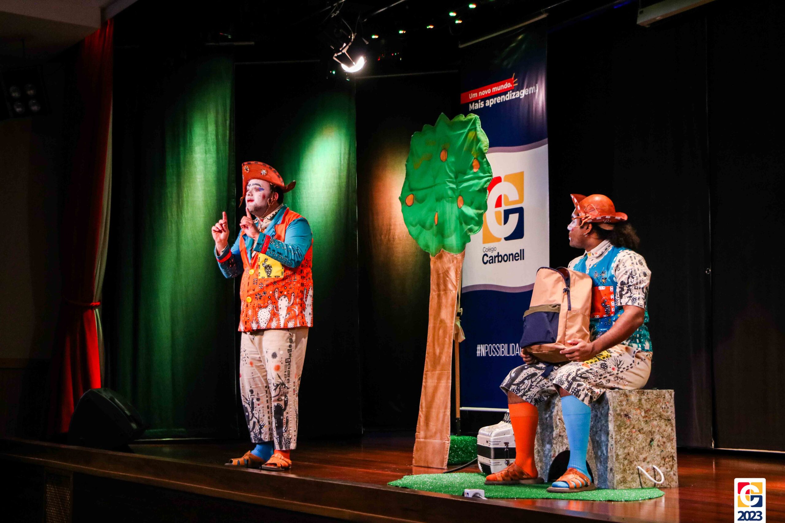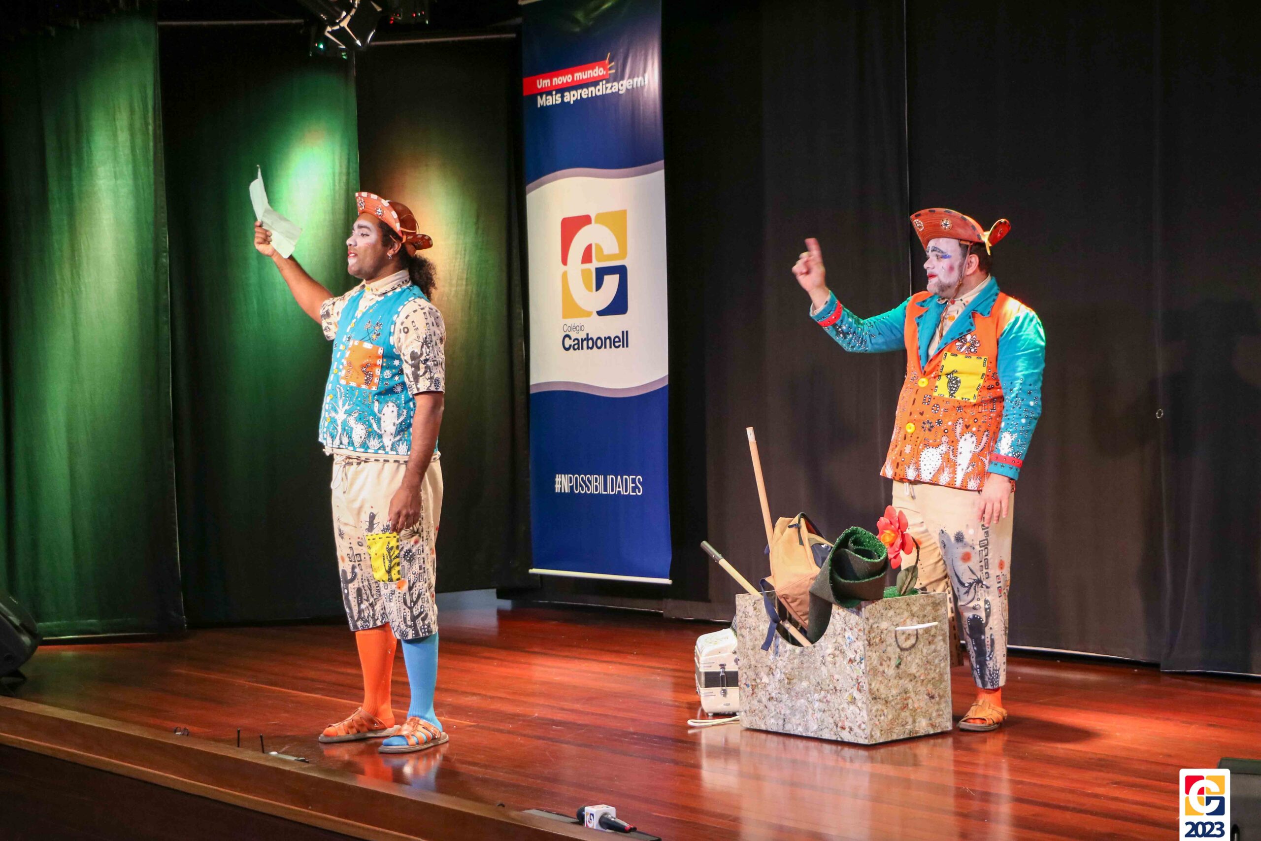 Ontem (19), o palco do nosso Teatro Oswaldo Mazoni e as crianças do Ensino Fundamental receberam as especiais visitas de Seu Nilo e Pedrinho, protagonistas de “Fim Que Vira Começo Que Vira”, um dos espetáculos teatrais que compõem o projeto Recicla Cultural. 🎭