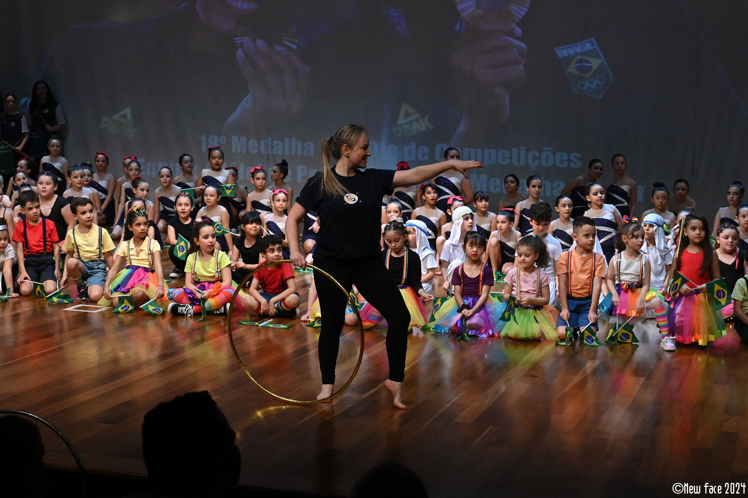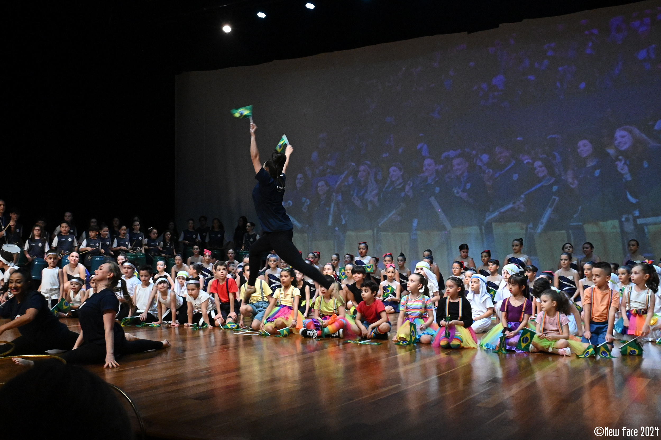 O ponto alto da noite foi a apresentação final, que celebrou a alegria e a diversidade do nosso Brasil em uma exibição cheia de cores e movimentos vibrantes. O público se emocionou e vibrou ao ver nossos estudantes brilhando no palco, numa celebração que reforçou valores como trabalho em equipe, respeito e a beleza de uma comunidade unida. 🤸🏿