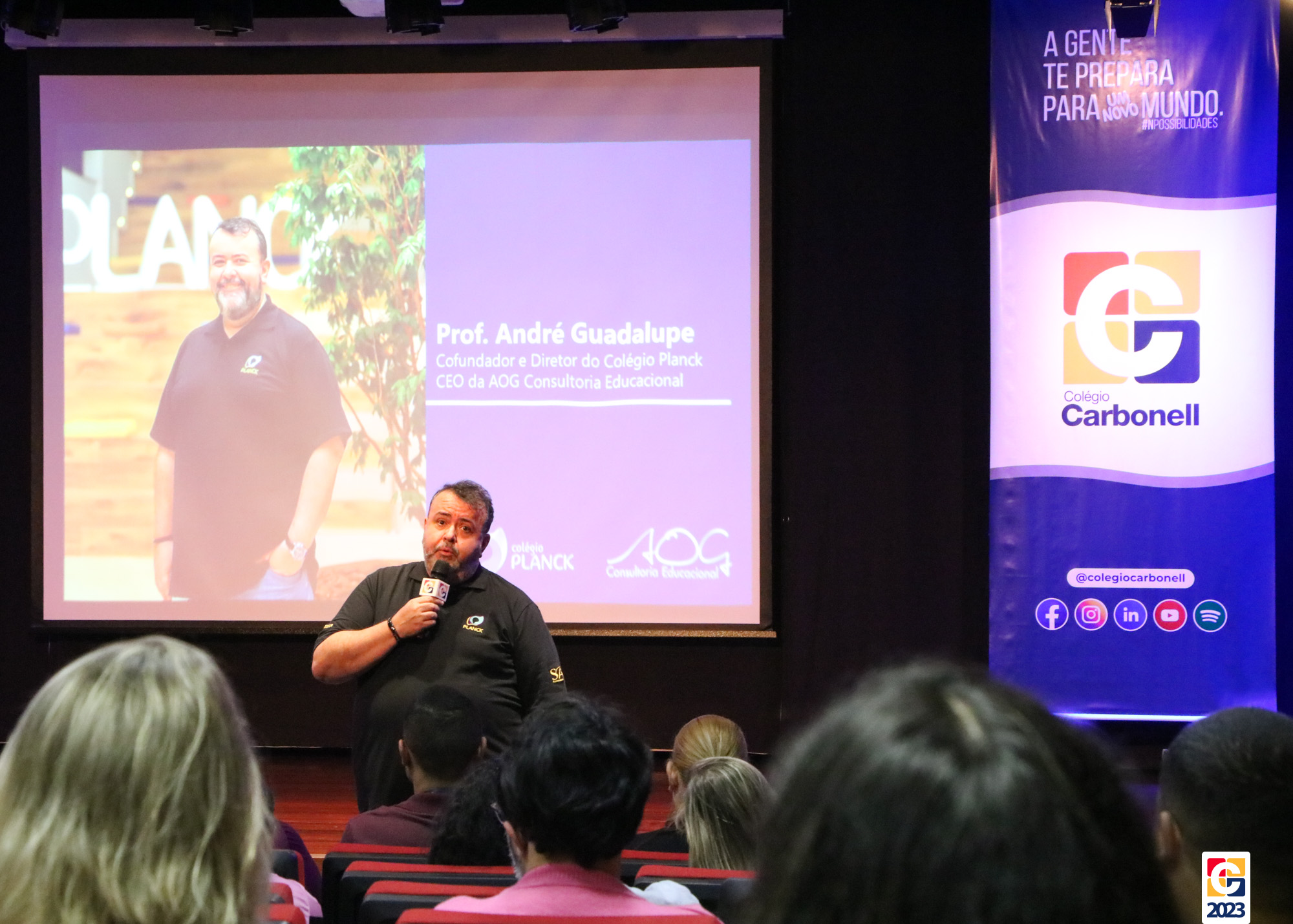 O Professor André Guadalupe é fundador e Diretor do Colégio Planck, em São José dos Campos/SP, e lidera a AOG Consultoria Educacional. Na última quinta-feira (10), ele esteve no Colégio Carbonell como convidado na noite do Encontro de Formação dos Professores, em apresentação especial. 😍
