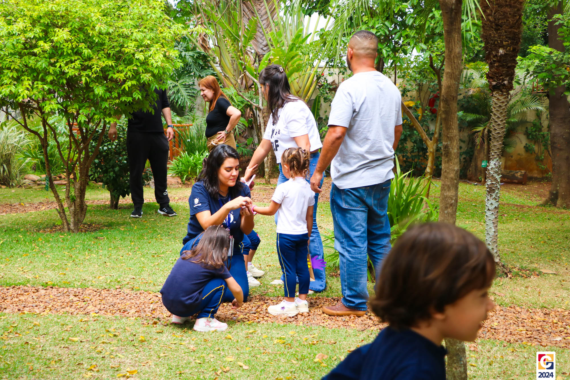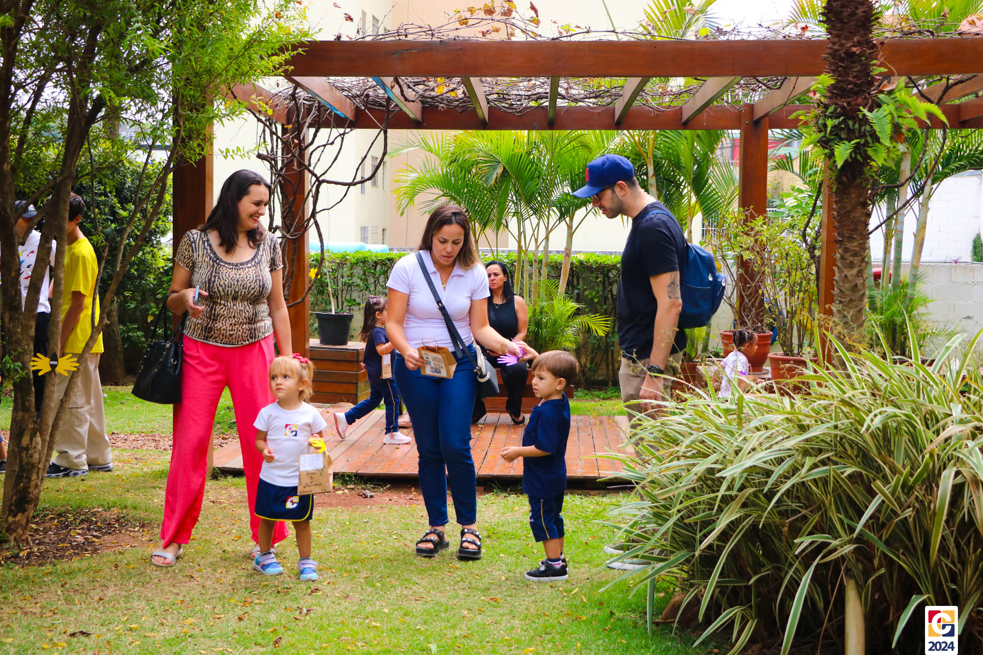 As famílias também participaram de uma atividade no nosso bosque, colhendo elementos naturais como folhas e galhos, que levaram para casa para criar uma obra artística junto com os filhos, conectando a natureza à criatividade. 🎨