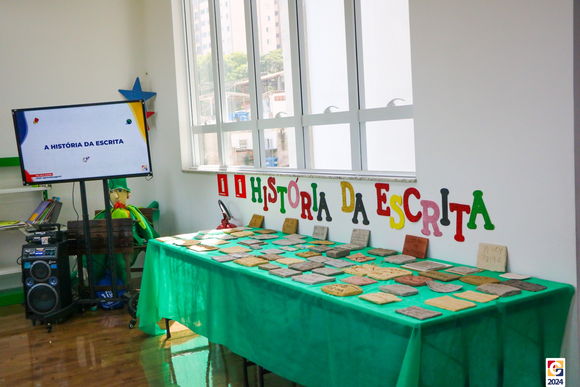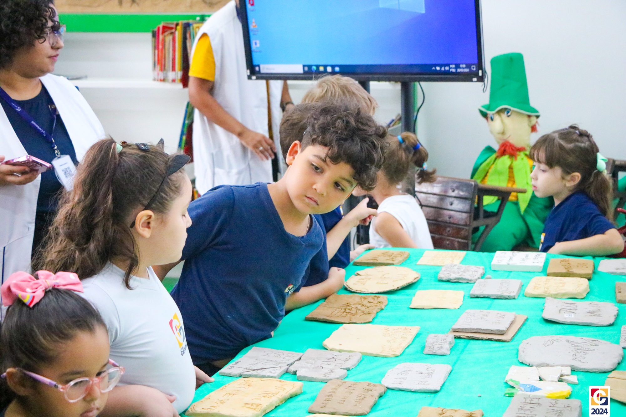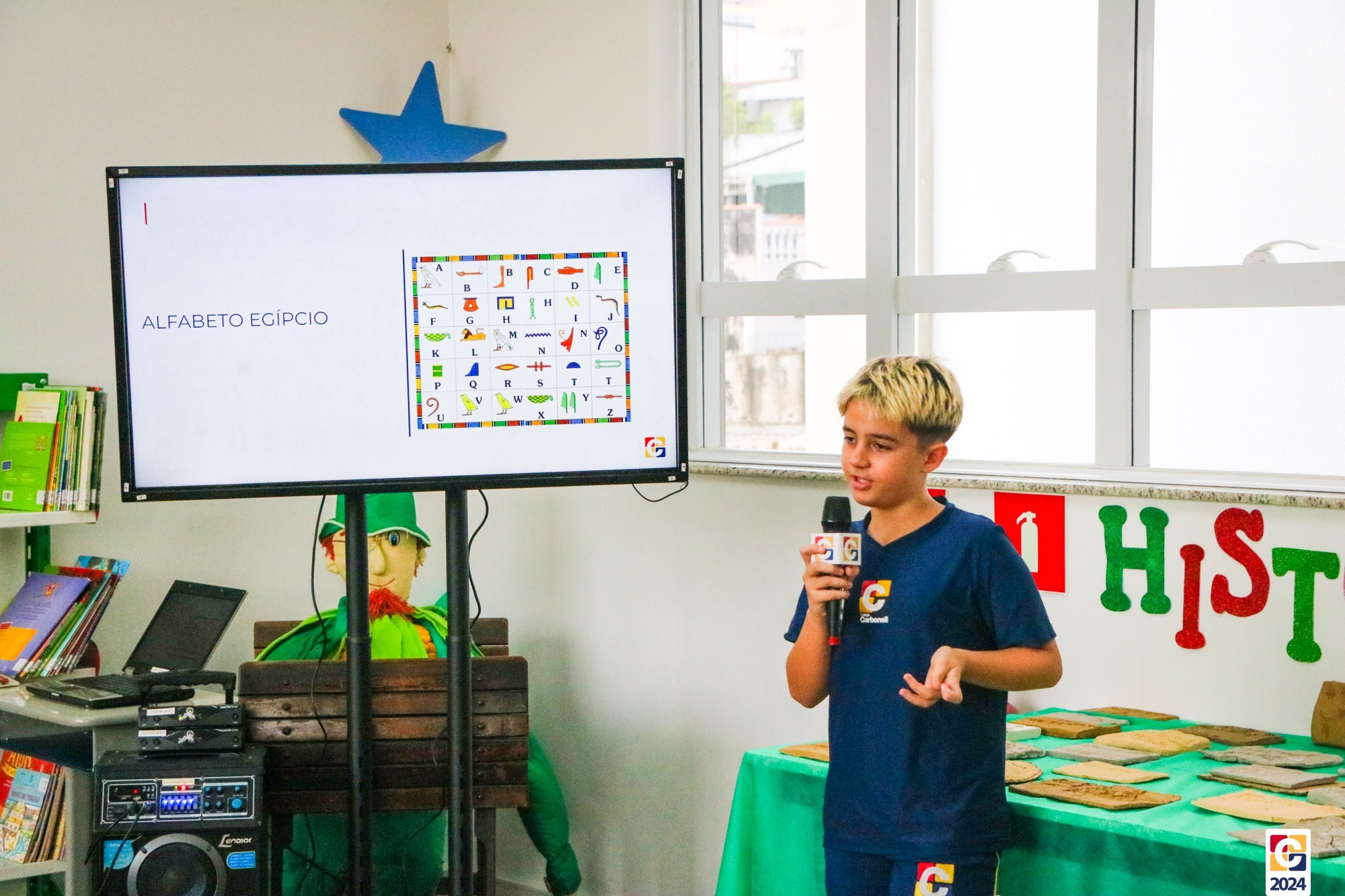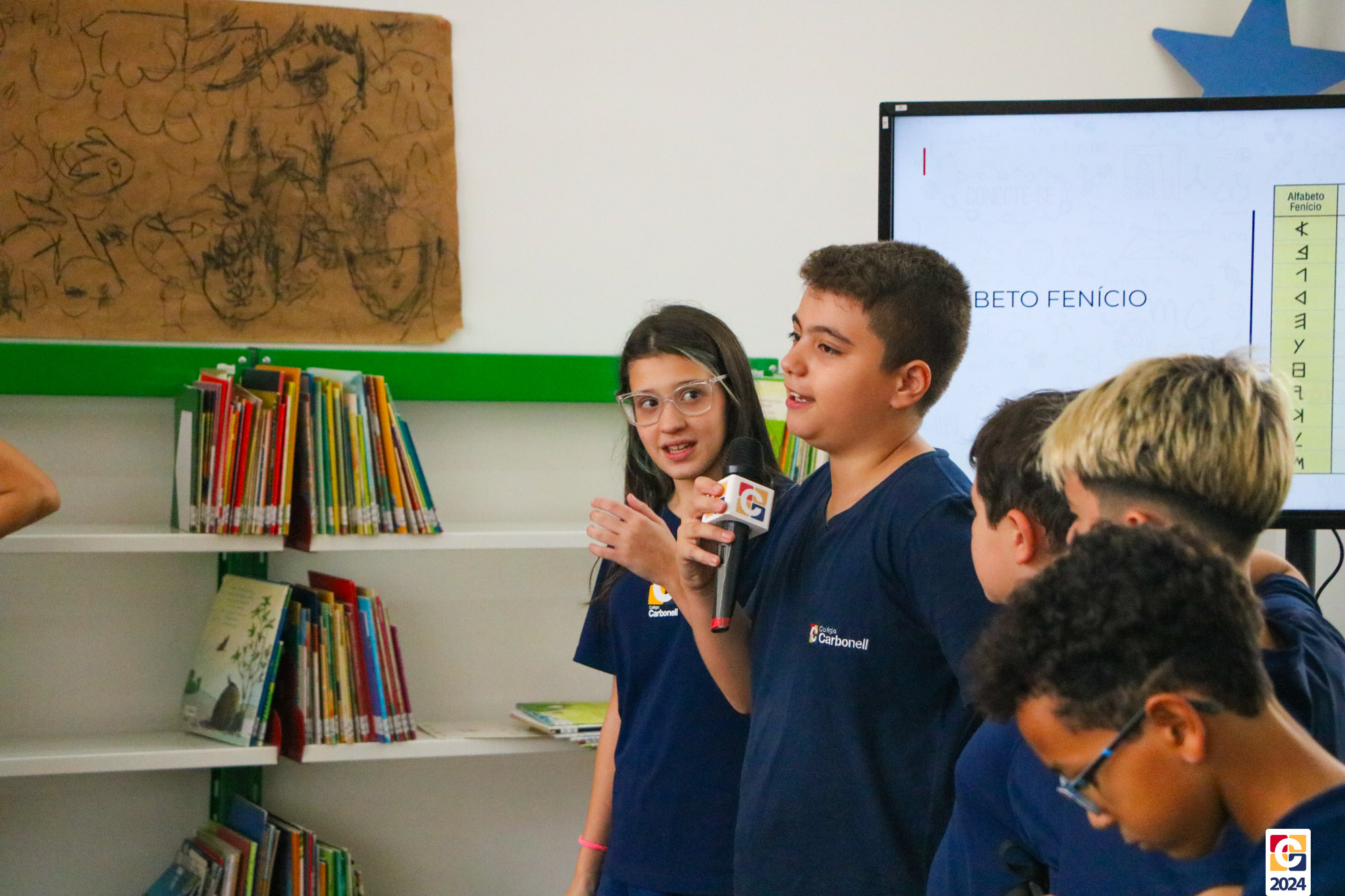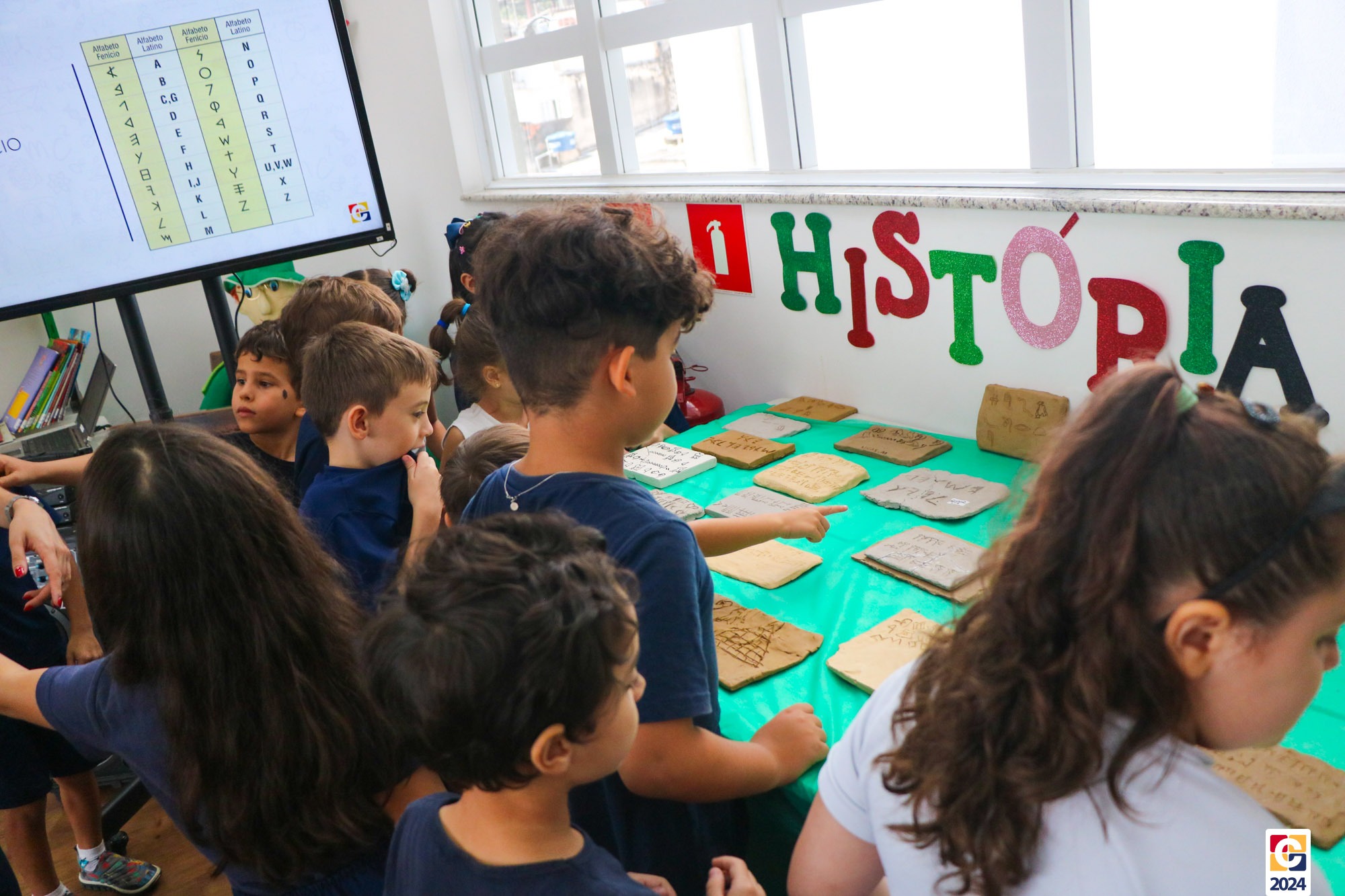 Na Sala de Leitura, estudantes do 6º ano conduziram uma jornada educativa para crianças do 1º ano dos Anos Iniciais. Sob a orientação do Professor Maicon, todos mergulharam nos mistérios das antigas escritas Sumérios, Egípcios e Fenícios, proporcionando uma experiência enriquecedora e envolvente. Em seguida, a turma compartilhou o que aprendeu com os estudantes do 1º ano do Ensino Fundamental, que também contribuíram confeccionando painéis inspirados nas pinturas rupestres. ✏