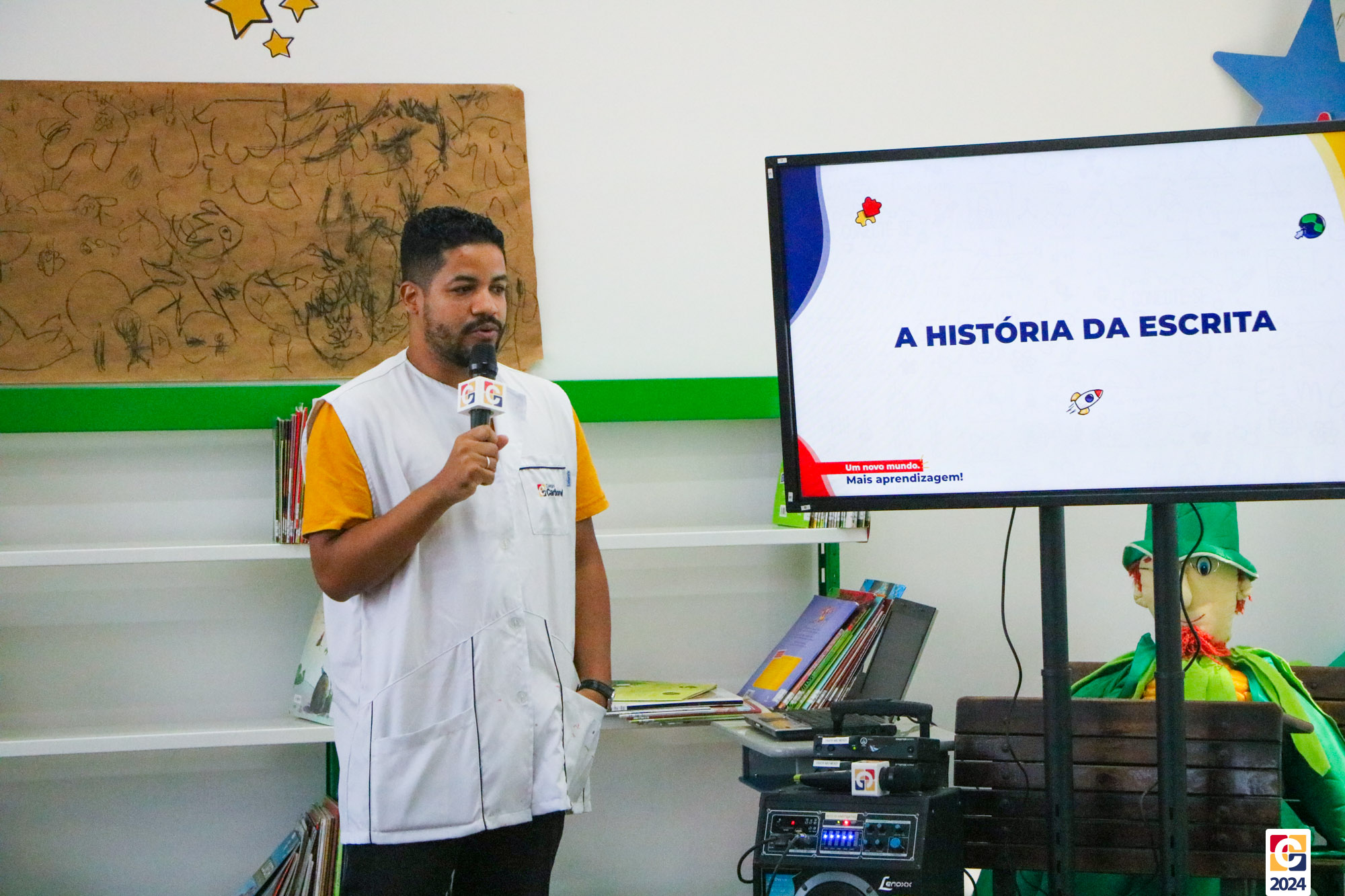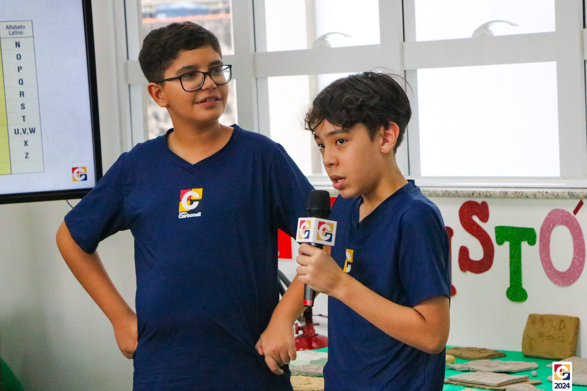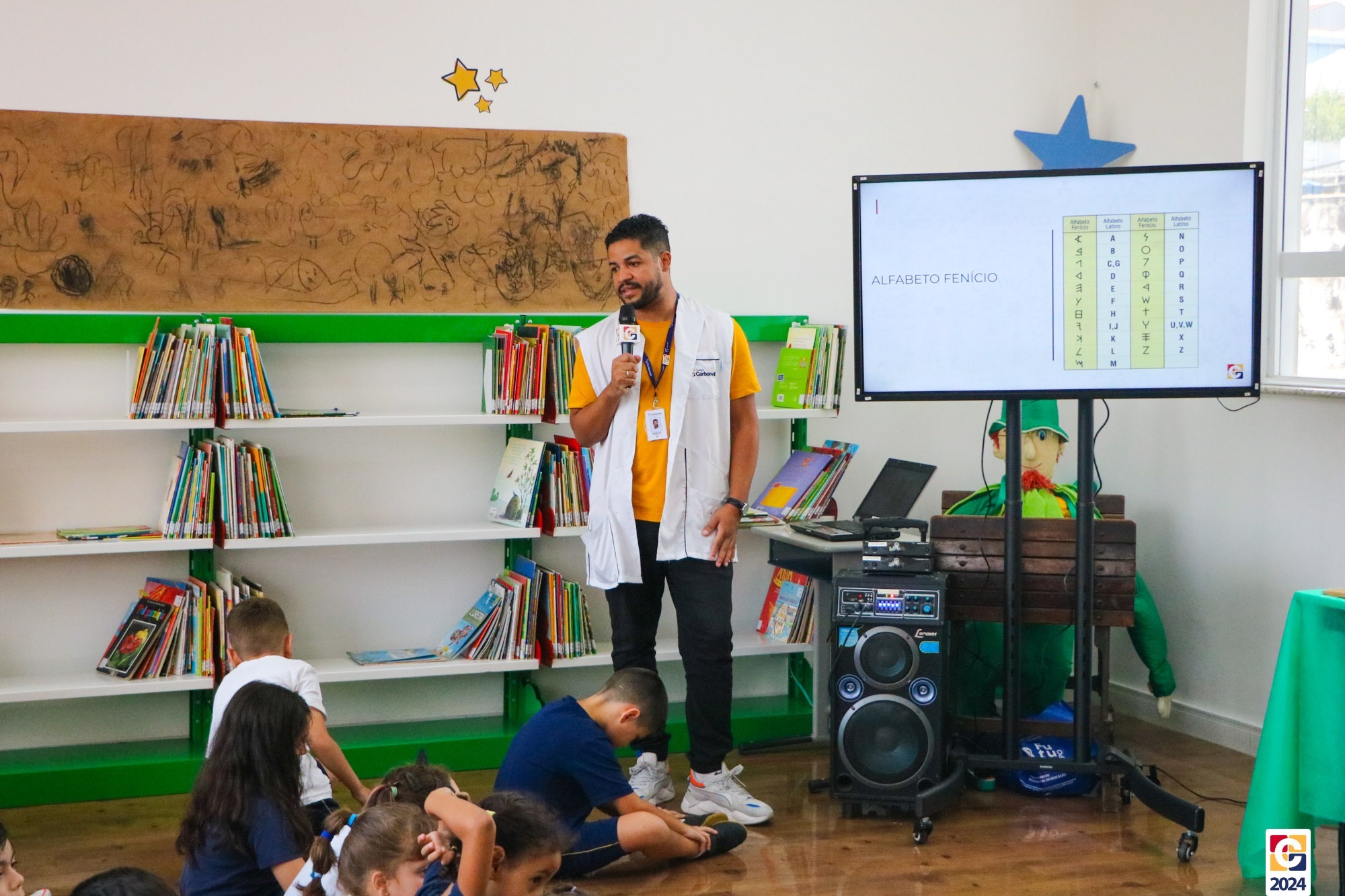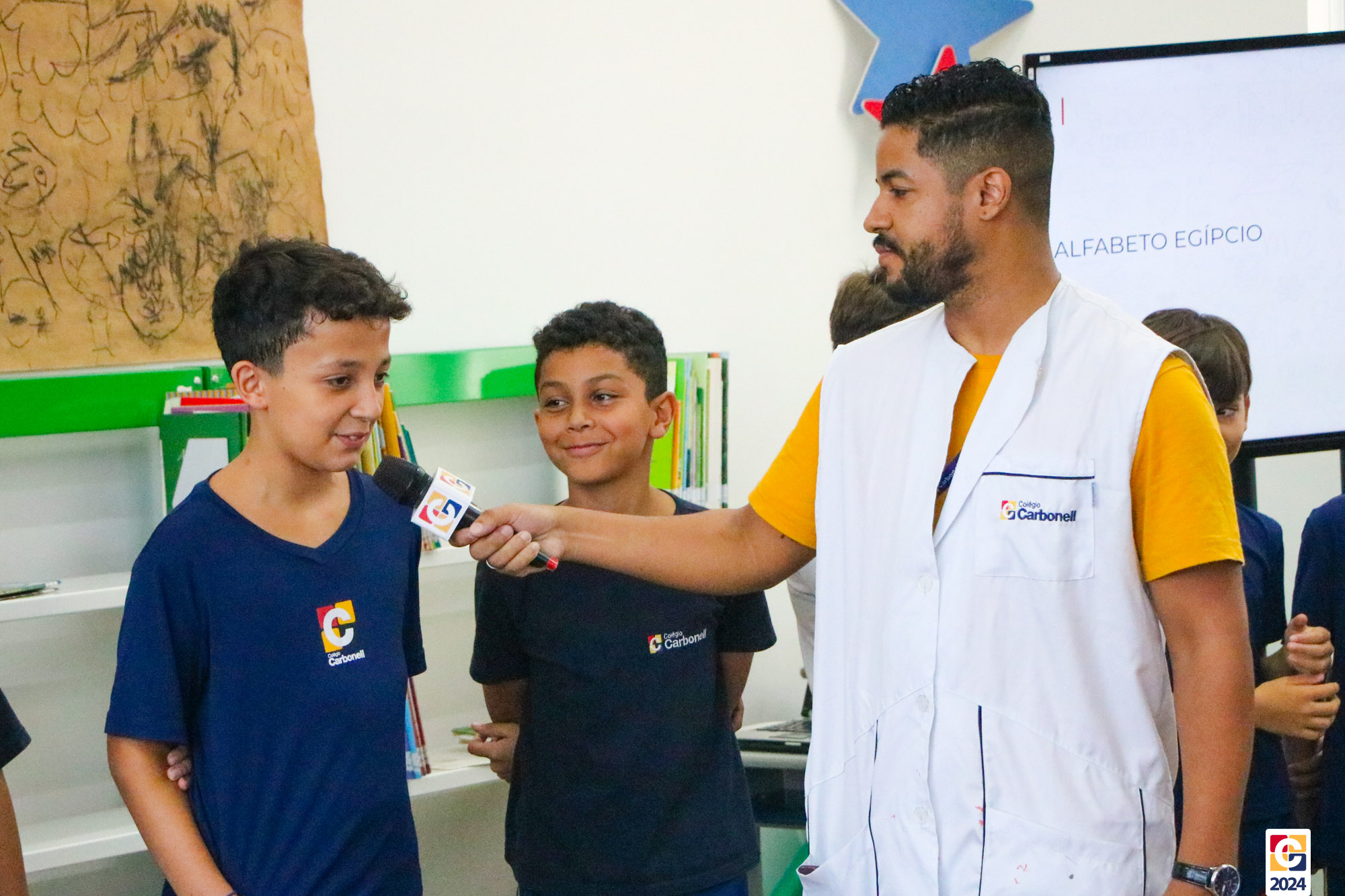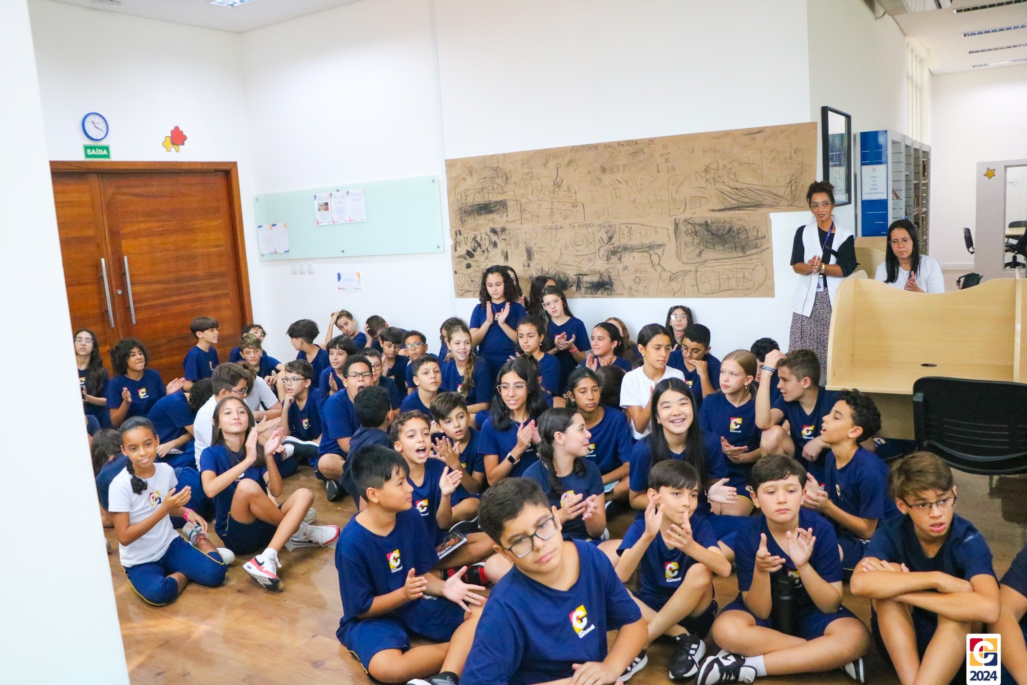 Na Sala de Leitura, estudantes do 6º ano conduziram uma jornada educativa para crianças do 1º ano dos Anos Iniciais. Sob a orientação do Professor Maicon, todos mergulharam nos mistérios das antigas escritas Sumérios, Egípcios e Fenícios, proporcionando uma experiência enriquecedora e envolvente. Em seguida, a turma compartilhou o que aprendeu com os estudantes do 1º ano do Ensino Fundamental, que também contribuíram confeccionando painéis inspirados nas pinturas rupestres. ✏