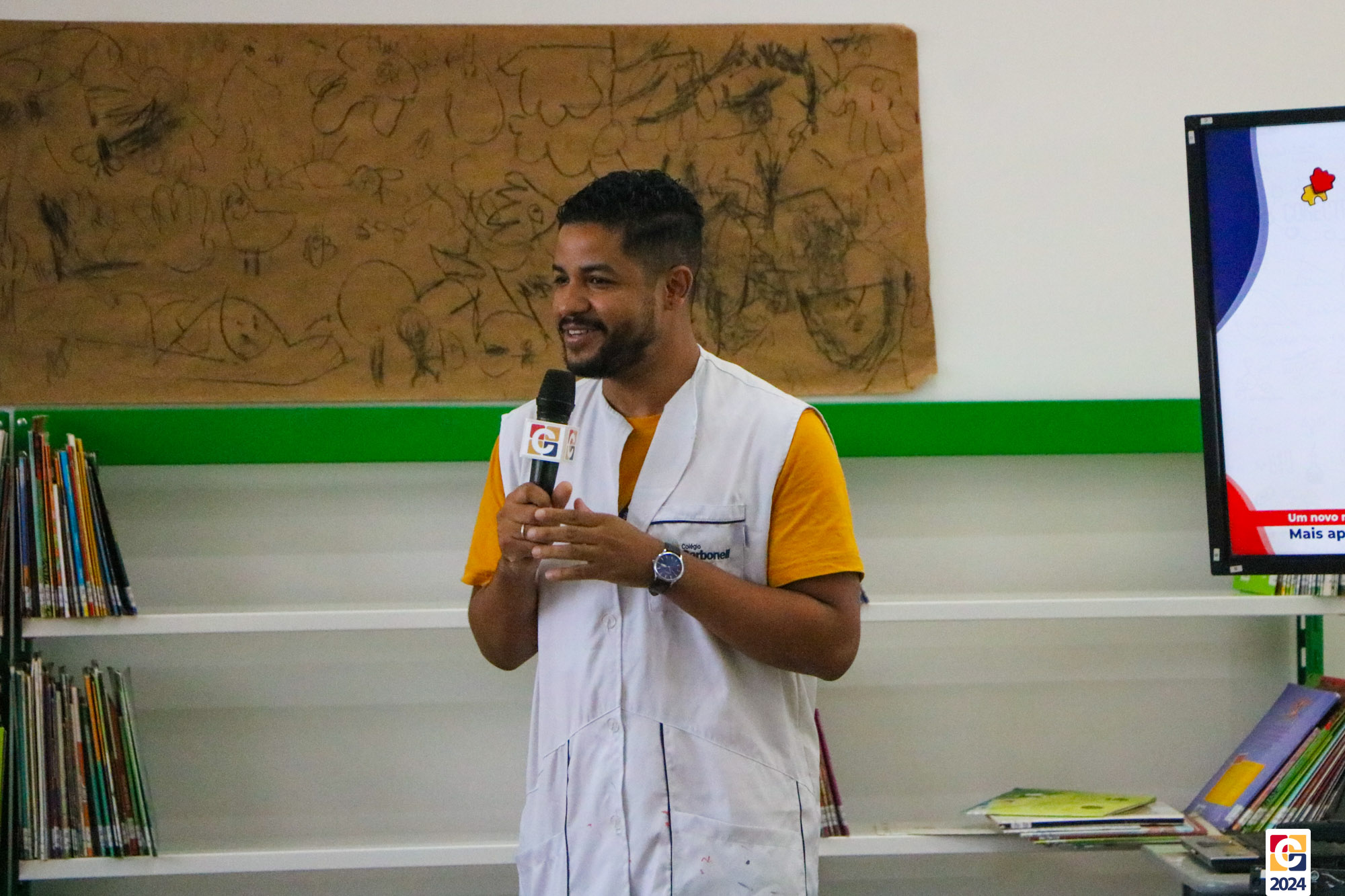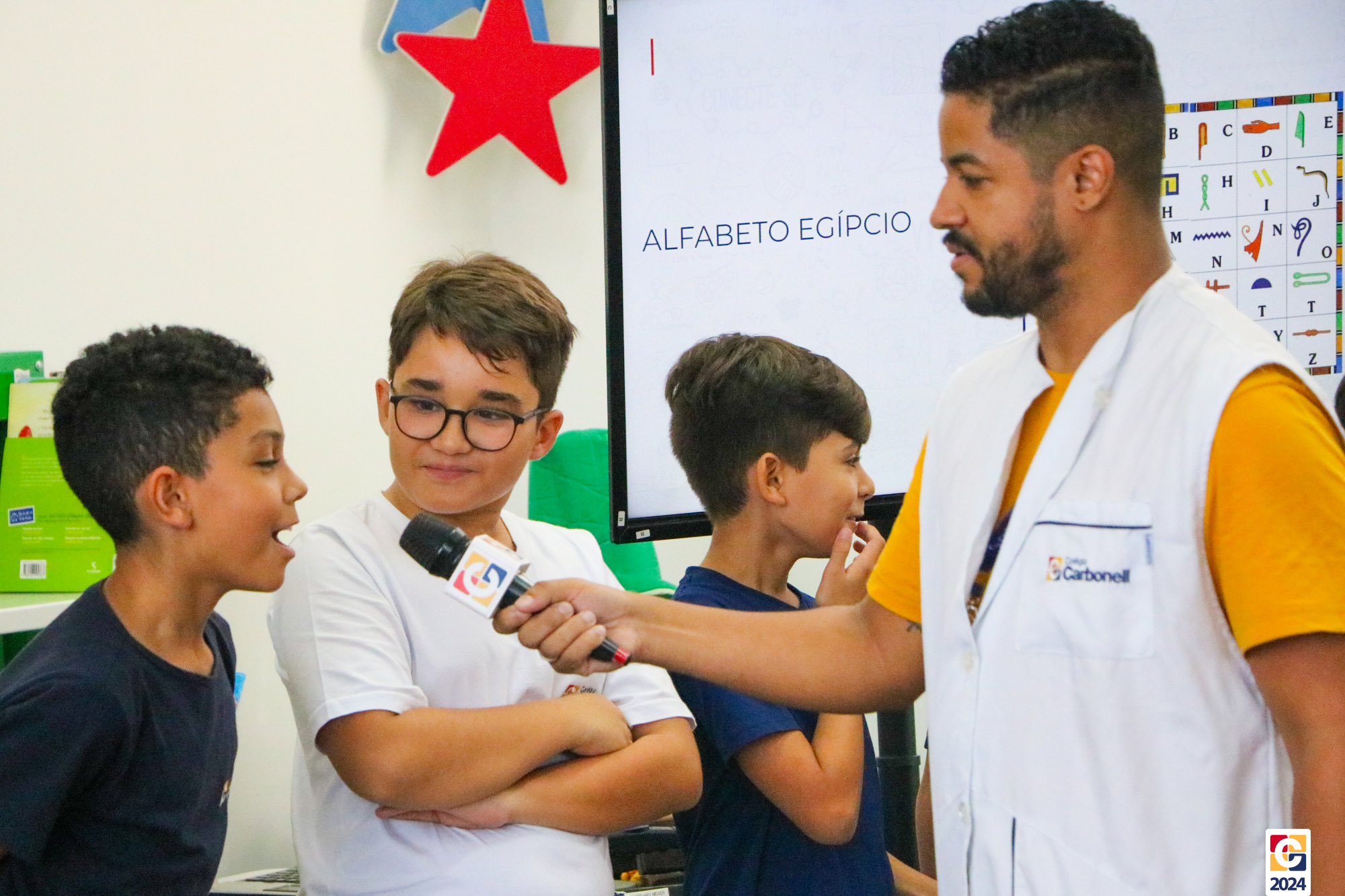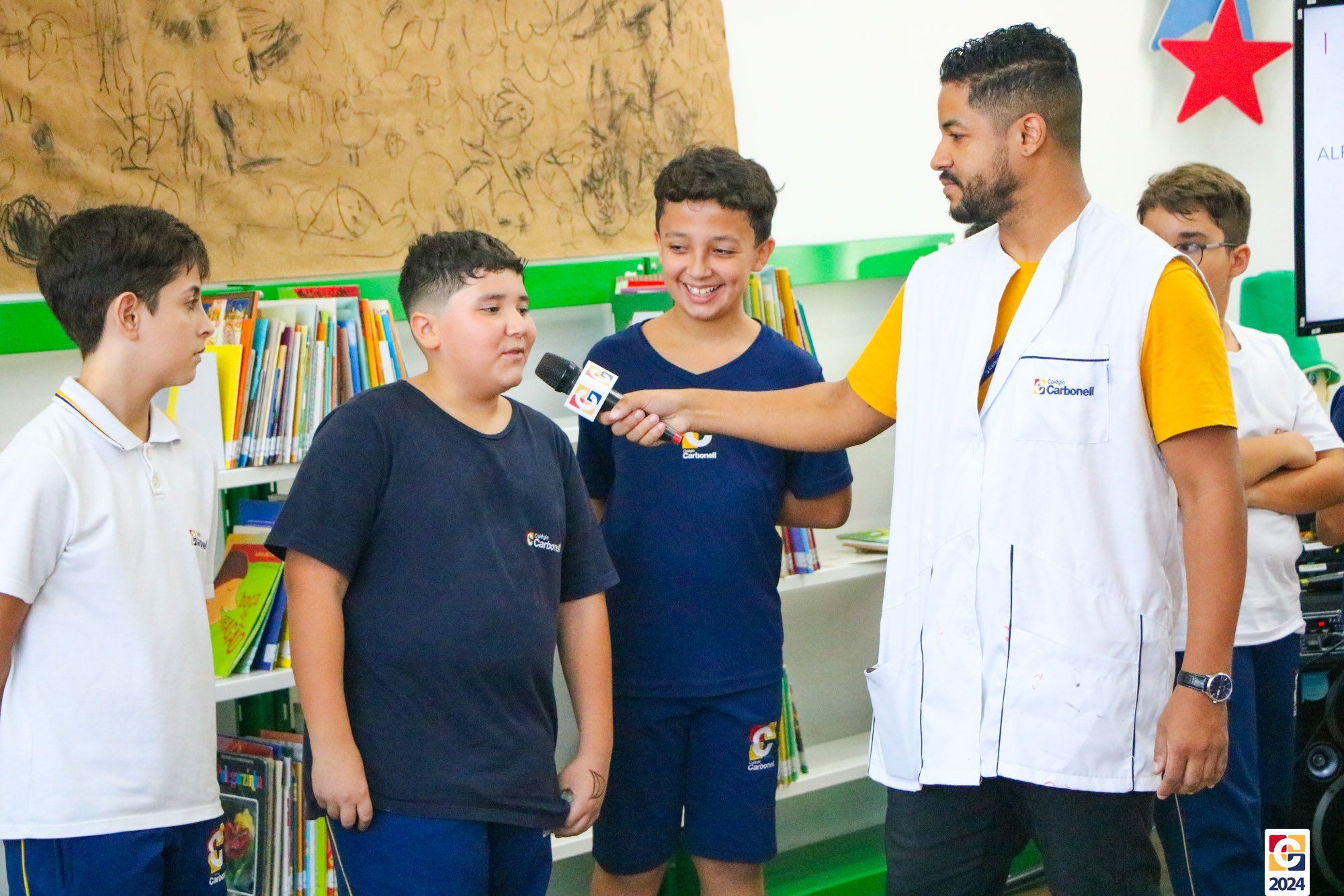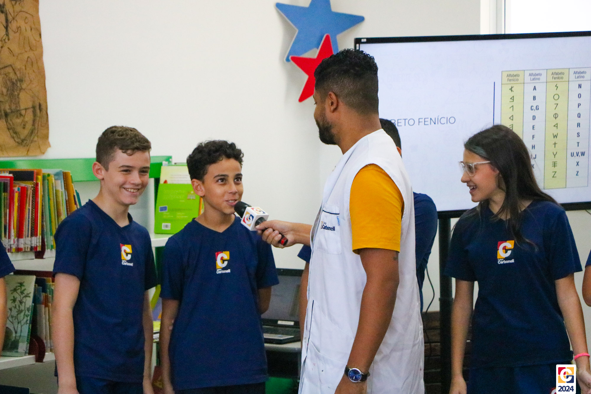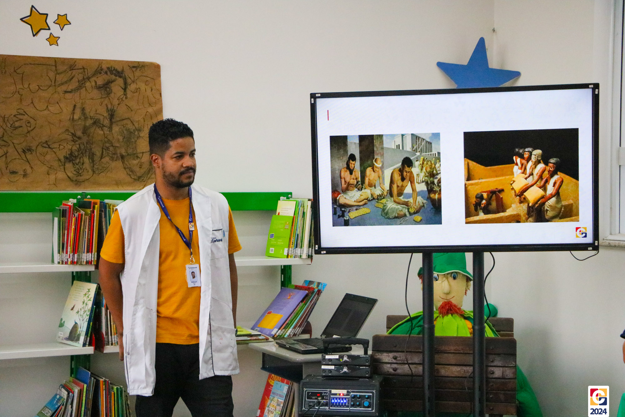 Na Sala de Leitura, estudantes do 6º ano conduziram uma jornada educativa para crianças do 1º ano dos Anos Iniciais. Sob a orientação do Professor Maicon, todos mergulharam nos mistérios das antigas escritas Sumérios, Egípcios e Fenícios, proporcionando uma experiência enriquecedora e envolvente. Em seguida, a turma compartilhou o que aprendeu com os estudantes do 1º ano do Ensino Fundamental, que também contribuíram confeccionando painéis inspirados nas pinturas rupestres. ✏