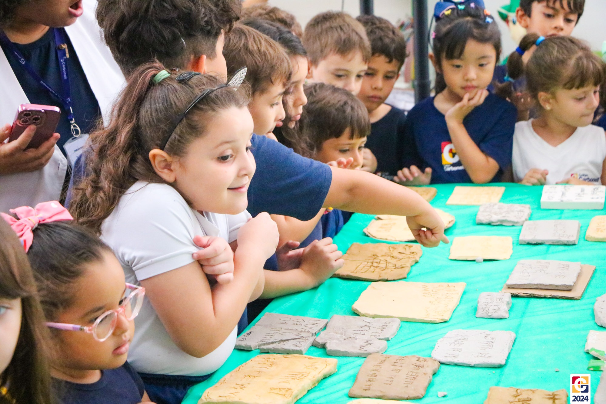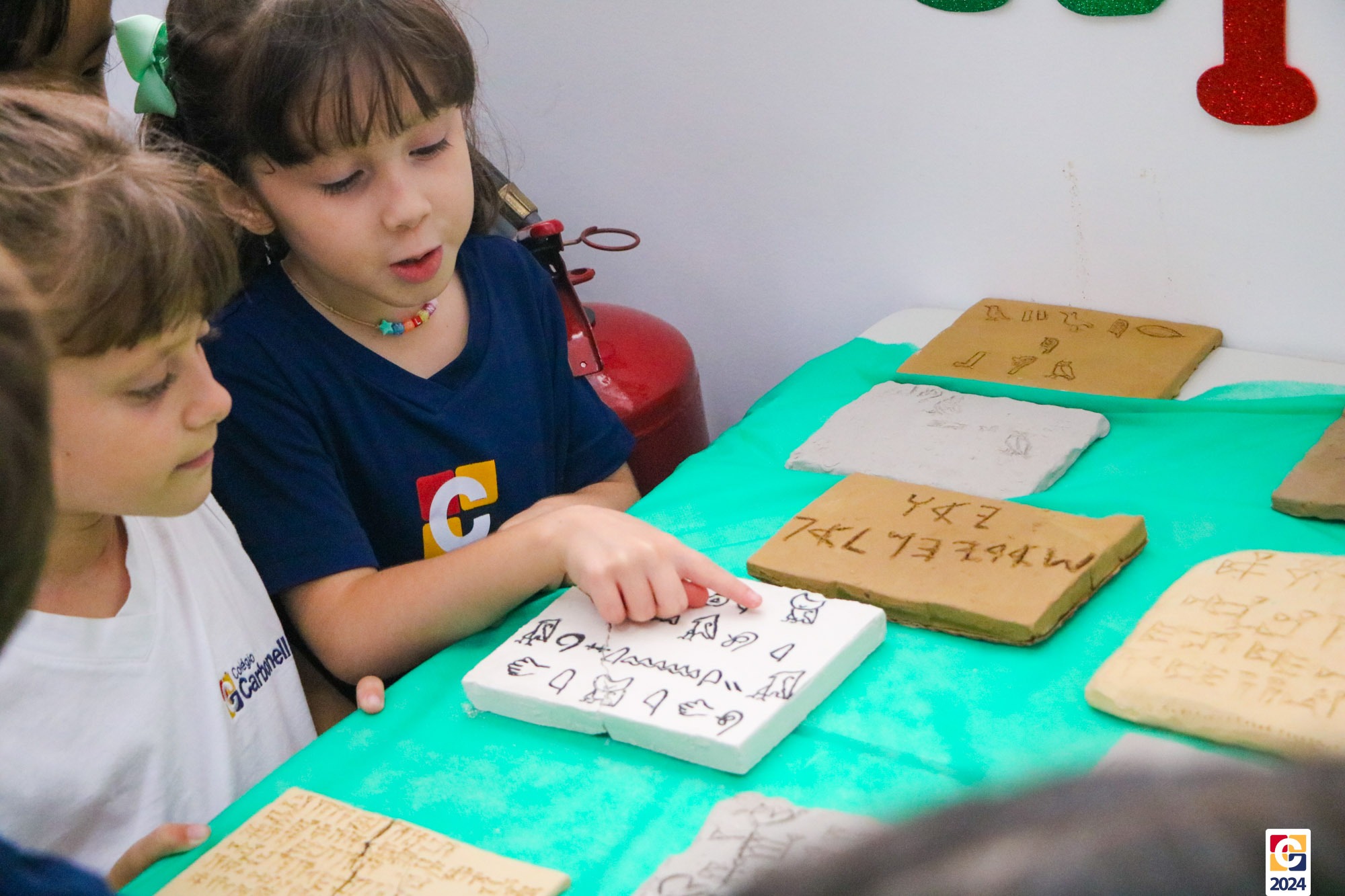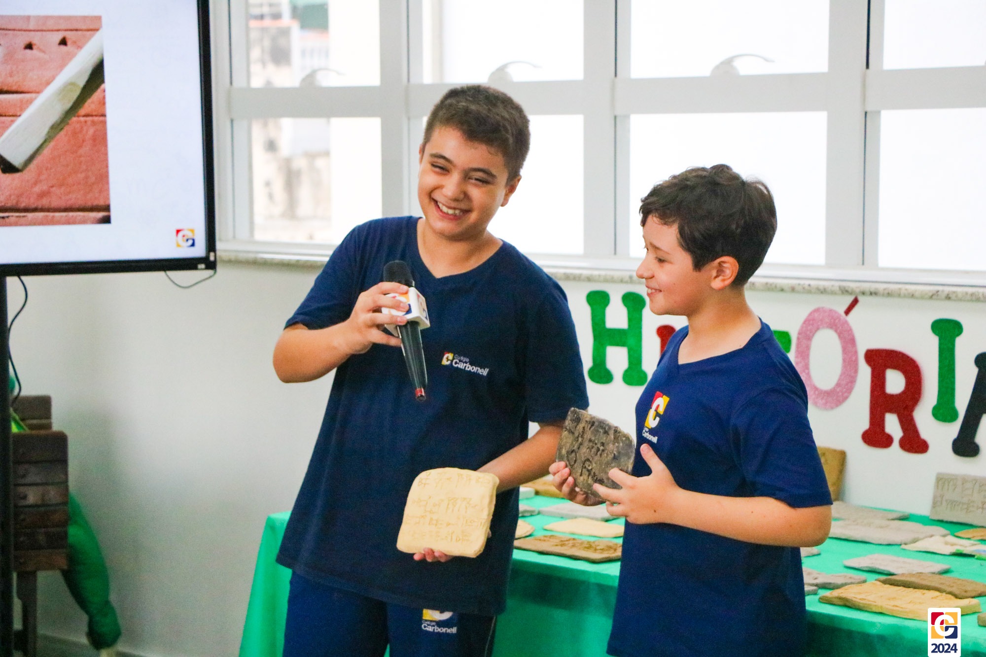 Durante a apresentação, nossos jovens não apenas compartilharam seu conhecimento teórico sobre as antigas formas de comunicação, mas também demonstraram sua aplicação prática. Divididos em grupos representando cada uma das civilizações antigas, eles recriaram exemplares autênticos das escritas em blocos de argila, trazendo à vida os segredos e significados dessas culturas há muito perdidas. 💬