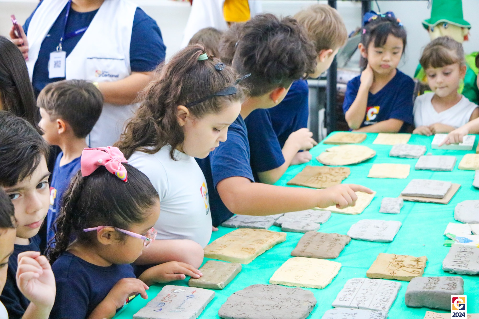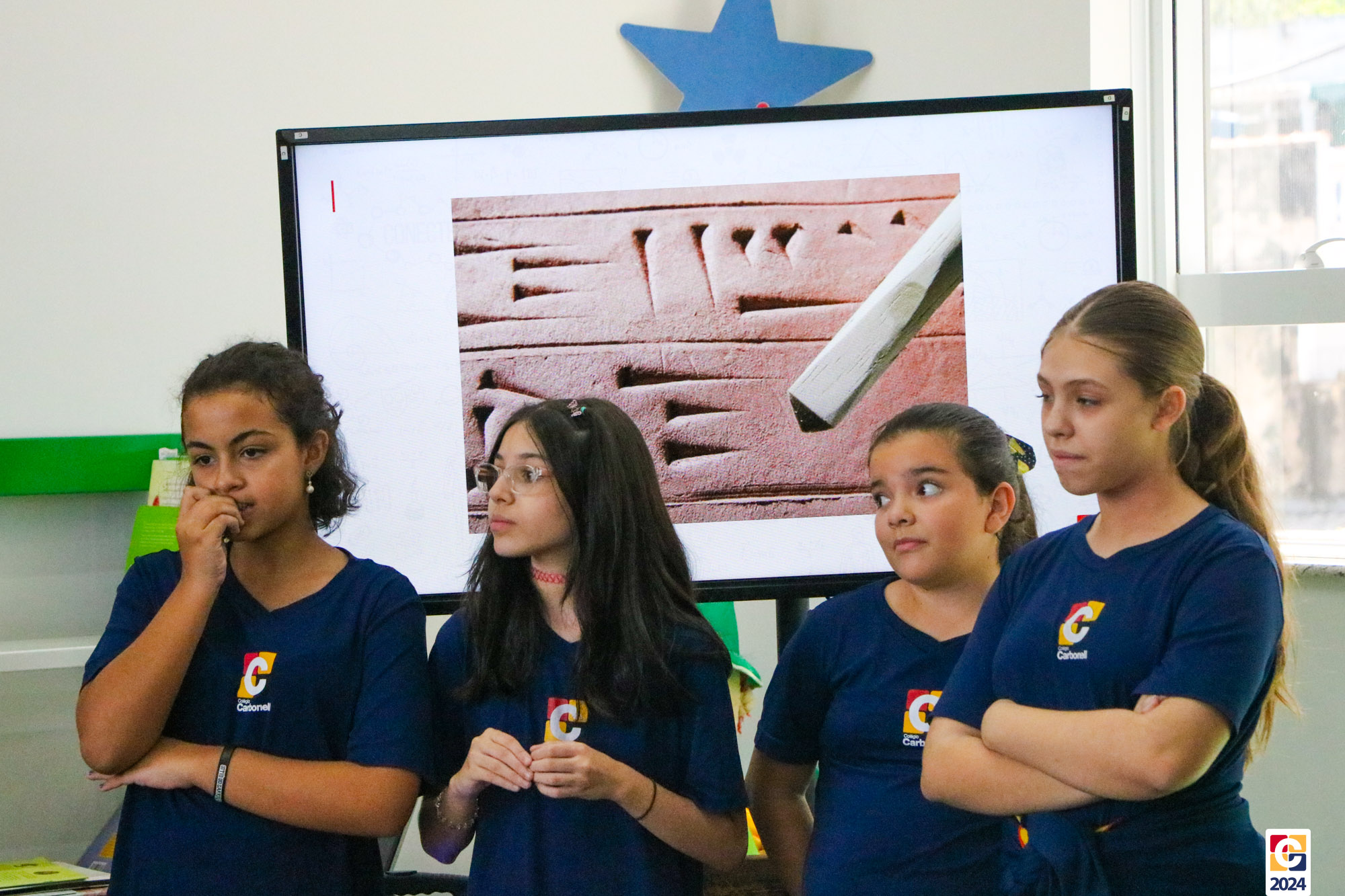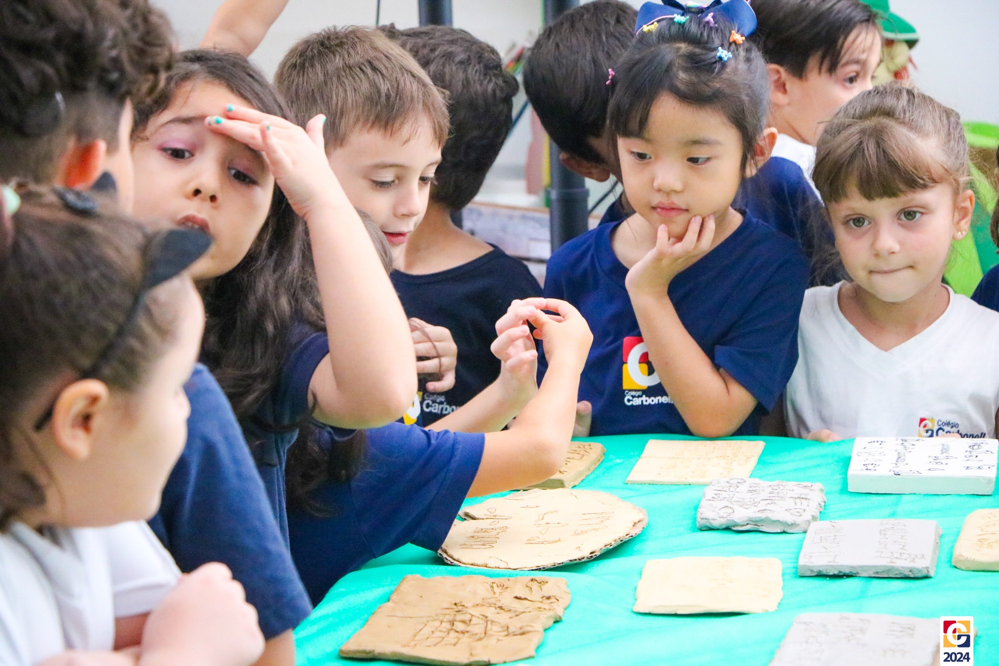 Durante a apresentação, nossos jovens não apenas compartilharam seu conhecimento teórico sobre as antigas formas de comunicação, mas também demonstraram sua aplicação prática. Divididos em grupos representando cada uma das civilizações antigas, eles recriaram exemplares autênticos das escritas em blocos de argila, trazendo à vida os segredos e significados dessas culturas há muito perdidas. 💬