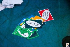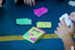 Os estudantes do 8º ano encerraram o semestre de um jeito criativo e desafiador: criando jogos de cartas e de tabuleiro sobre o tema “orações subordinadas”! Com a orientação da professora Sara Rúbia, eles colocaram a mão na massa. 🃏