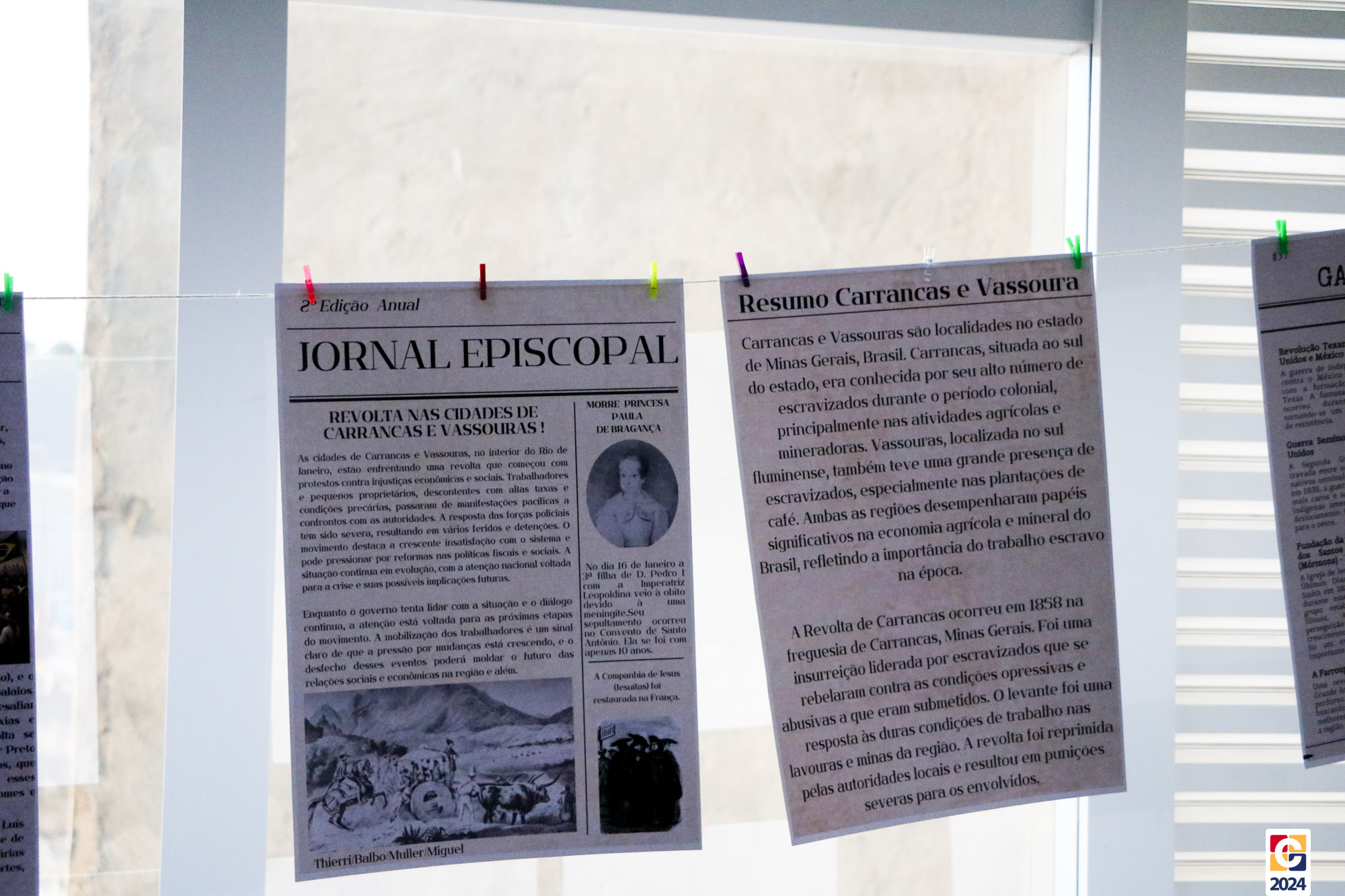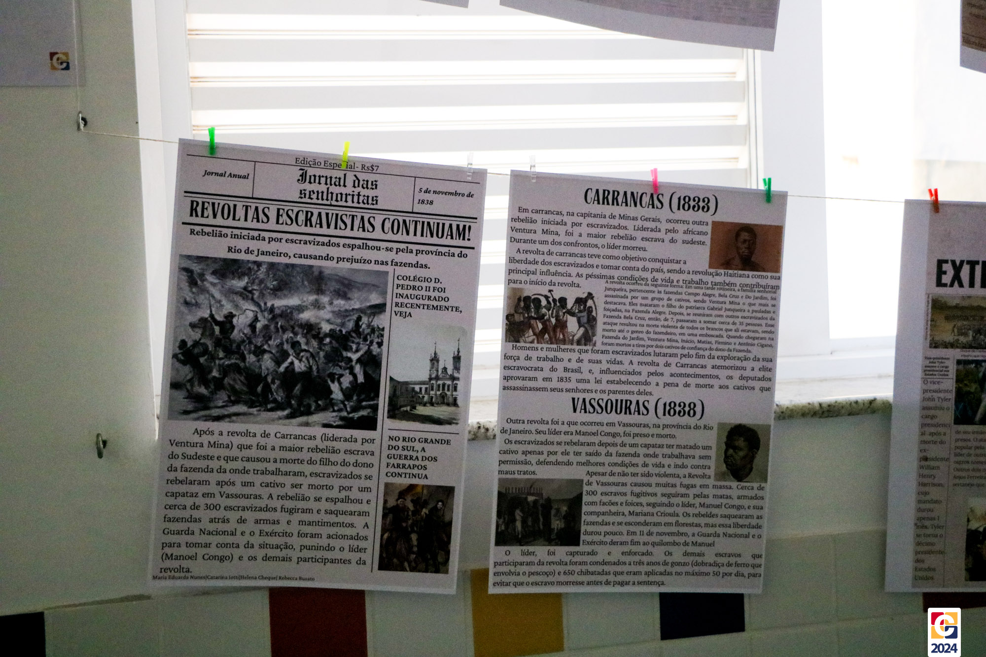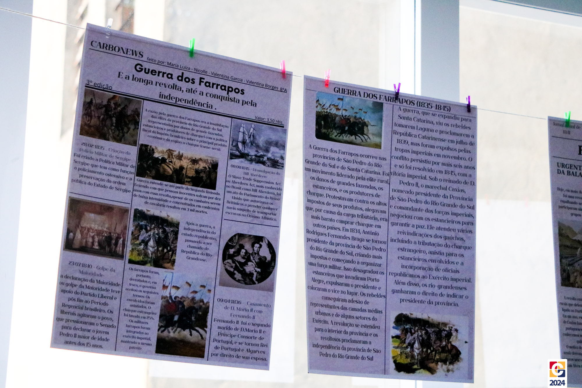 Os corredores do Colégio Carbonell estão repletos de história com uma pequena exposição das turmas do 8º ano. Os estudantes apresentaram trabalhos elaborados durante a aula de História, onde exploraram as revoltas do Período Regencial, ocorrido entre 1831 e 1840. 🏛️