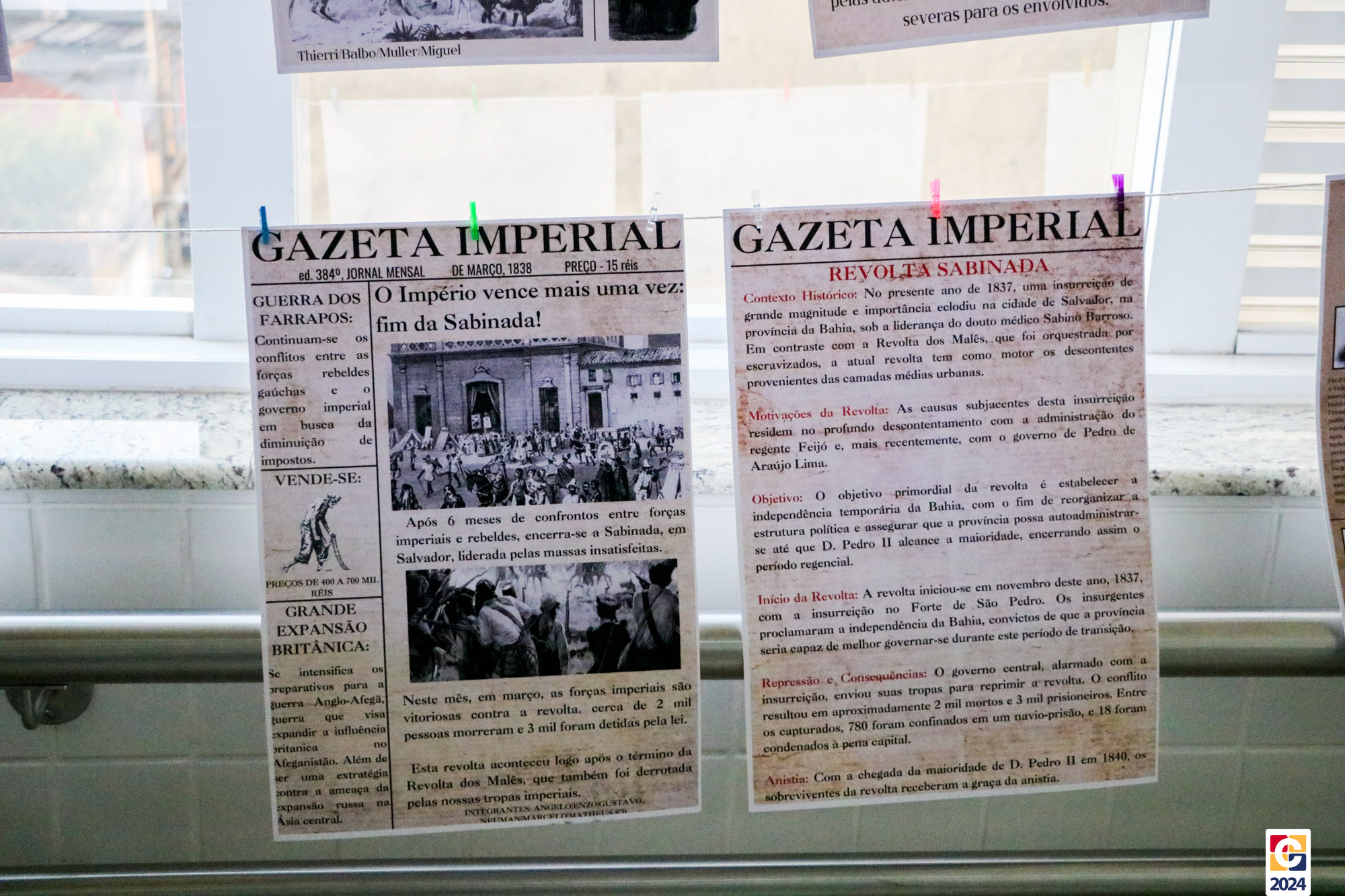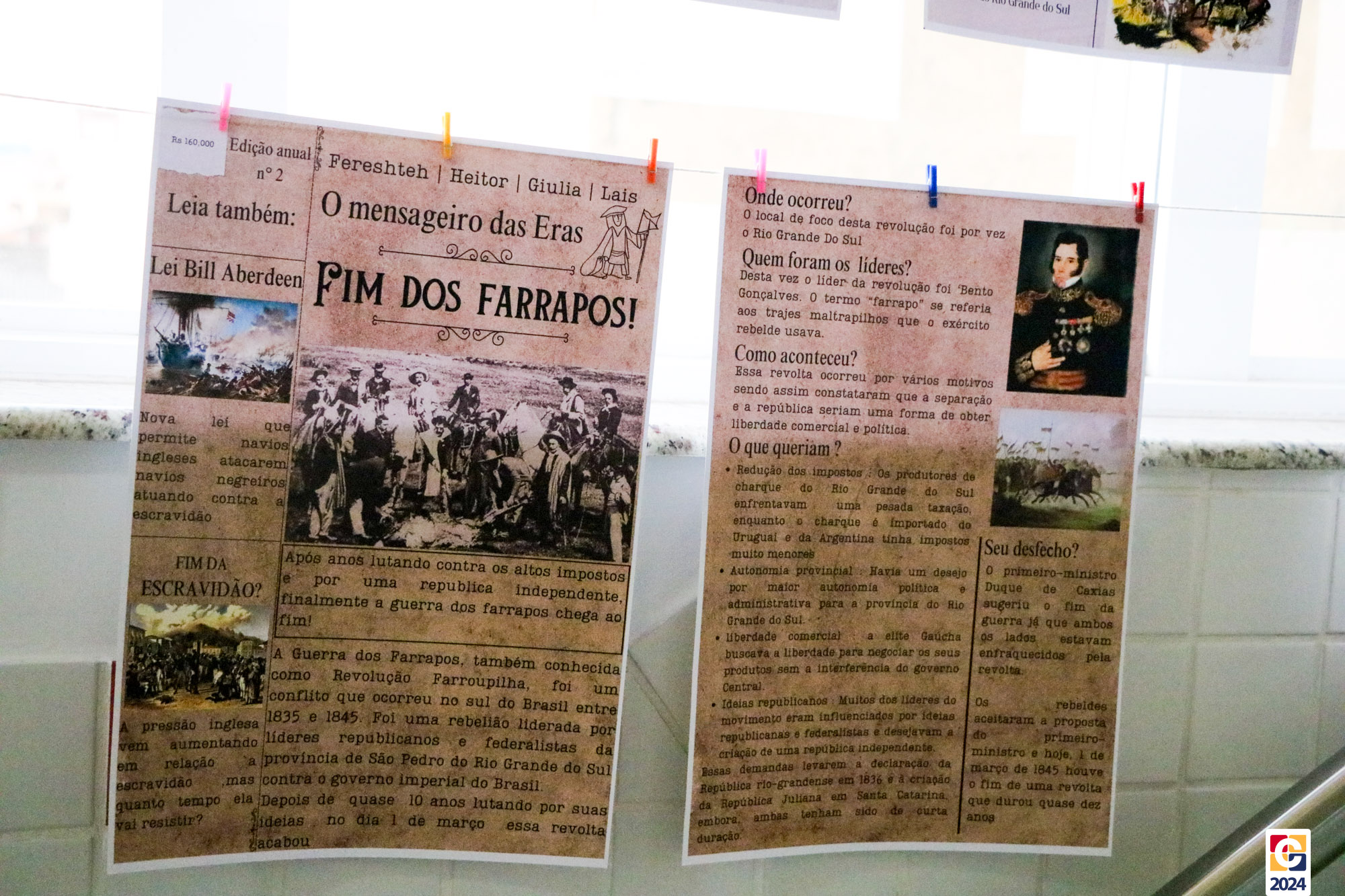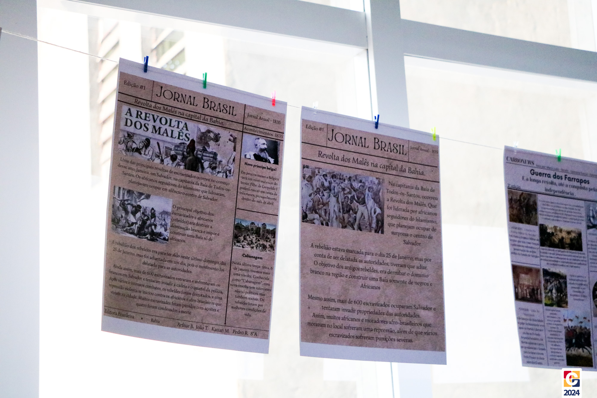 Os corredores do Colégio Carbonell estão repletos de história com uma pequena exposição das turmas do 8º ano. Os estudantes apresentaram trabalhos elaborados durante a aula de História, onde exploraram as revoltas do Período Regencial, ocorrido entre 1831 e 1840. 🏛️