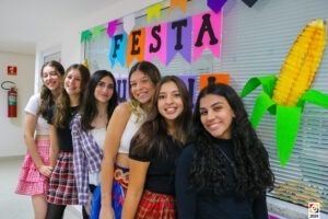 Em uma das últimas postagens celebrando as festas juninas de 2024, resgatamos fotos do dia (27), antes mesmo do início das férias, em que turmas do Ensino Médio curtiram o próprio arraial. Vestidos a caráter, nos intervalos e horário de almoço, na companhia dos professores e colaboradores, nossos jovens curtiram comidinhas típicas e todo o clima junino. 🥳