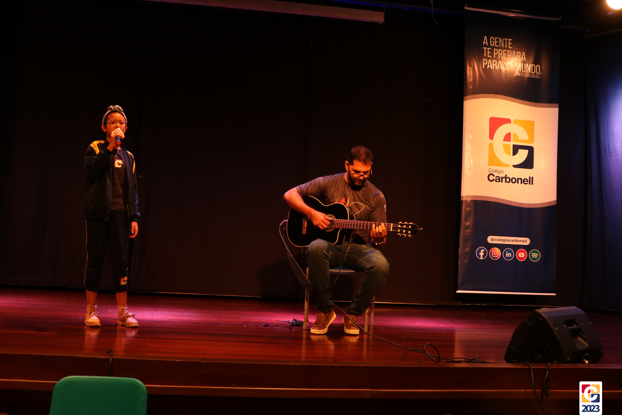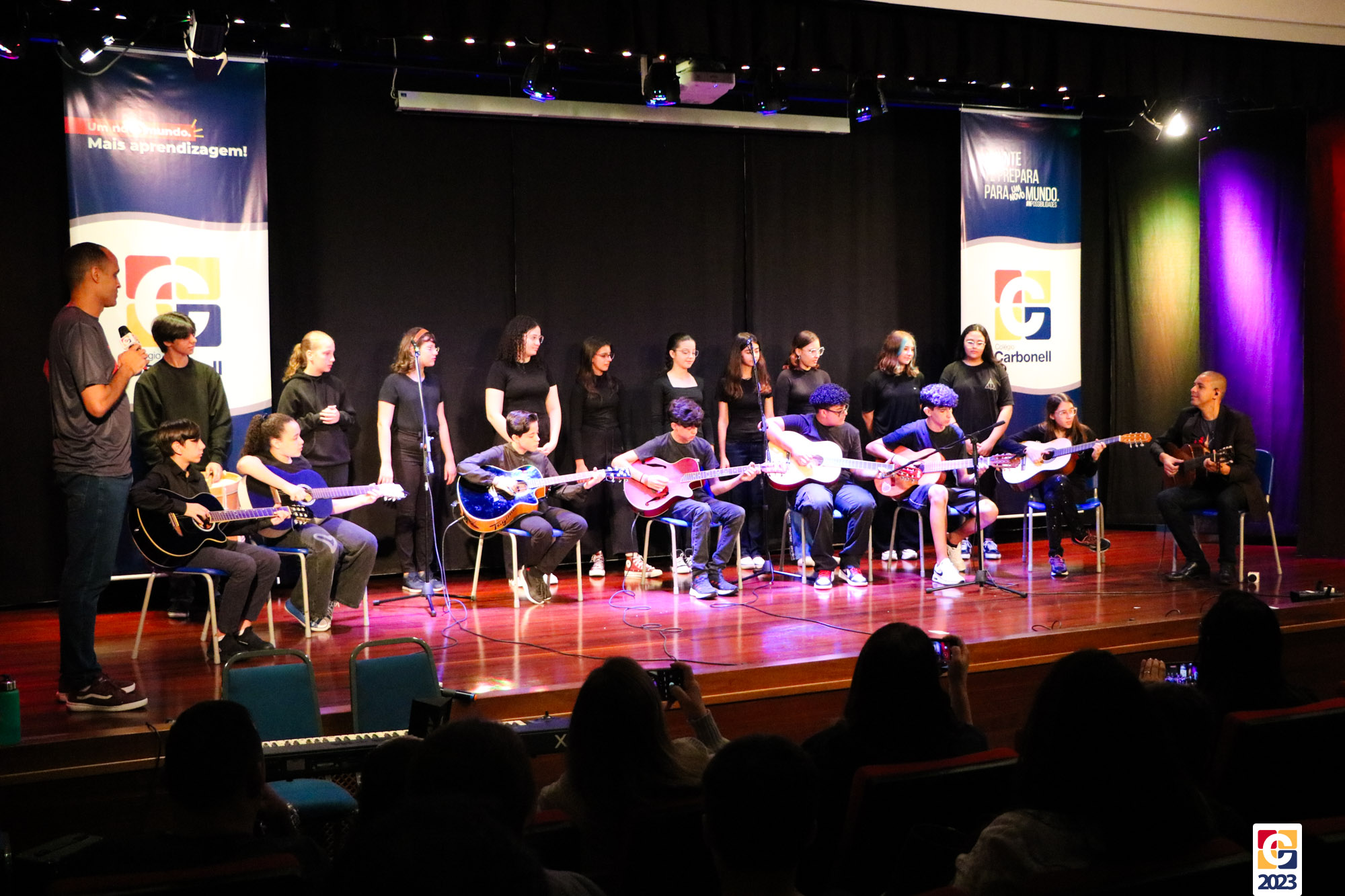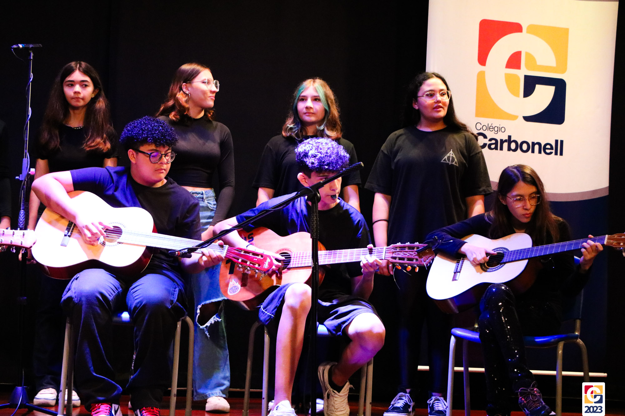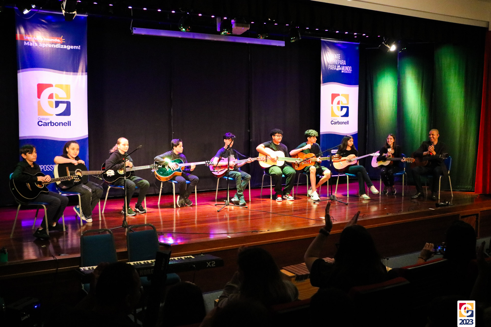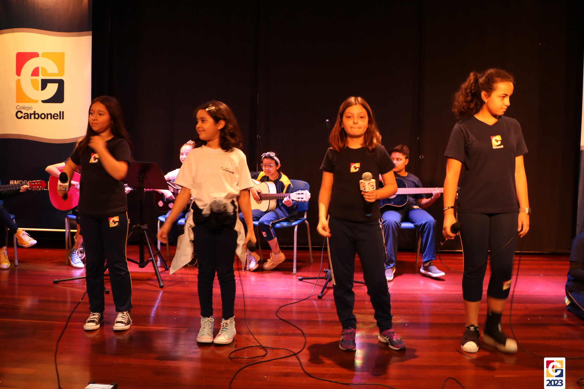 Muita dedicação e ensaios resultaram em apresentações teatrais, de música e de dança, duetos vocais e de violão, uma colorida exposição que decorou todo o colégio e até algumas sessões especiais com as famílias! Foram meses de preparo nos clubes de violão, dança, música (CarboMusic) e coral. 👩🏽‍🎤