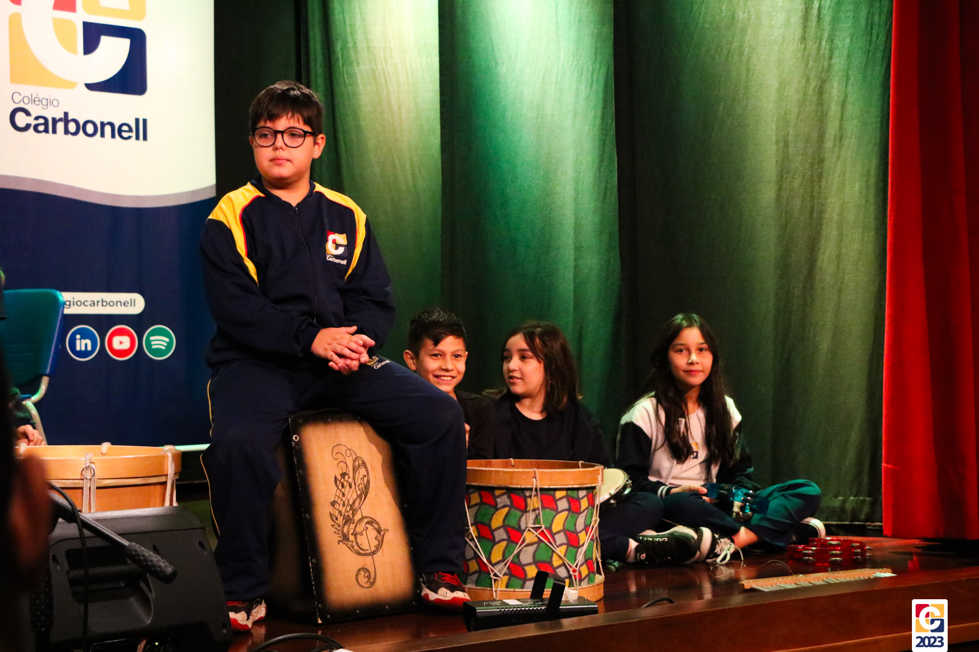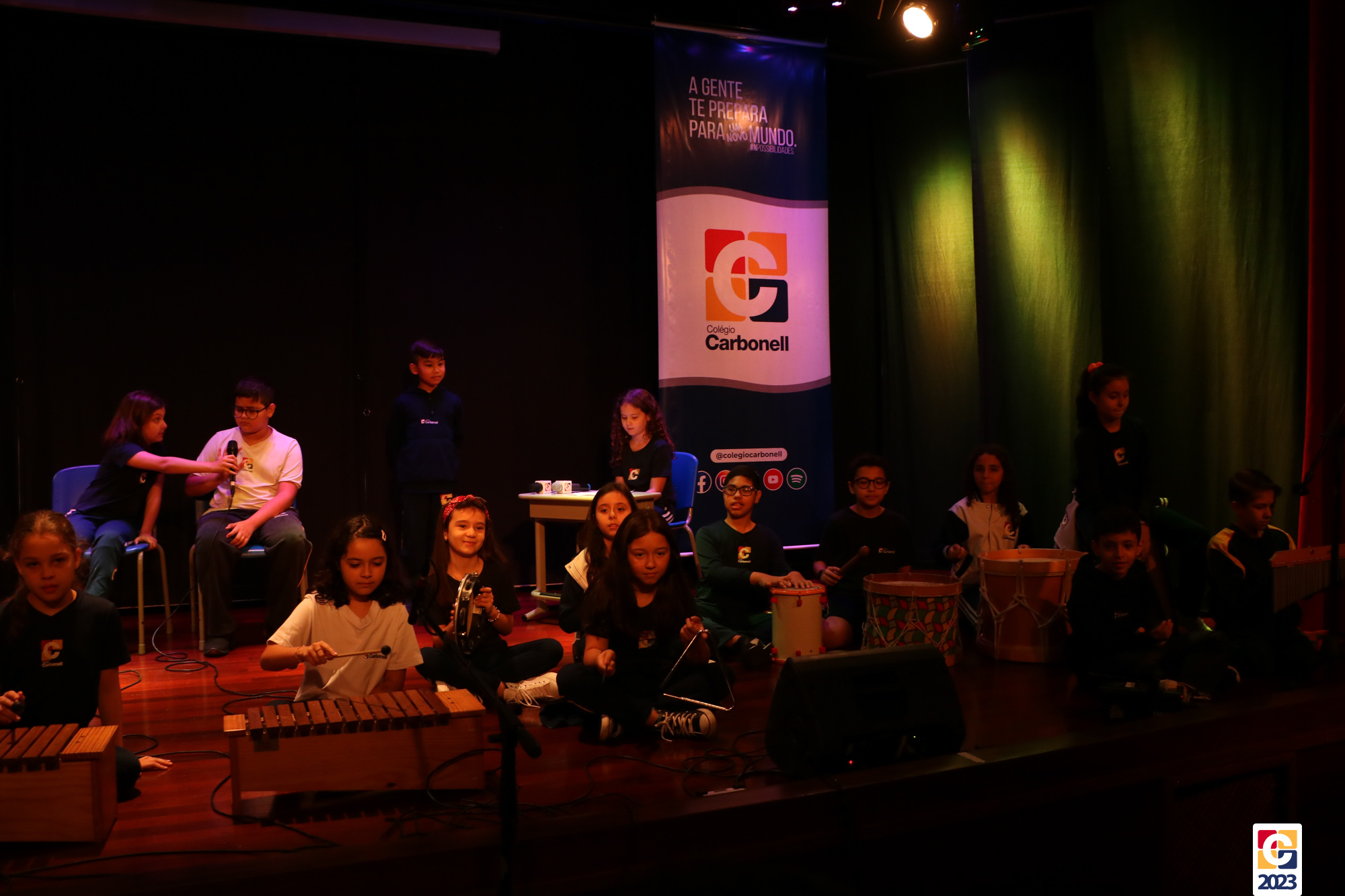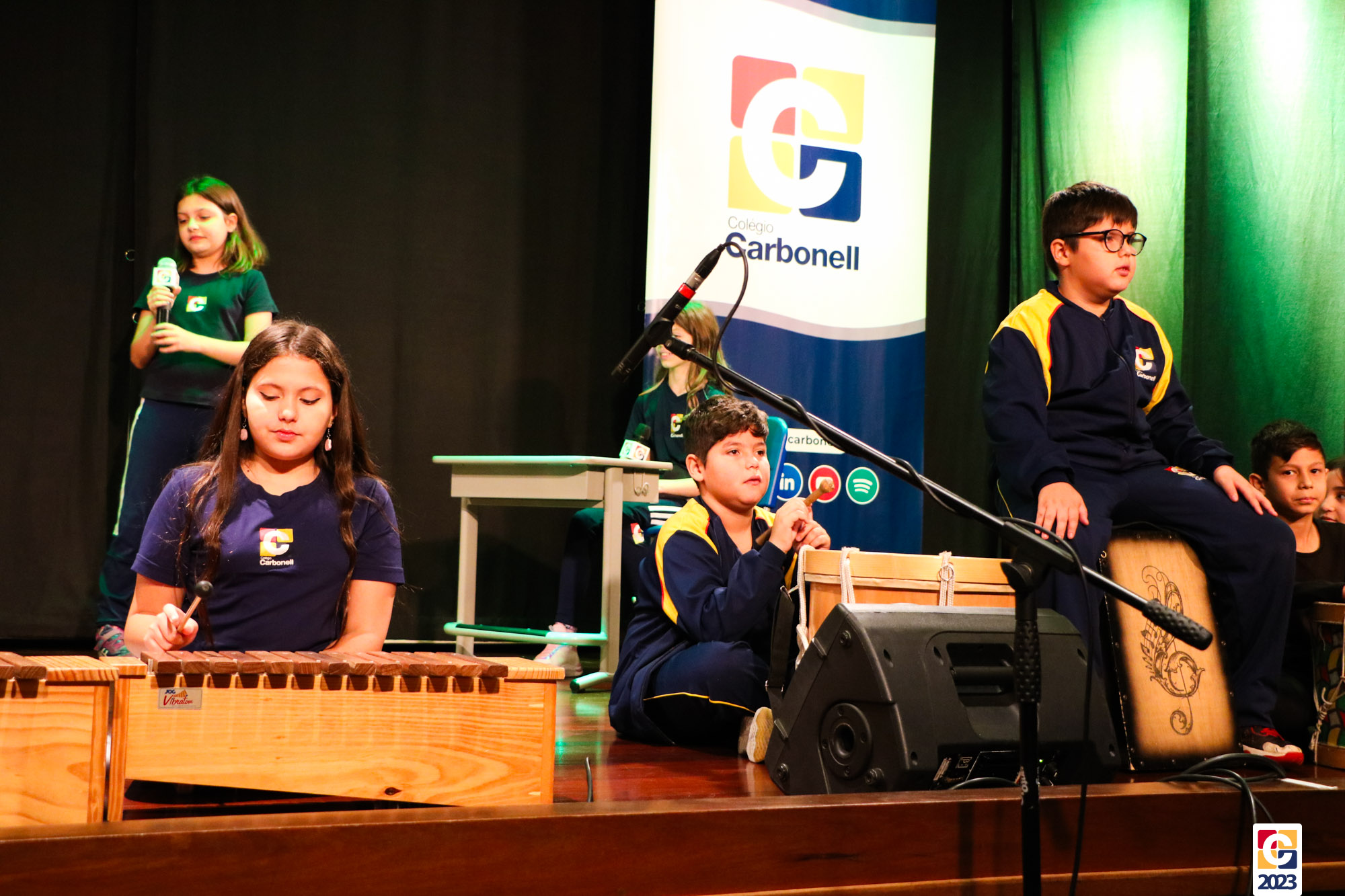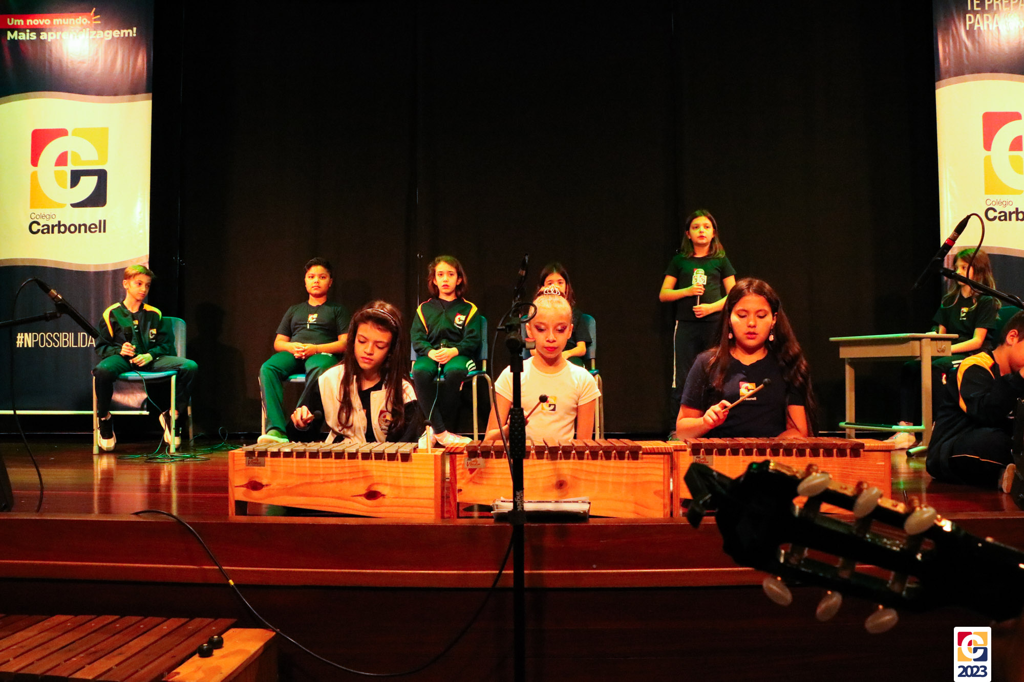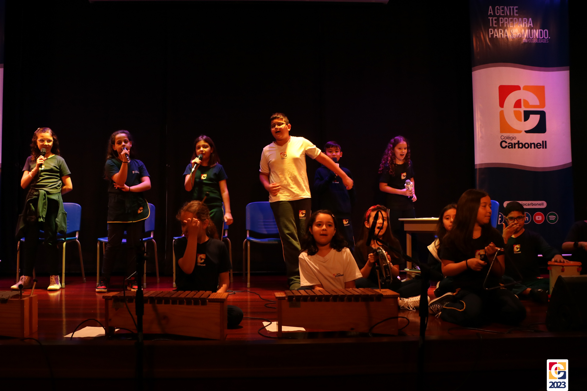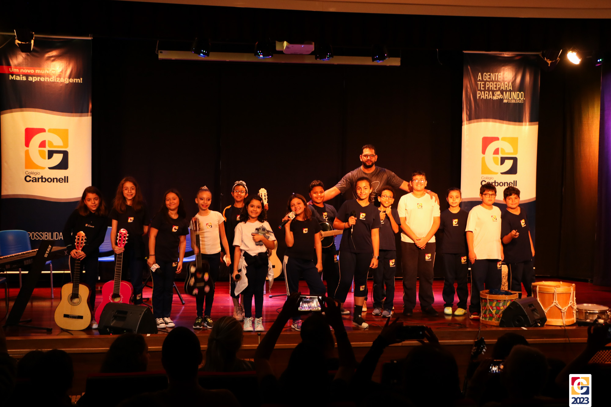 Muita dedicação e ensaios resultaram em apresentações teatrais, de música e de dança, duetos vocais e de violão, uma colorida exposição que decorou todo o colégio e até algumas sessões especiais com as famílias! Foram meses de preparo nos clubes de violão, dança, música (CarboMusic) e coral. 👩🏽‍🎤