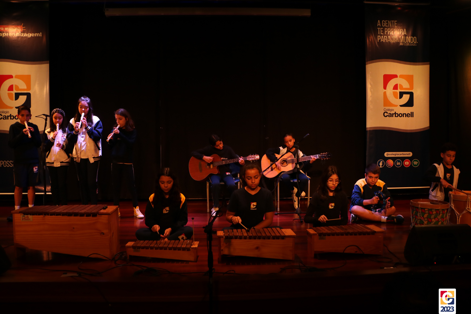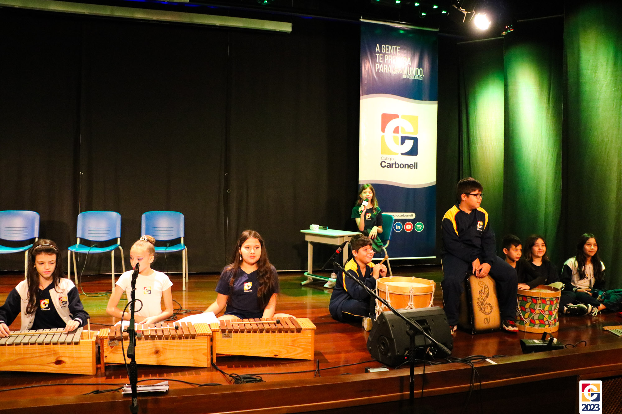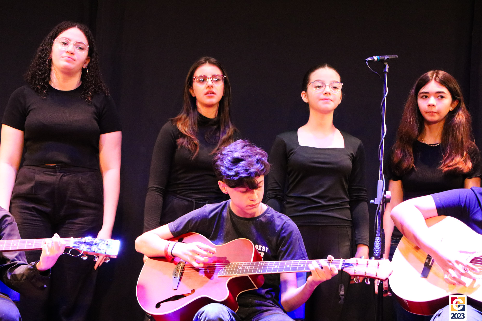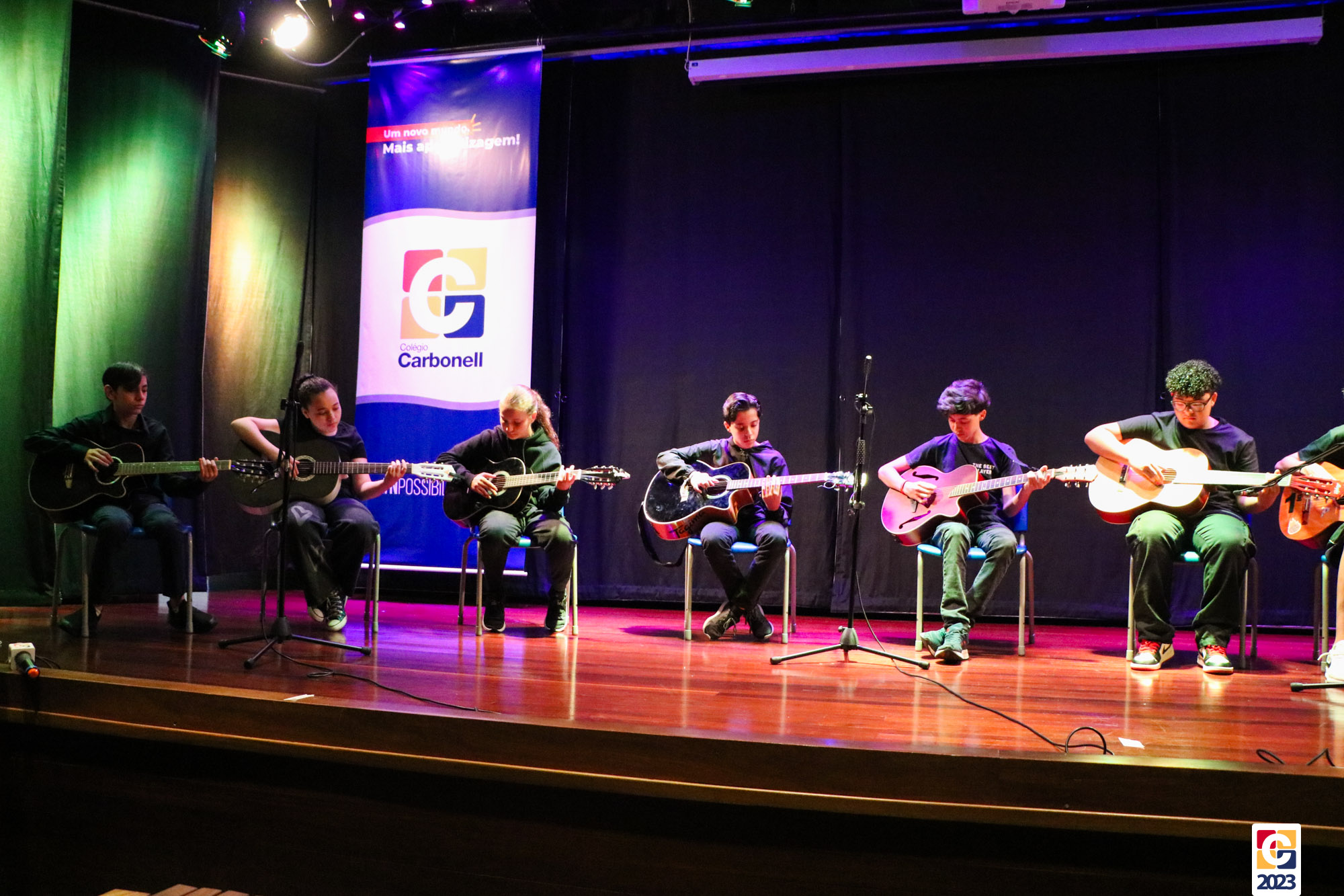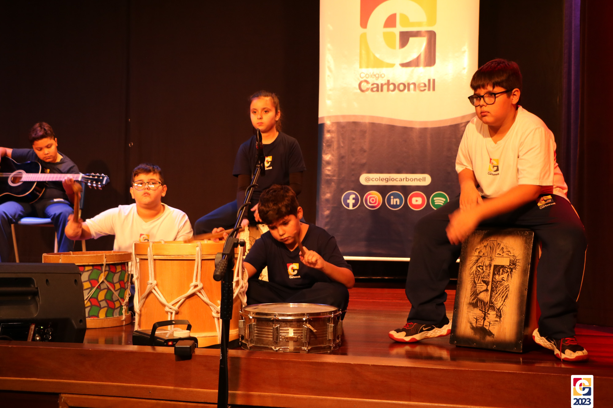 Muita dedicação e ensaios resultaram em apresentações teatrais, de música e de dança, duetos vocais e de violão, uma colorida exposição que decorou todo o colégio e até algumas sessões especiais com as famílias! Foram meses de preparo nos clubes de violão, dança, música (CarboMusic) e coral. 👩🏽‍🎤