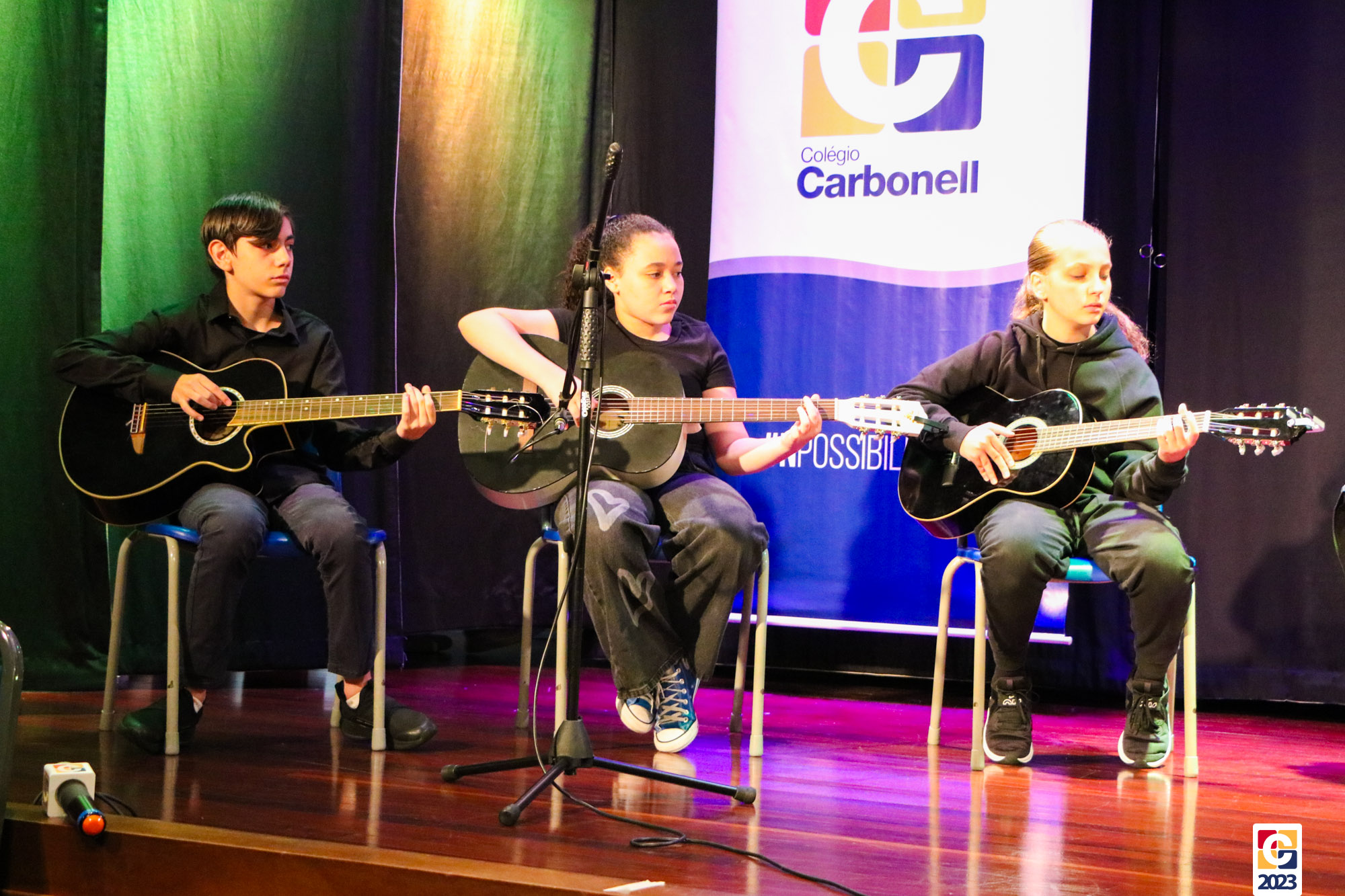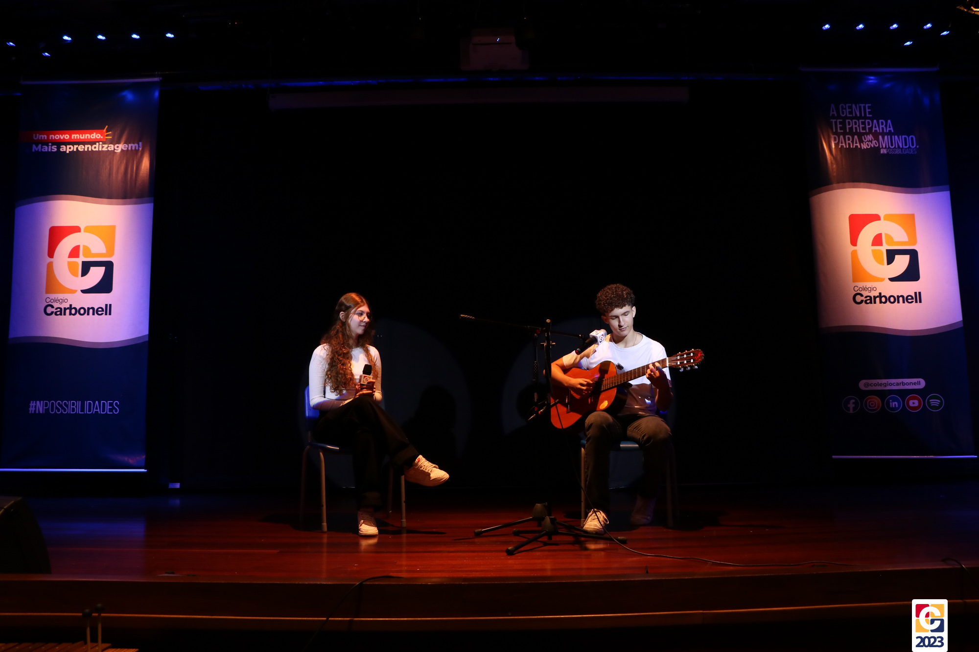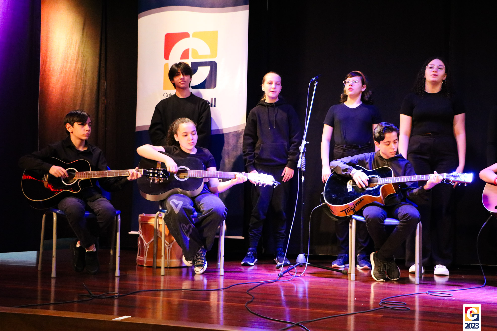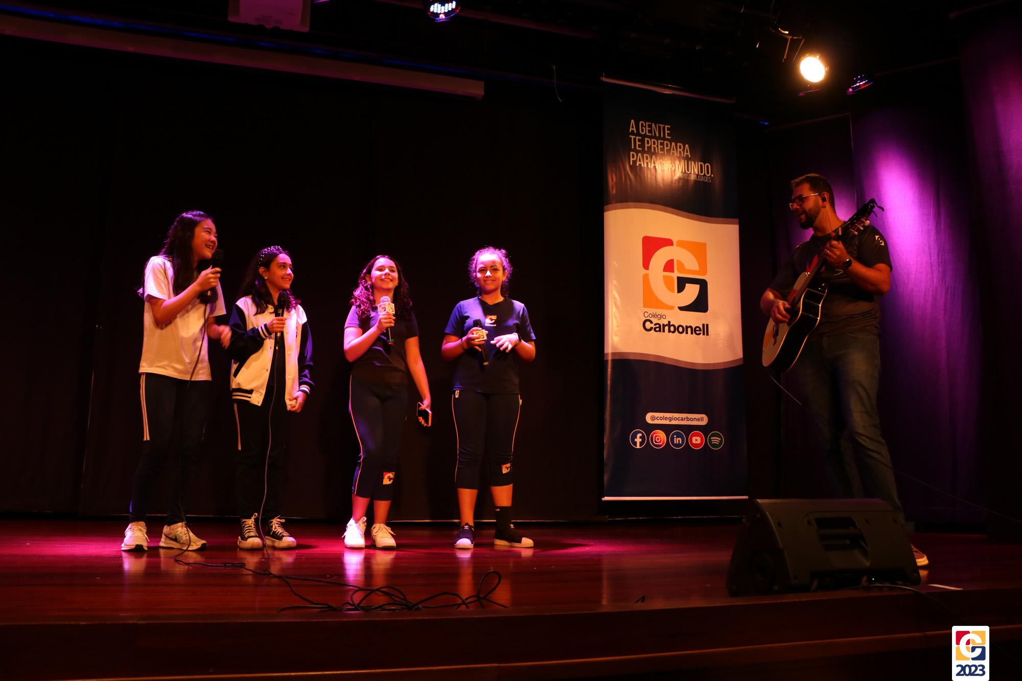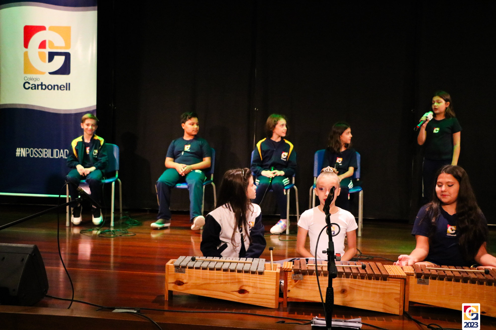 Muita dedicação e ensaios resultaram em apresentações teatrais, de música e de dança, duetos vocais e de violão, uma colorida exposição que decorou todo o colégio e até algumas sessões especiais com as famílias! Foram meses de preparo nos clubes de violão, dança, música (CarboMusic) e coral. 👩🏽‍🎤
