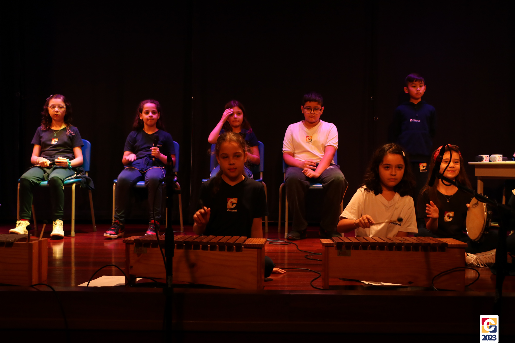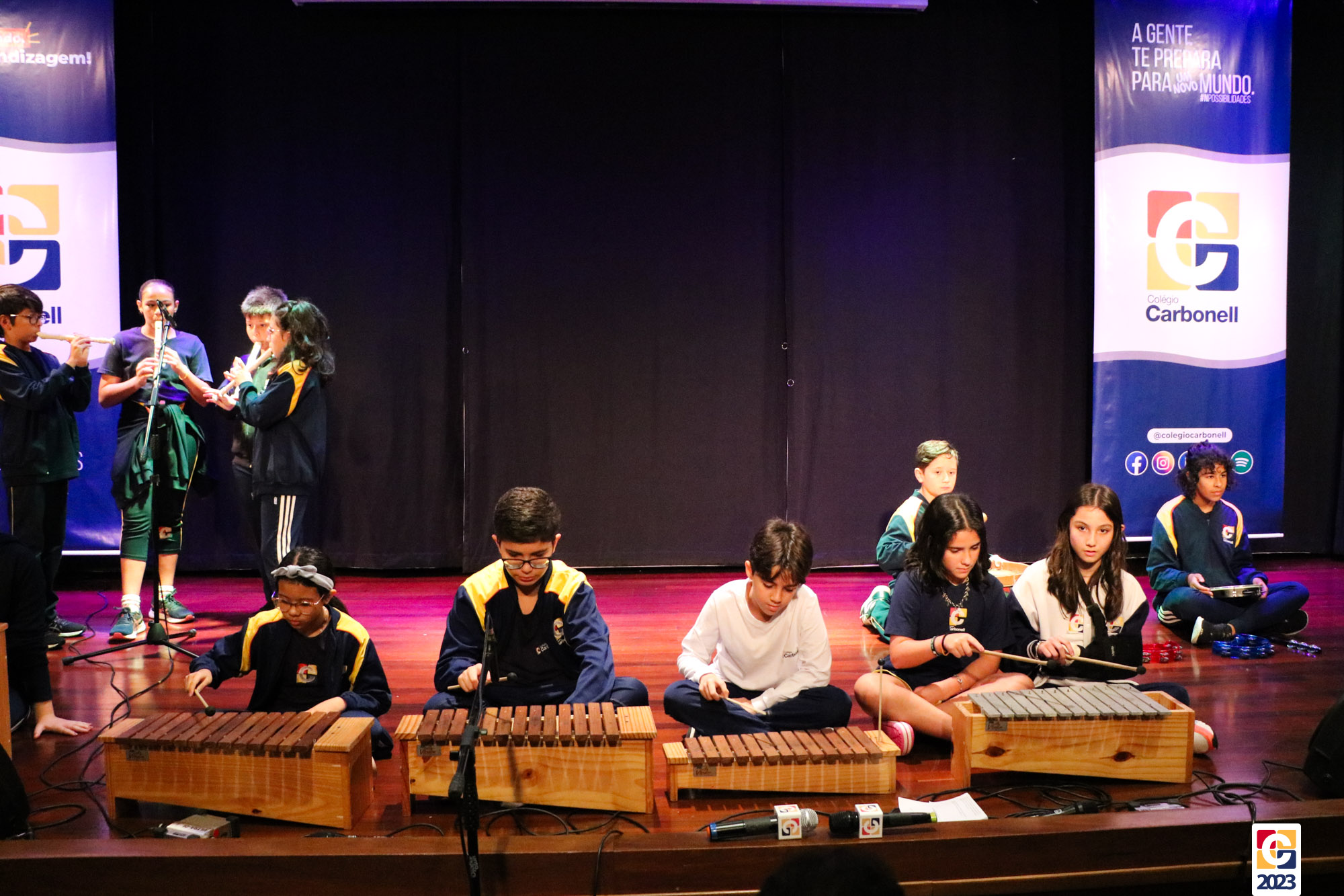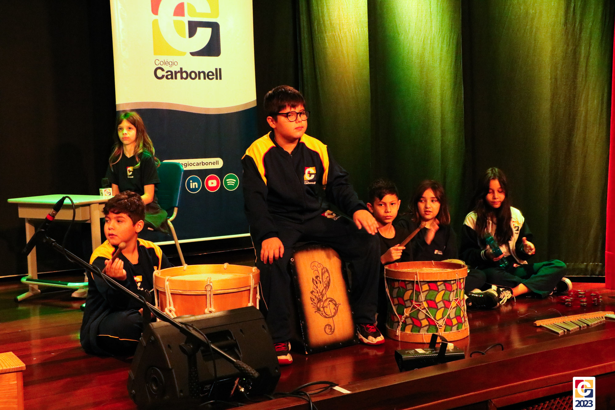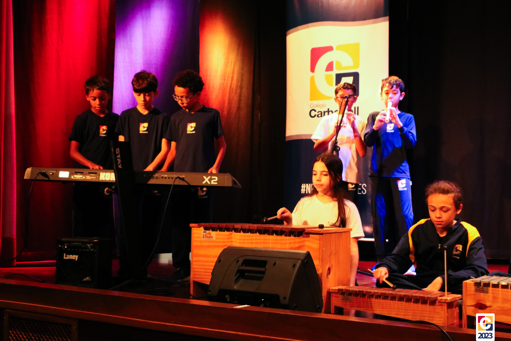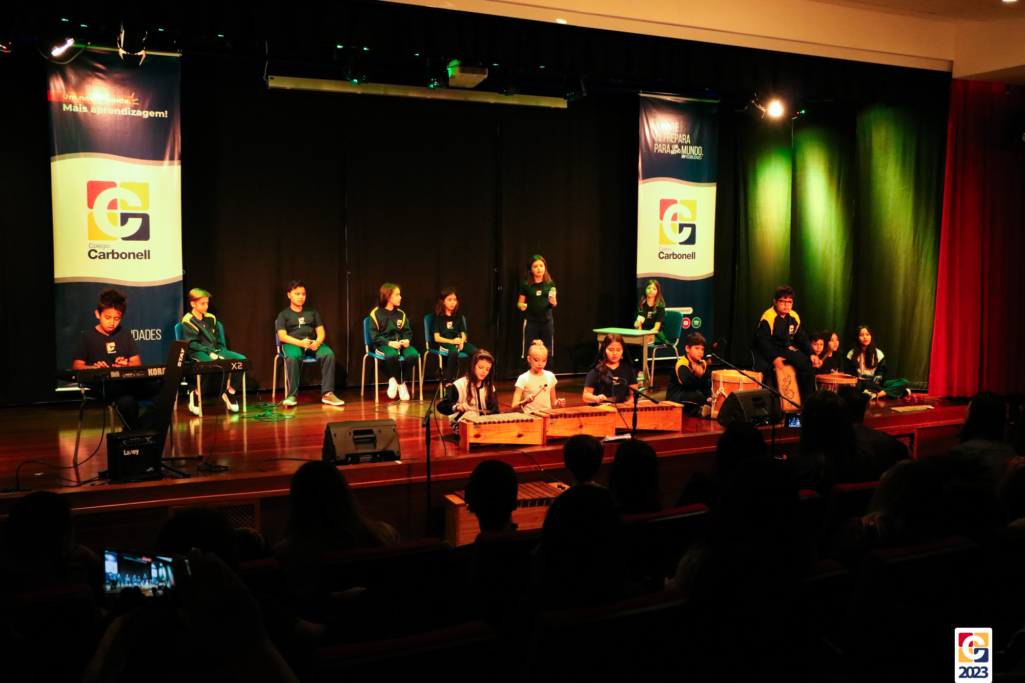 Muita dedicação e ensaios resultaram em apresentações teatrais, de música e de dança, duetos vocais e de violão, uma colorida exposição que decorou todo o colégio e até algumas sessões especiais com as famílias! Foram meses de preparo nos clubes de violão, dança, música (CarboMusic) e coral. 👩🏽‍🎤