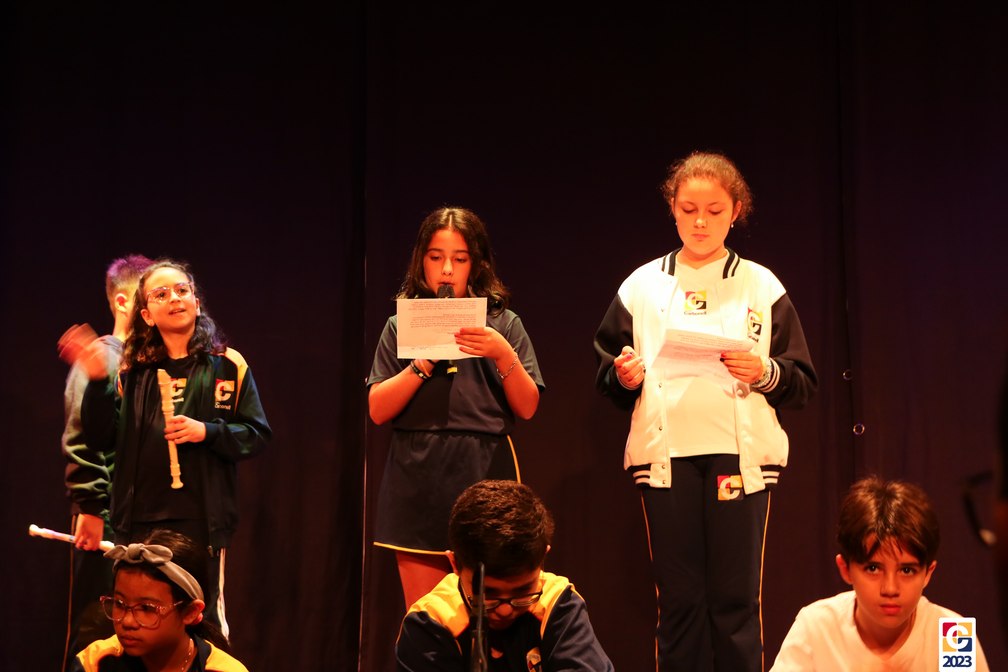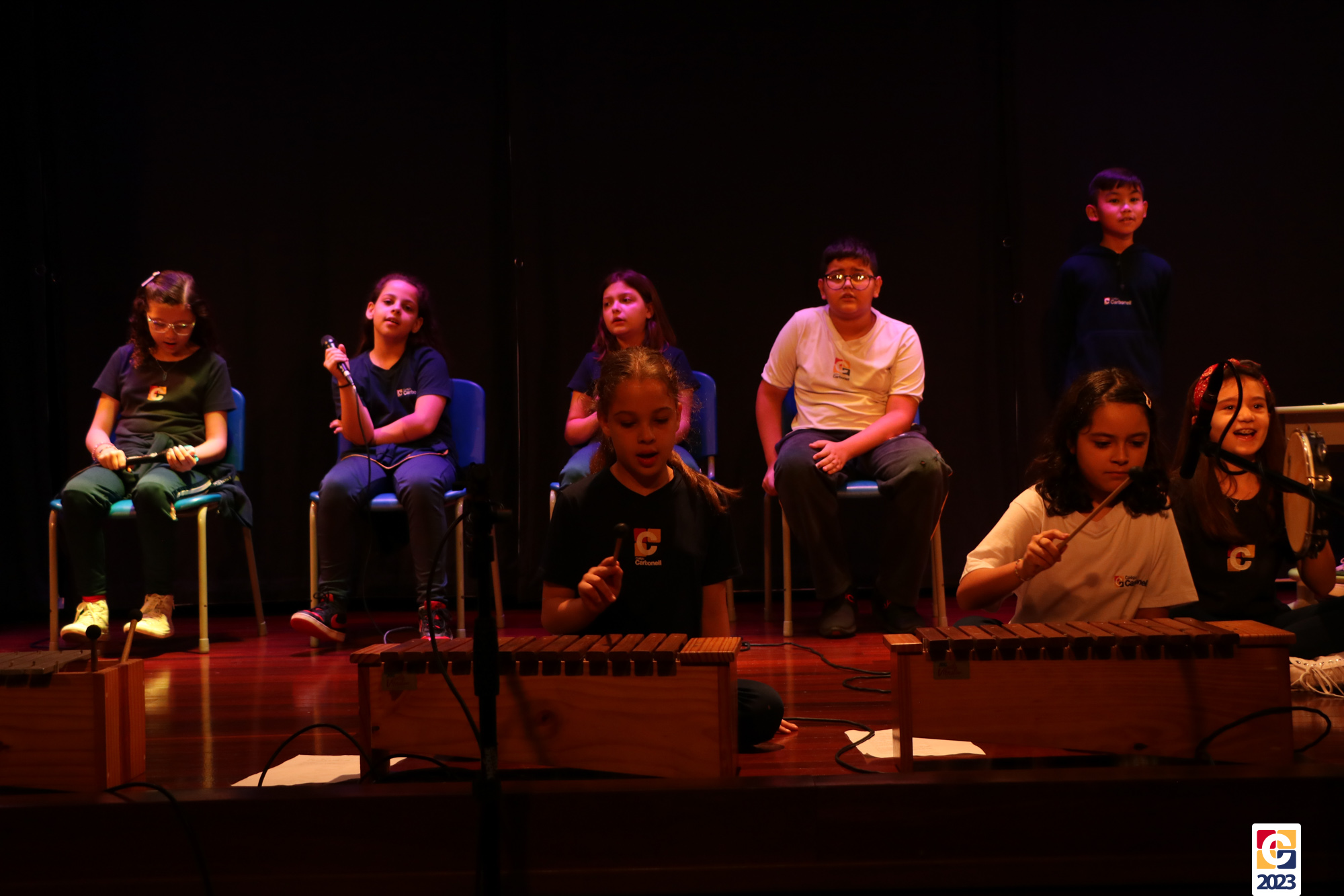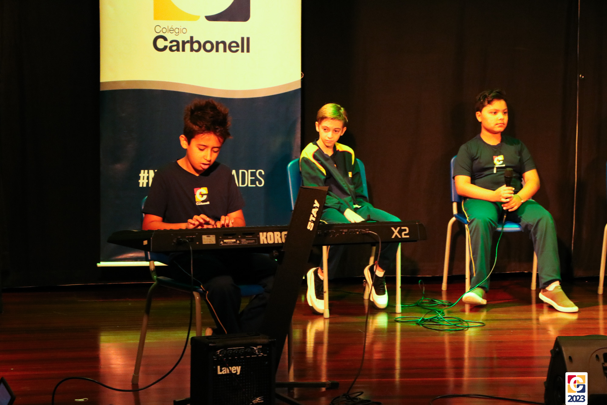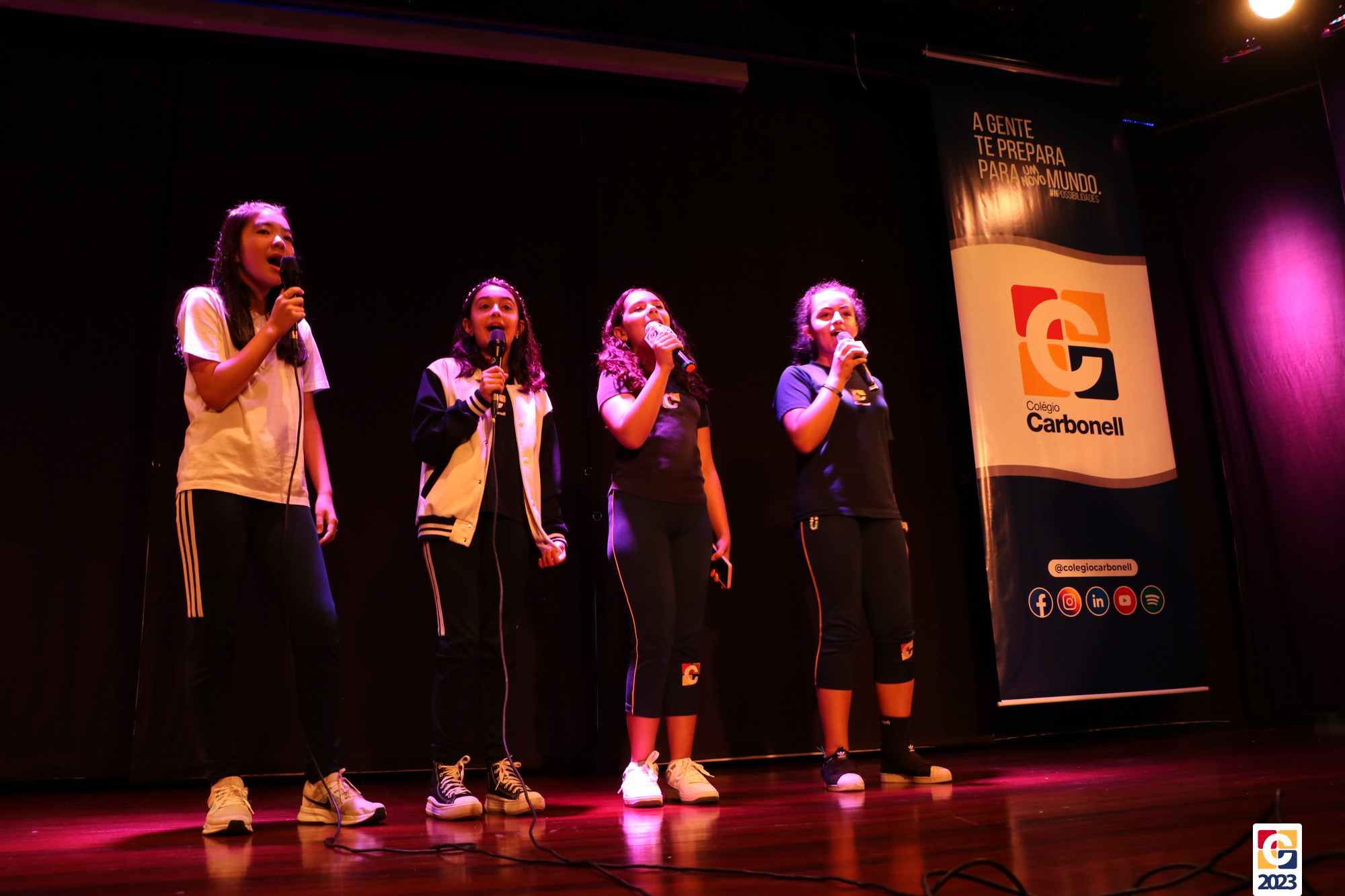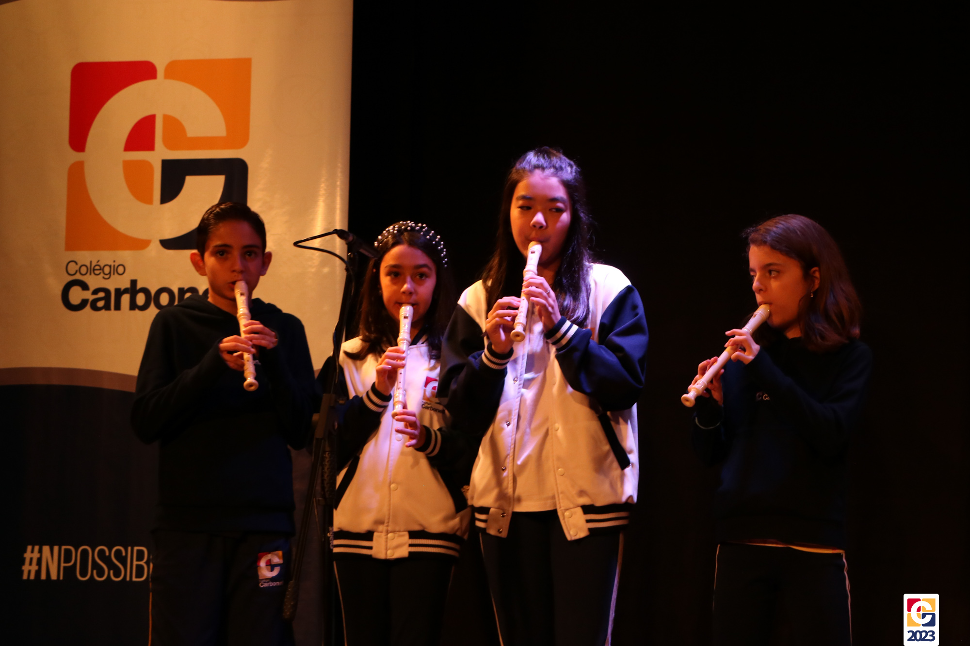 Muita dedicação e ensaios resultaram em apresentações teatrais, de música e de dança, duetos vocais e de violão, uma colorida exposição que decorou todo o colégio e até algumas sessões especiais com as famílias! Foram meses de preparo nos clubes de violão, dança, música (CarboMusic) e coral. 👩🏽‍🎤