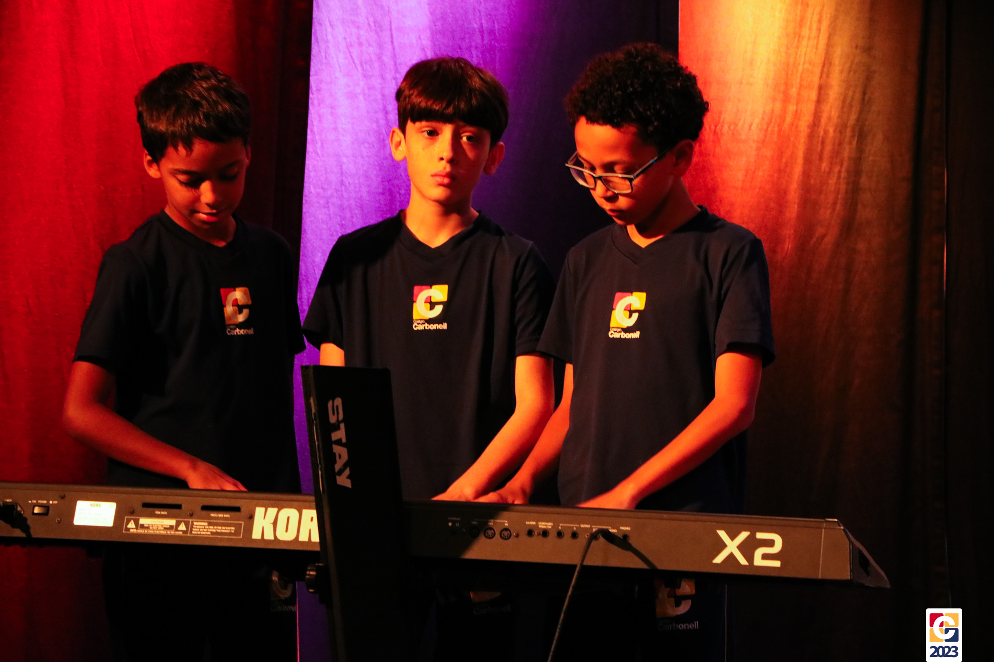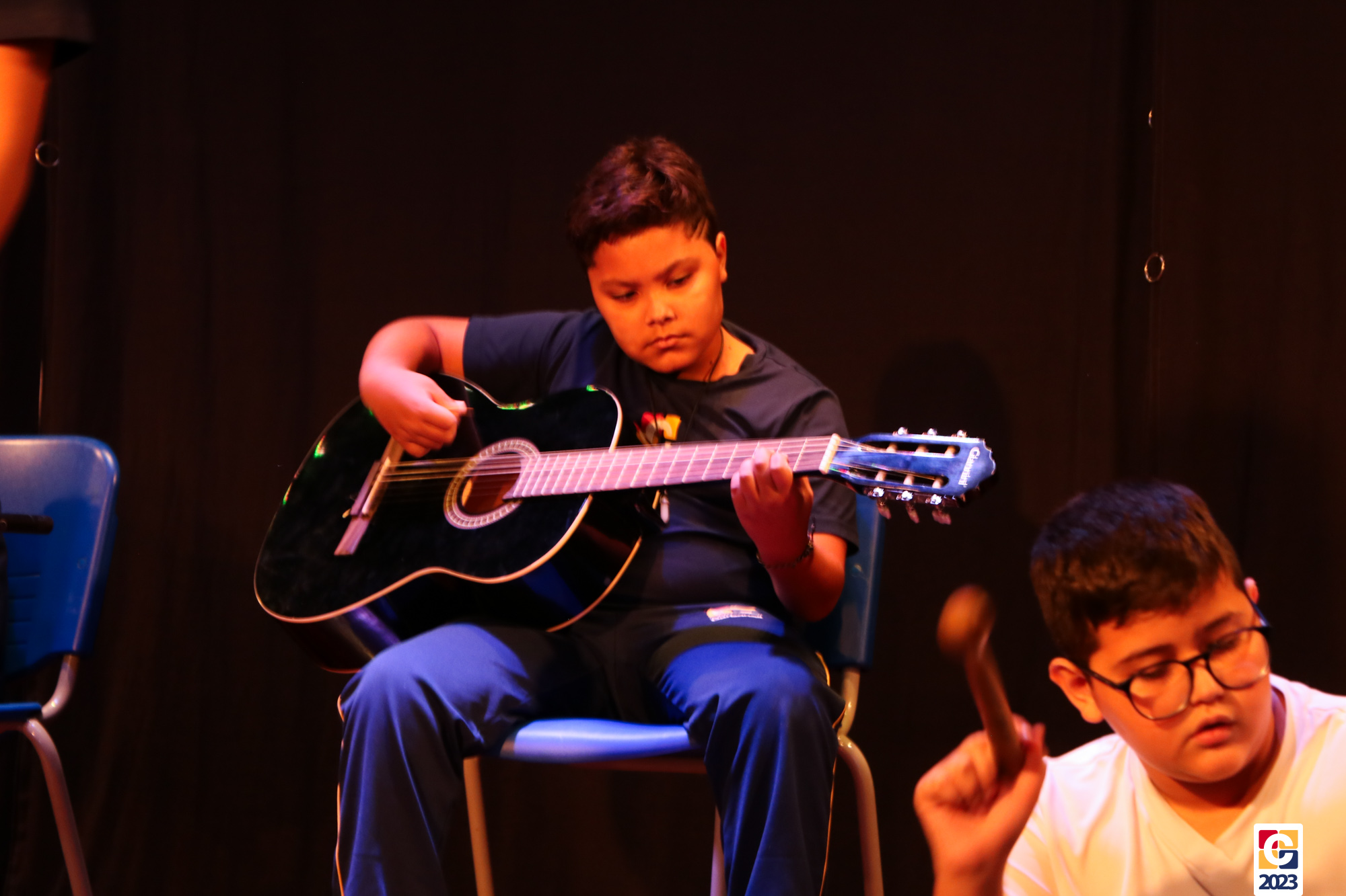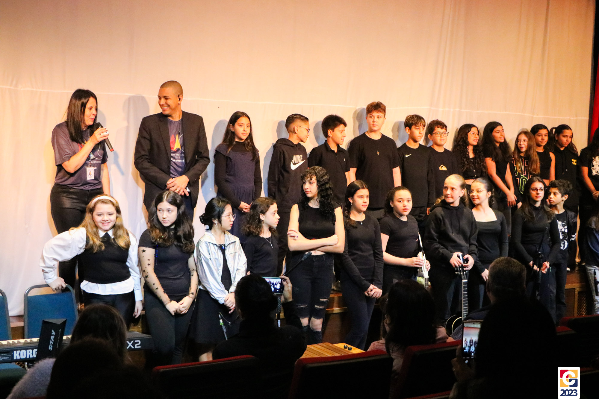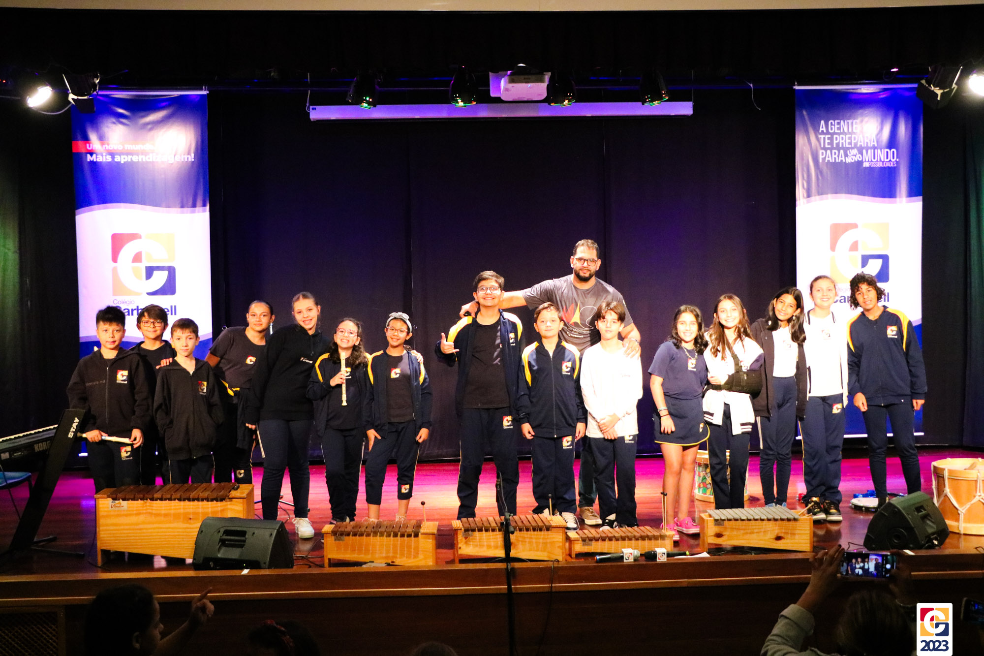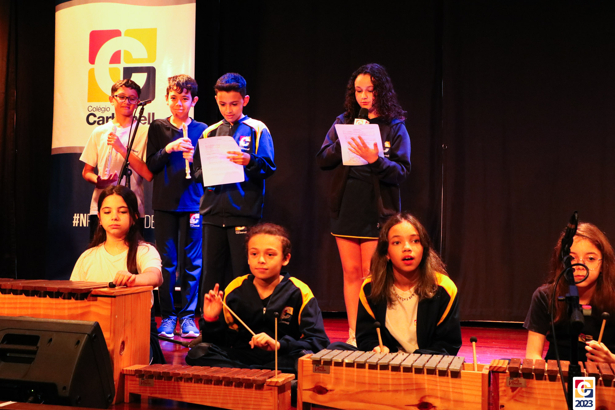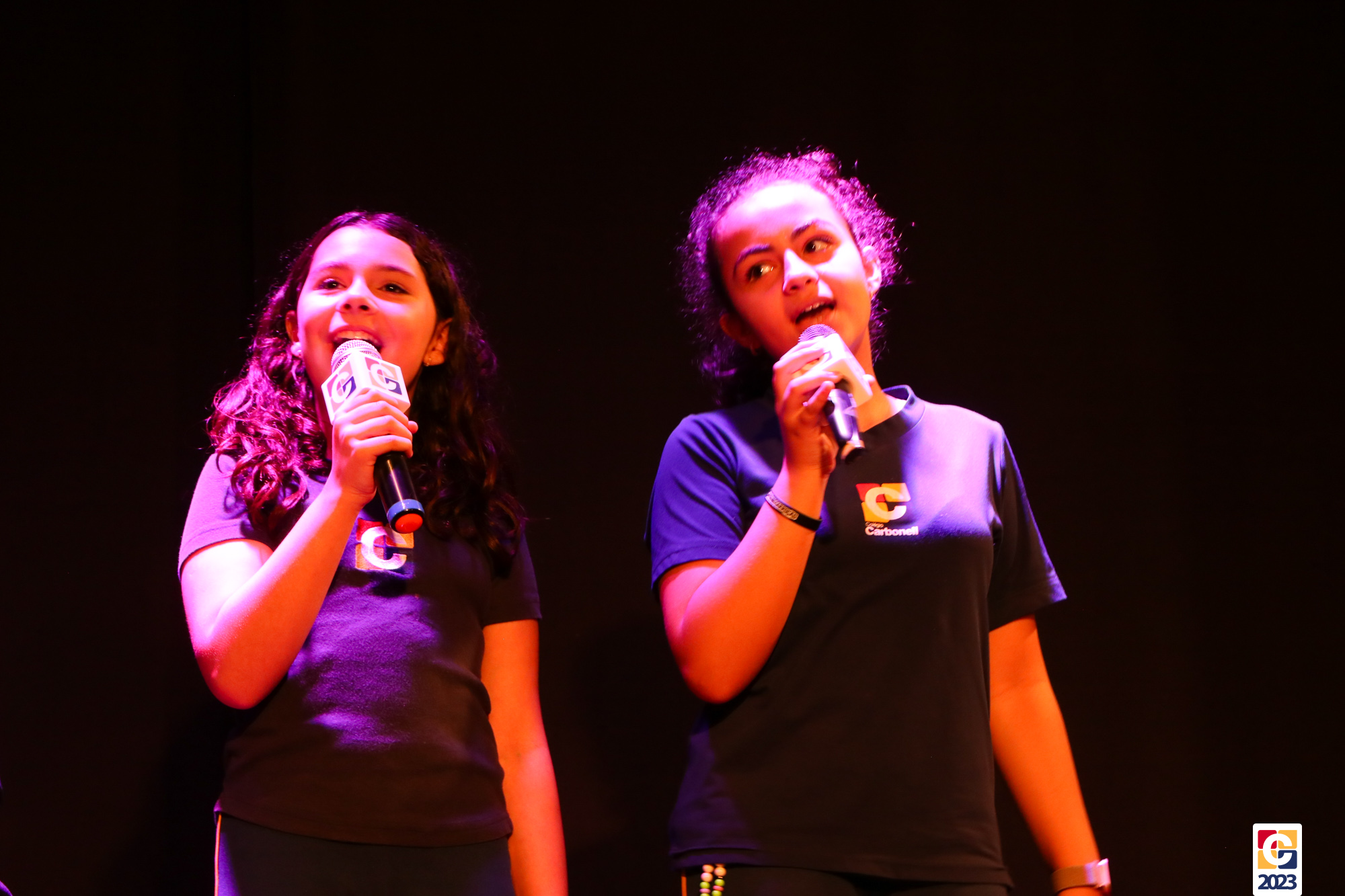 Muita dedicação e ensaios resultaram em apresentações teatrais, de música e de dança, duetos vocais e de violão, uma colorida exposição que decorou todo o colégio e até algumas sessões especiais com as famílias! Foram meses de preparo nos clubes de violão, dança, música (CarboMusic) e coral. 👩🏽‍🎤