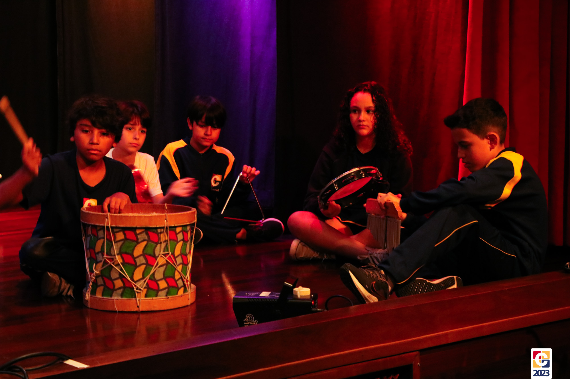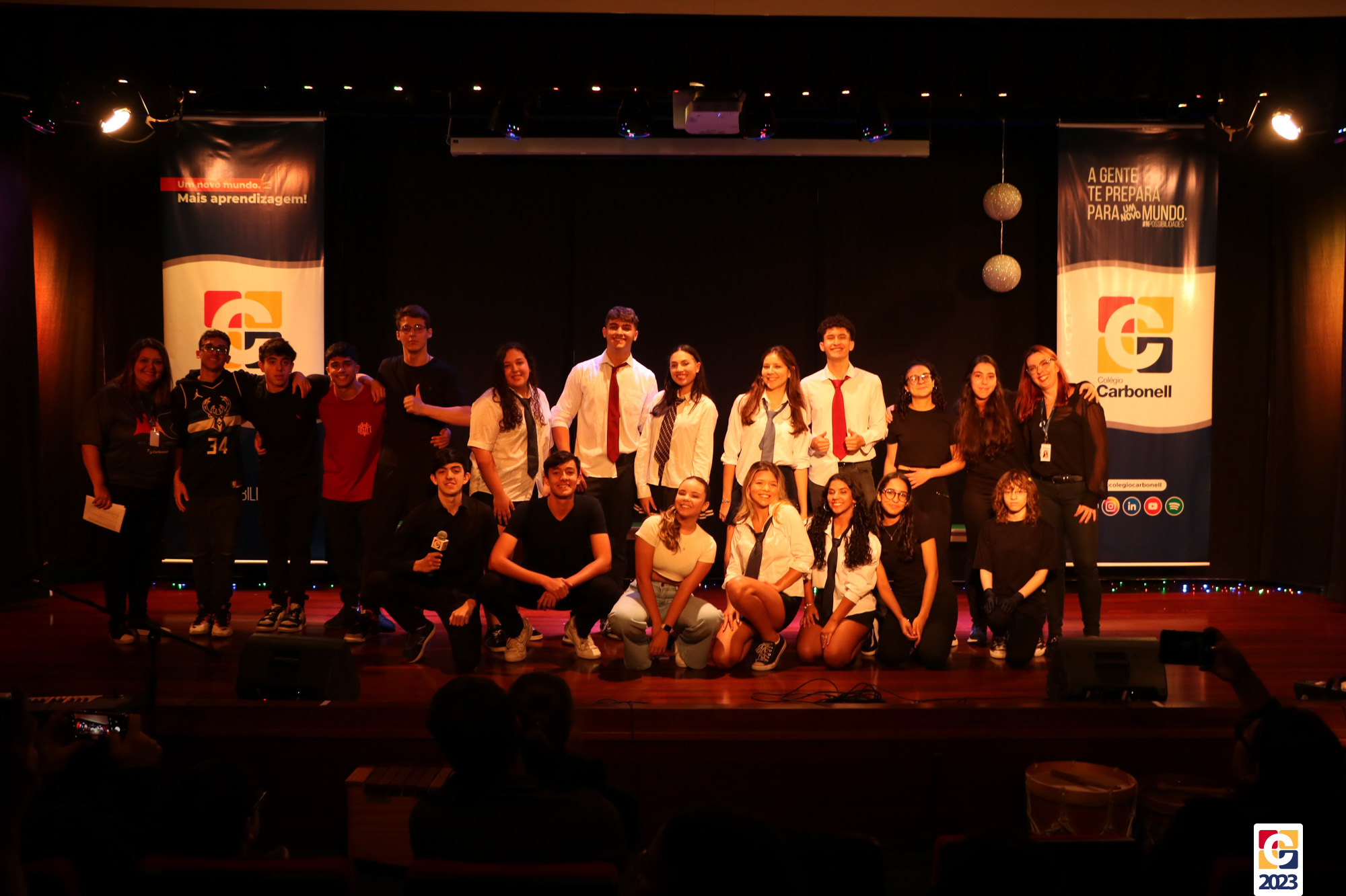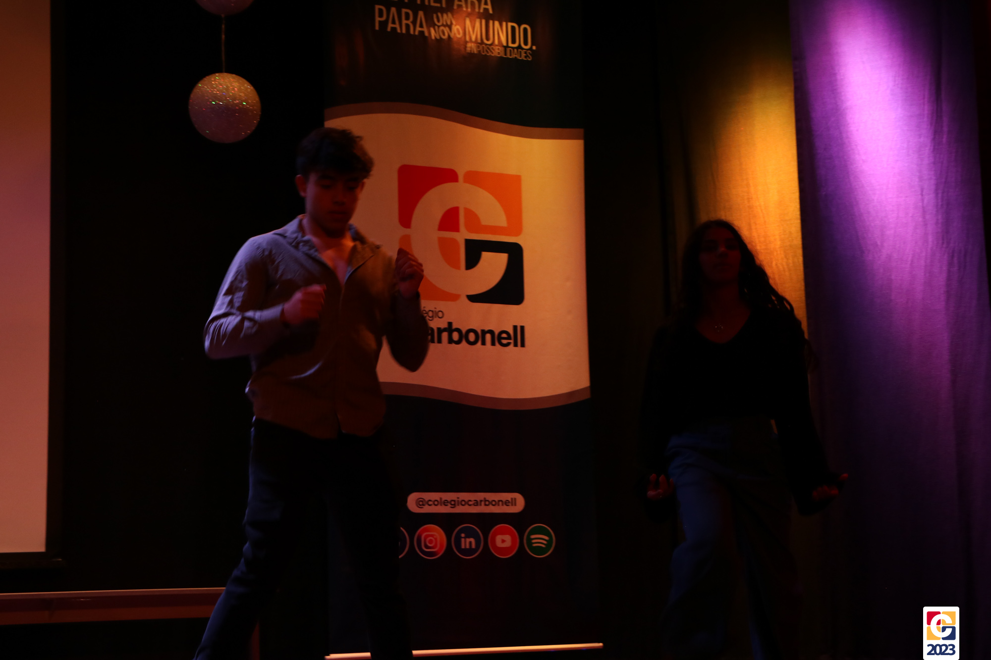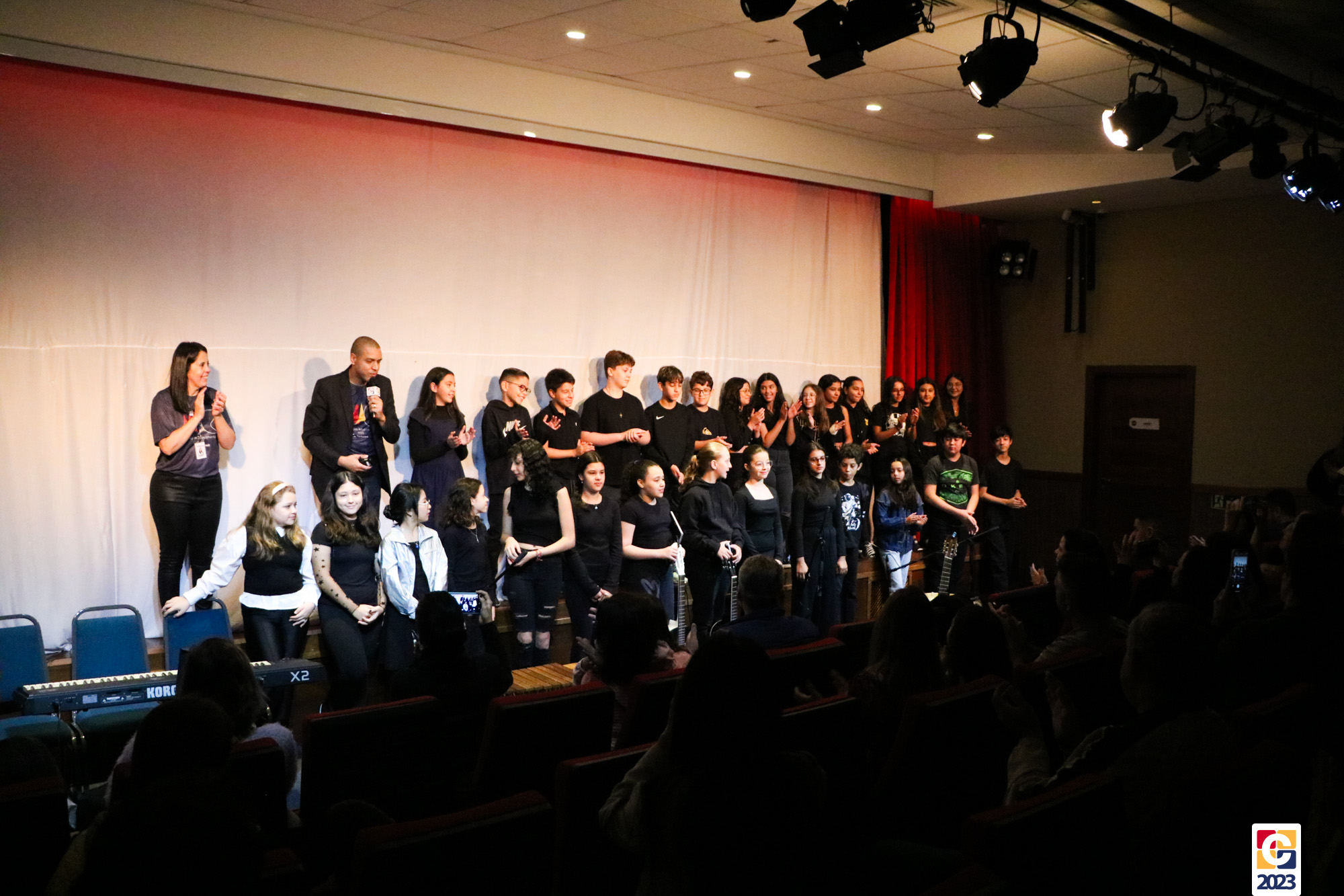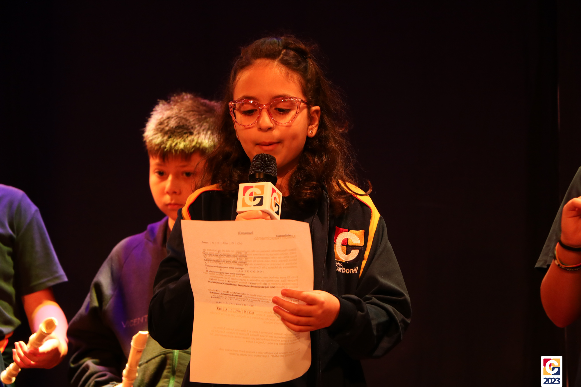 Muita dedicação e ensaios resultaram em apresentações teatrais, de música e de dança, duetos vocais e de violão, uma colorida exposição que decorou todo o colégio e até algumas sessões especiais com as famílias! Foram meses de preparo nos clubes de violão, dança, música (CarboMusic) e coral. 👩🏽‍🎤