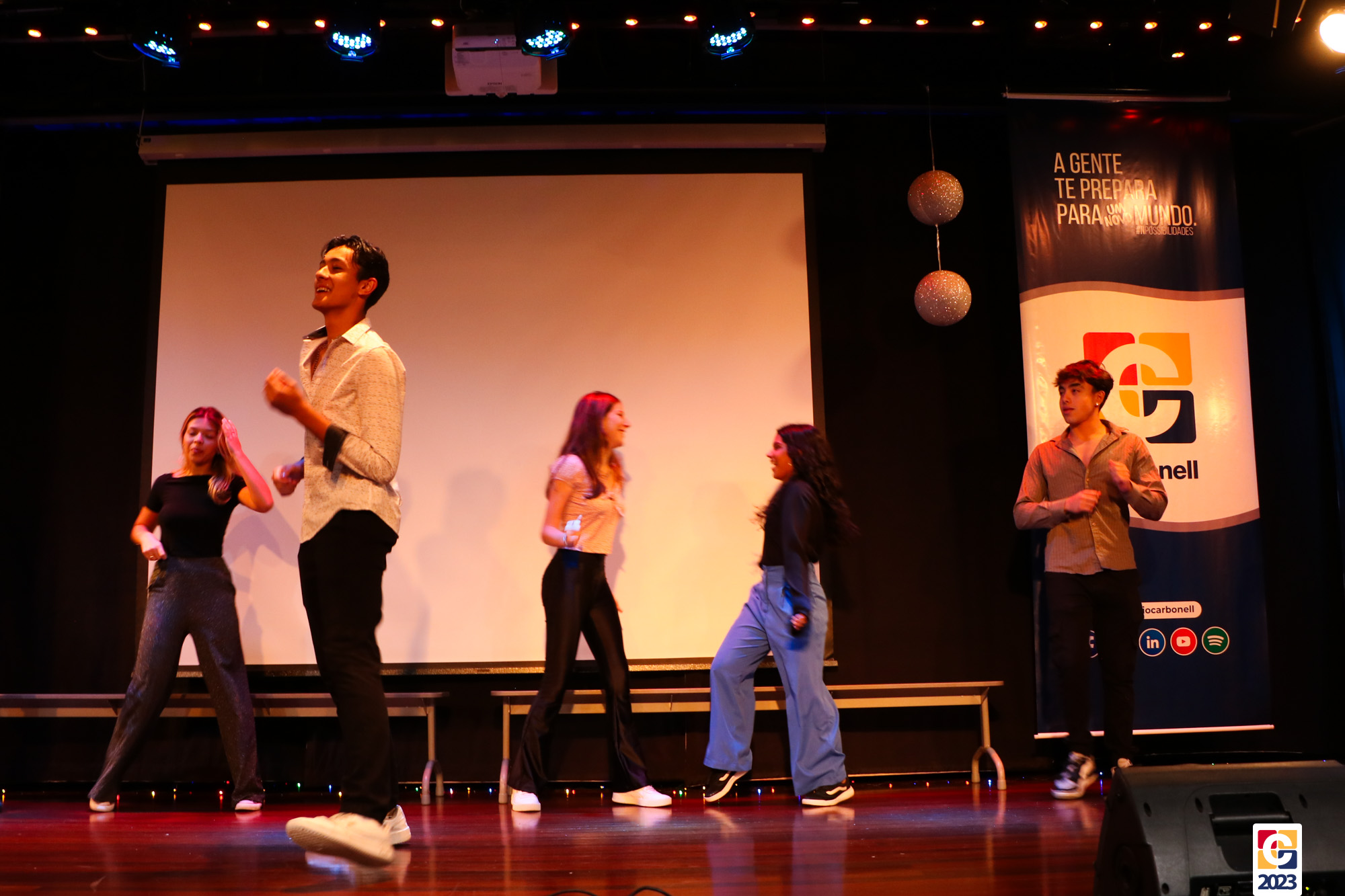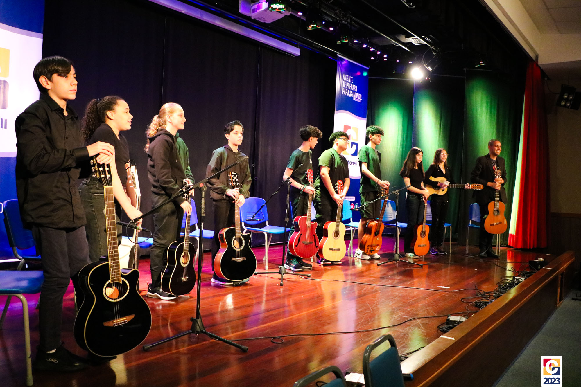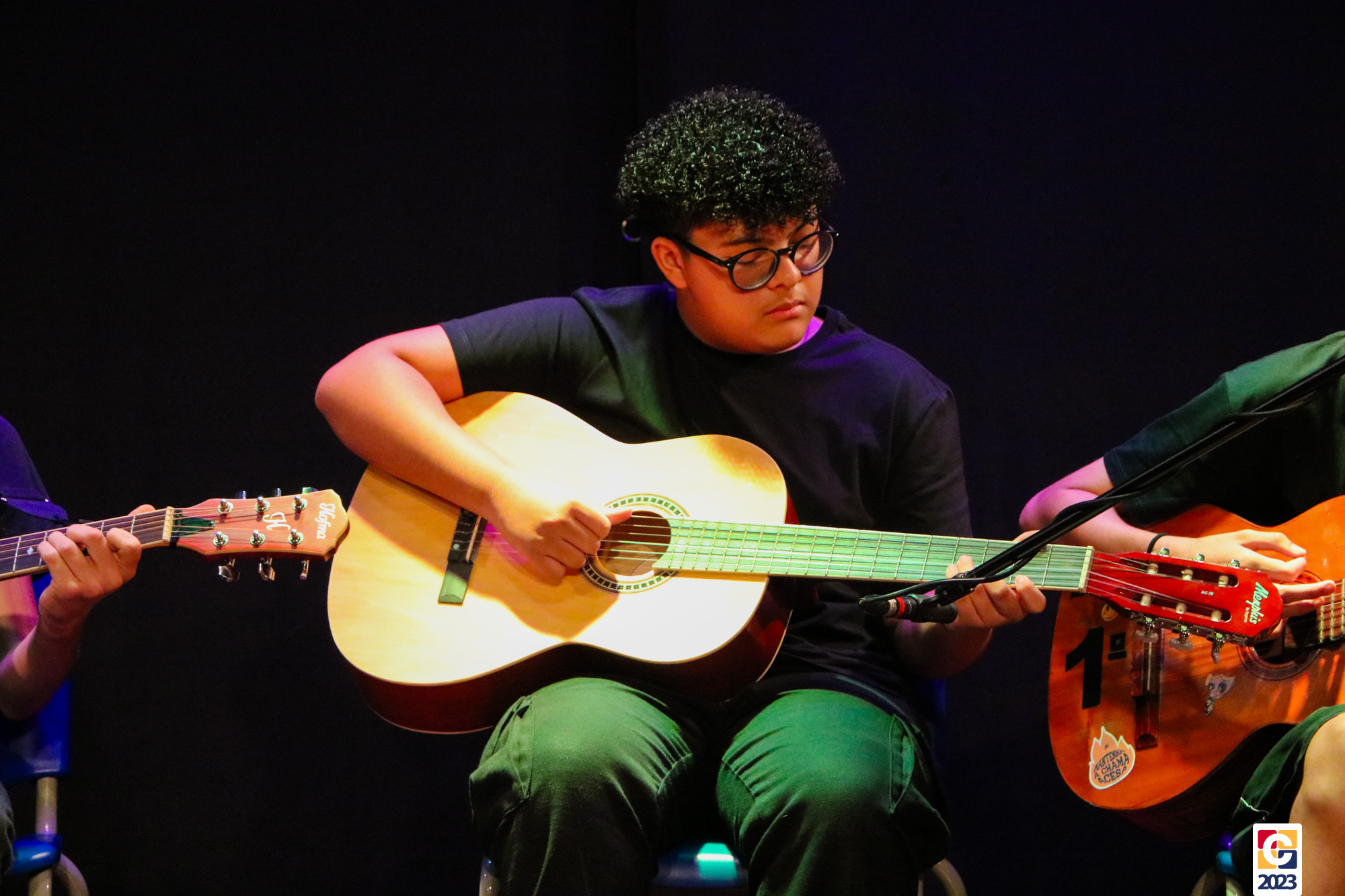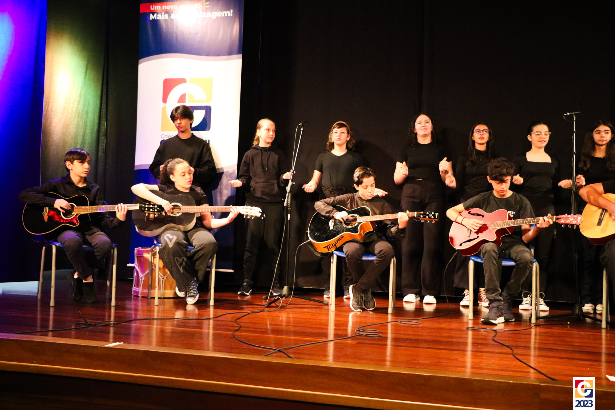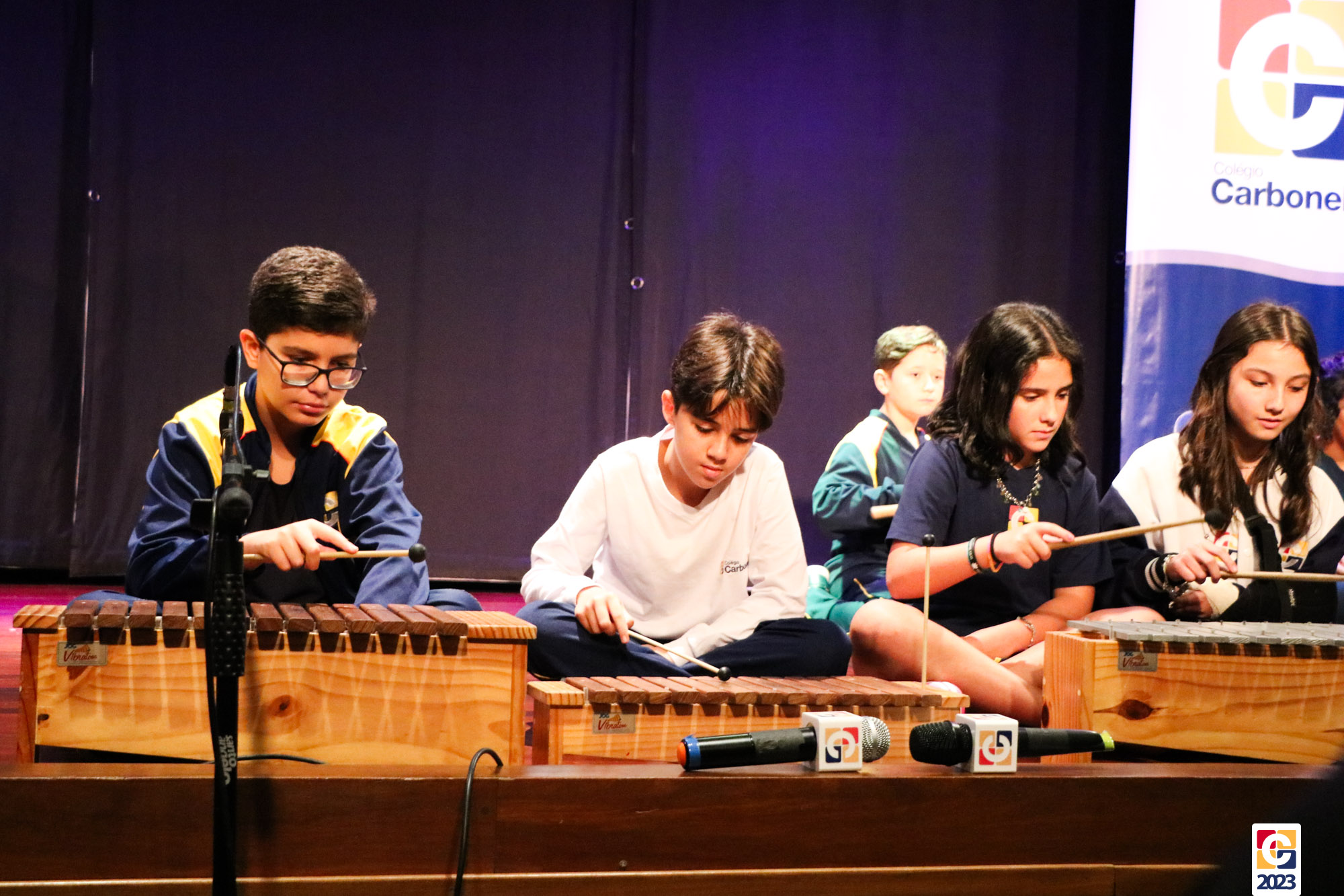 Muita dedicação e ensaios resultaram em apresentações teatrais, de música e de dança, duetos vocais e de violão, uma colorida exposição que decorou todo o colégio e até algumas sessões especiais com as famílias! Foram meses de preparo nos clubes de violão, dança, música (CarboMusic) e coral. 👩🏽‍🎤