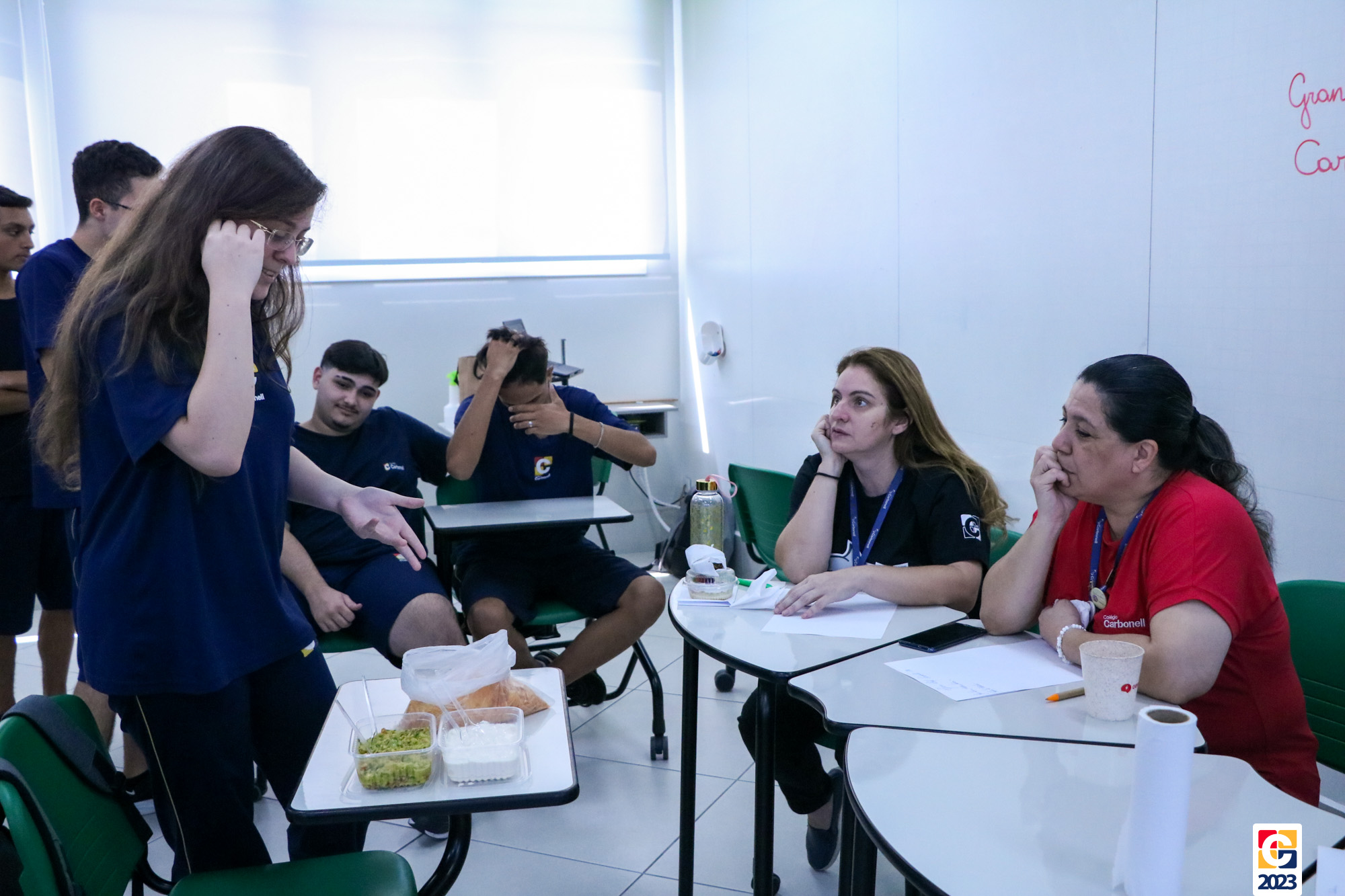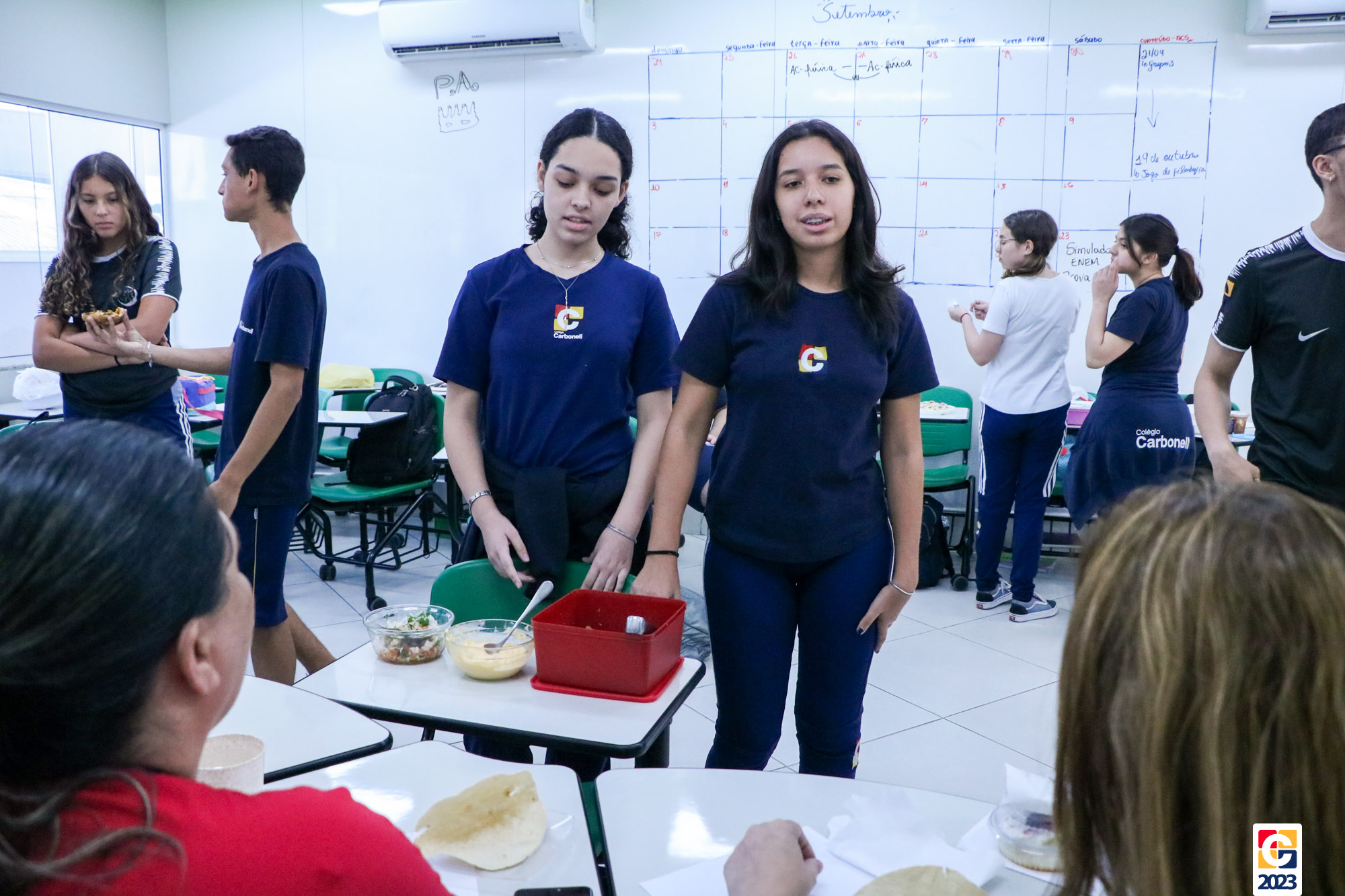 Numa atividade dinâmica realizada na aula de espanhol, estudantes do 1º ano do Ensino Médio se dividiram em grupos e apresentaram receitas típicas de países latinos. No júri, em vez dos renomados chefs de cozinha da TV, uma bancada de jurados composta por colaboradores da Carbonell. 🍳
