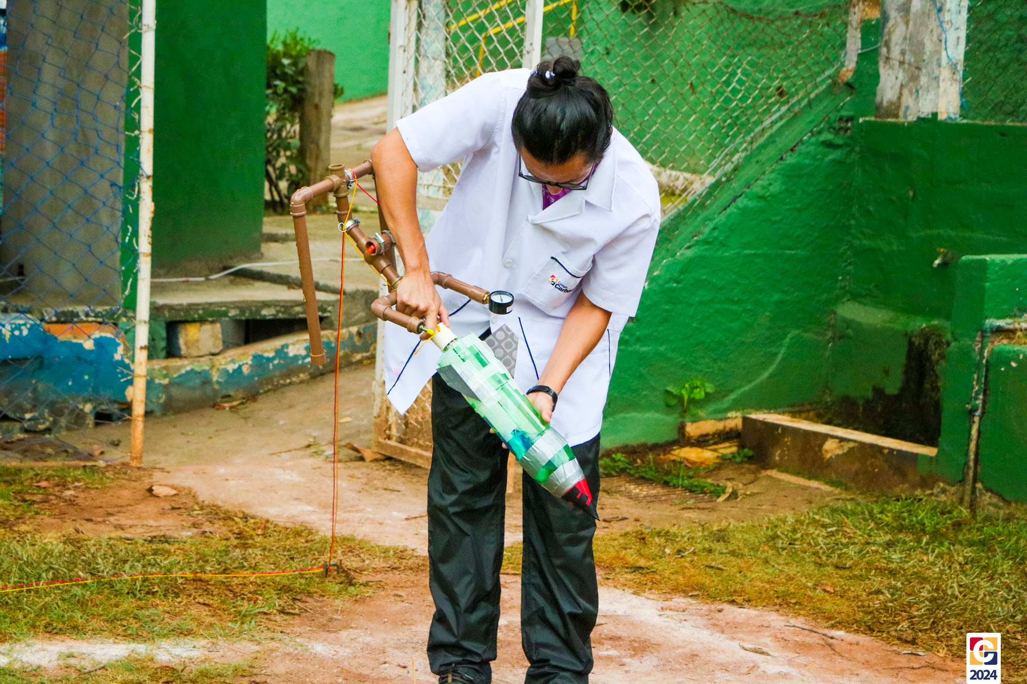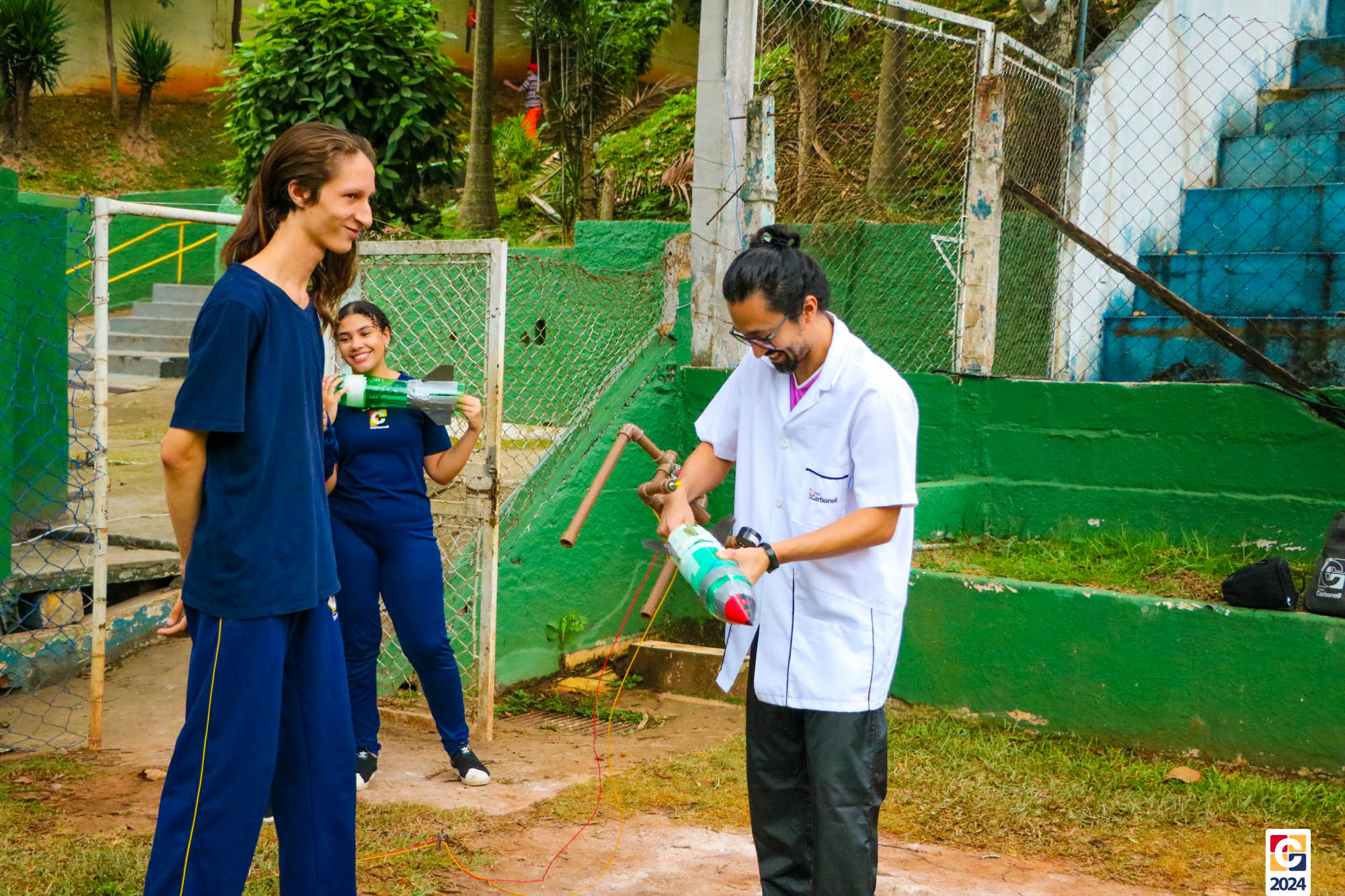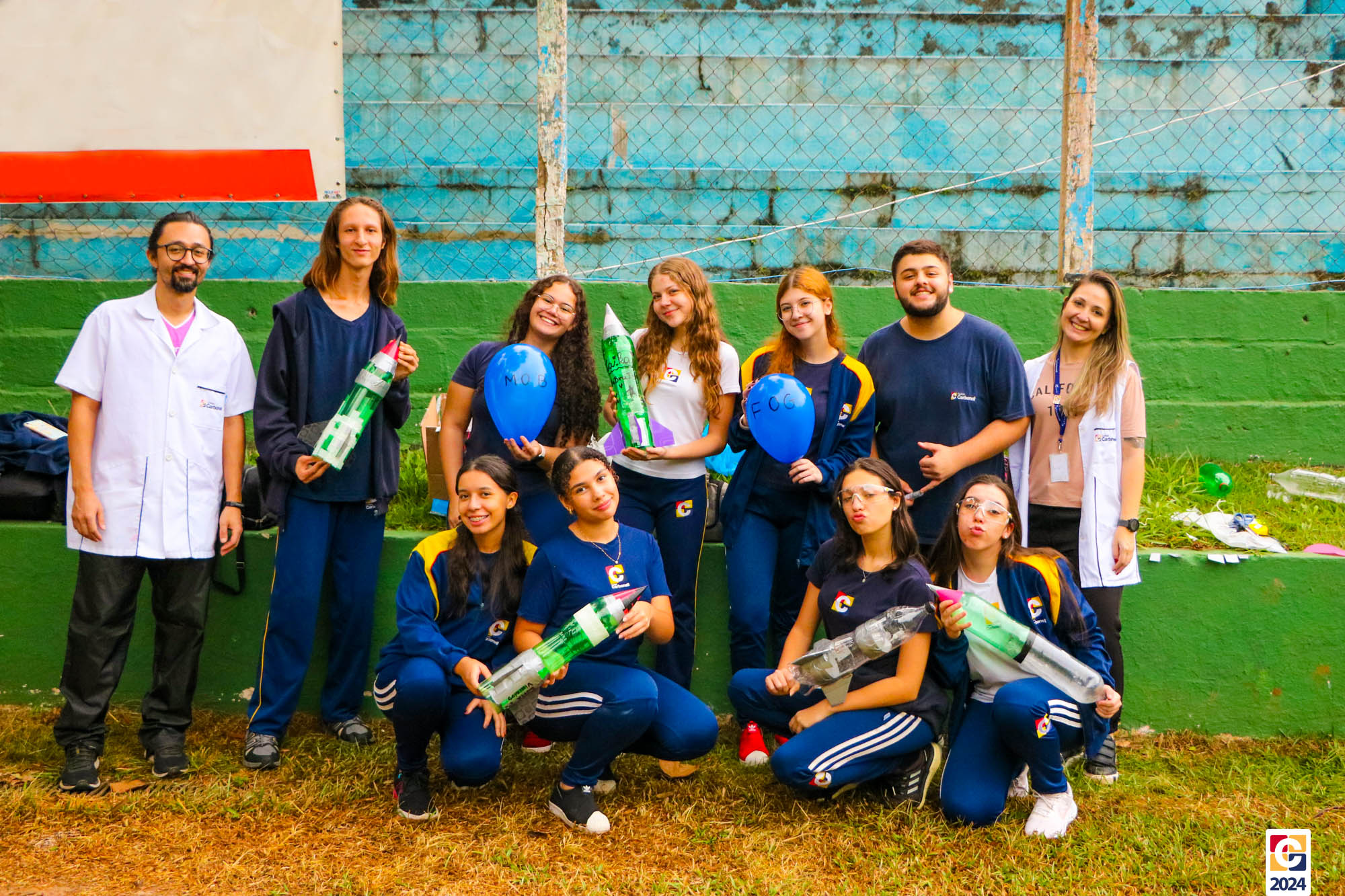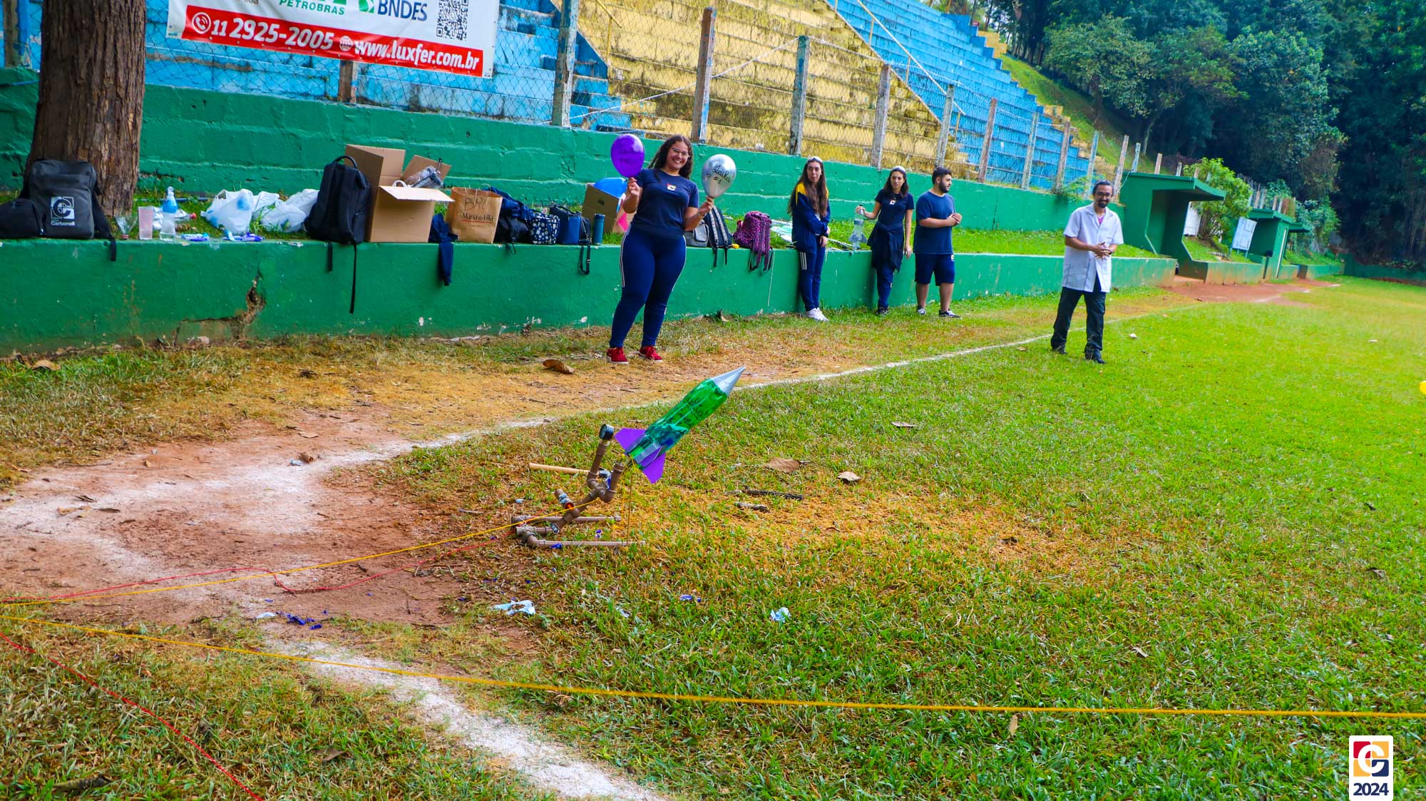 Jovens do nosso Ensino Médio estão construindo foguetes de nível 4 para participar da Mostra Brasileira de Foguetes (MOBFOG). Construídos pelos estudantes com a orientação dos professores Daniele Lopez e Ricardo Yaguti, os artefatos astronômicos são compostos por garrafas PET, que ficam presas numa base de lançamento fixada no chão e têm como combustível a mistura, em qualquer proporção, de vinagre com uma concentração de 4% de ácido acético e bicarbonato de sódio. 👨🔬