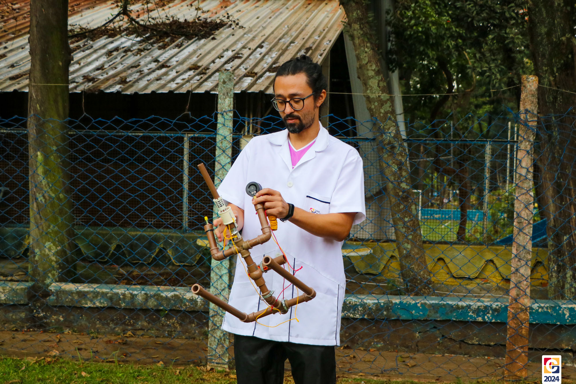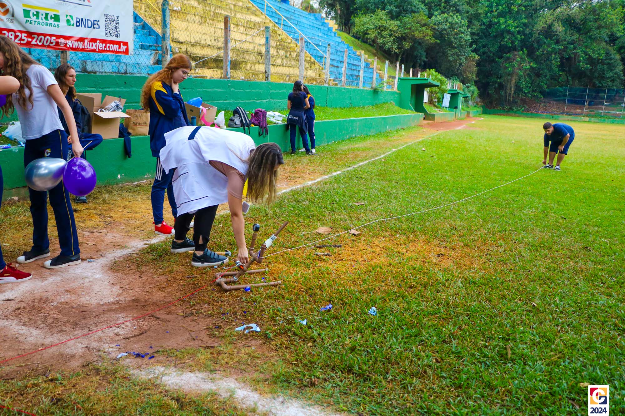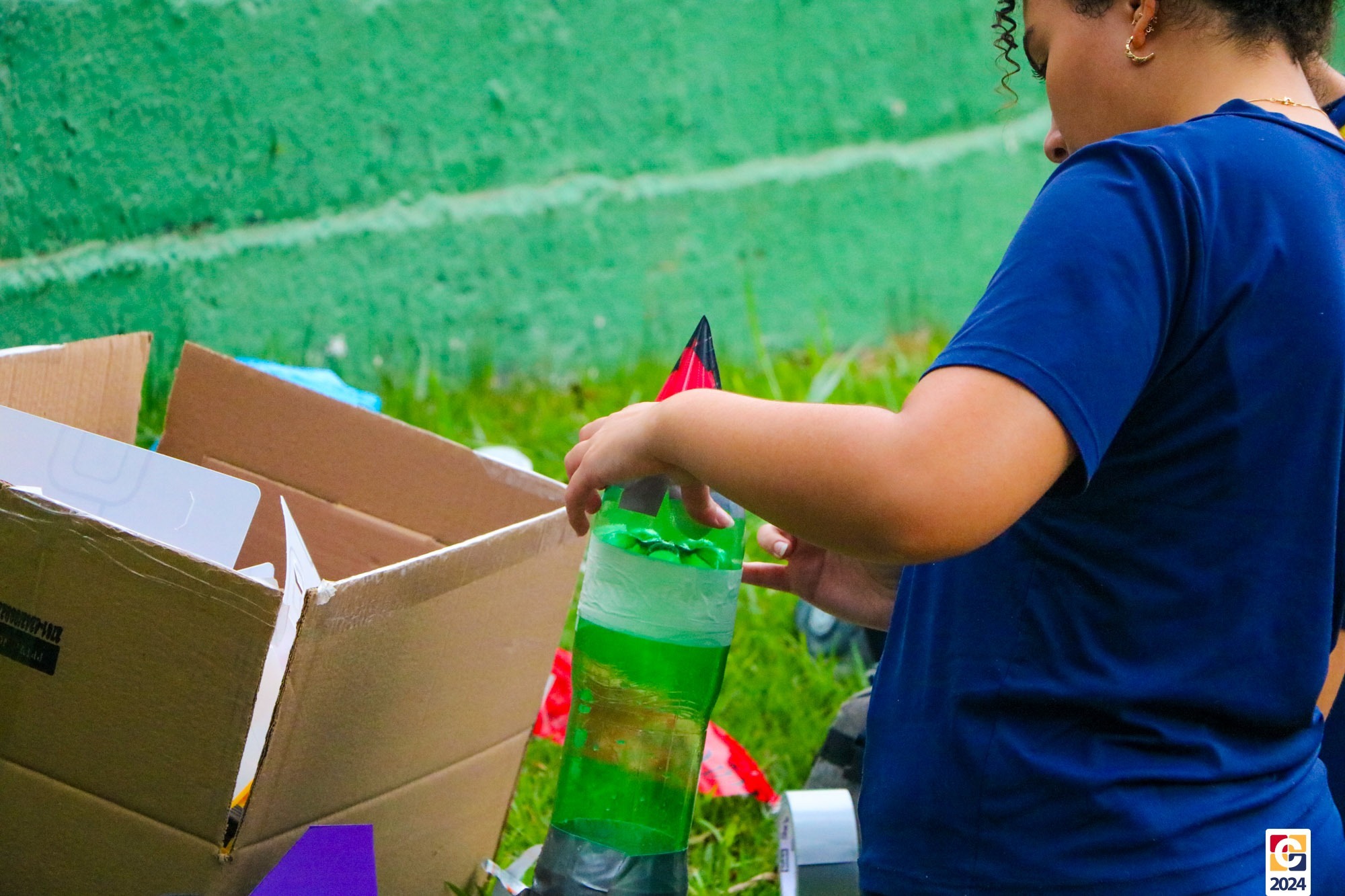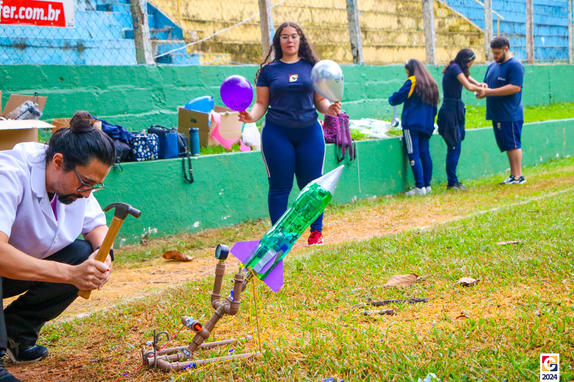 Jovens do nosso Ensino Médio estão construindo foguetes de nível 4 para participar da Mostra Brasileira de Foguetes (MOBFOG). Construídos pelos estudantes com a orientação dos professores Daniele Lopez e Ricardo Yaguti, os artefatos astronômicos são compostos por garrafas PET, que ficam presas numa base de lançamento fixada no chão e têm como combustível a mistura, em qualquer proporção, de vinagre com uma concentração de 4% de ácido acético e bicarbonato de sódio. 👨🔬