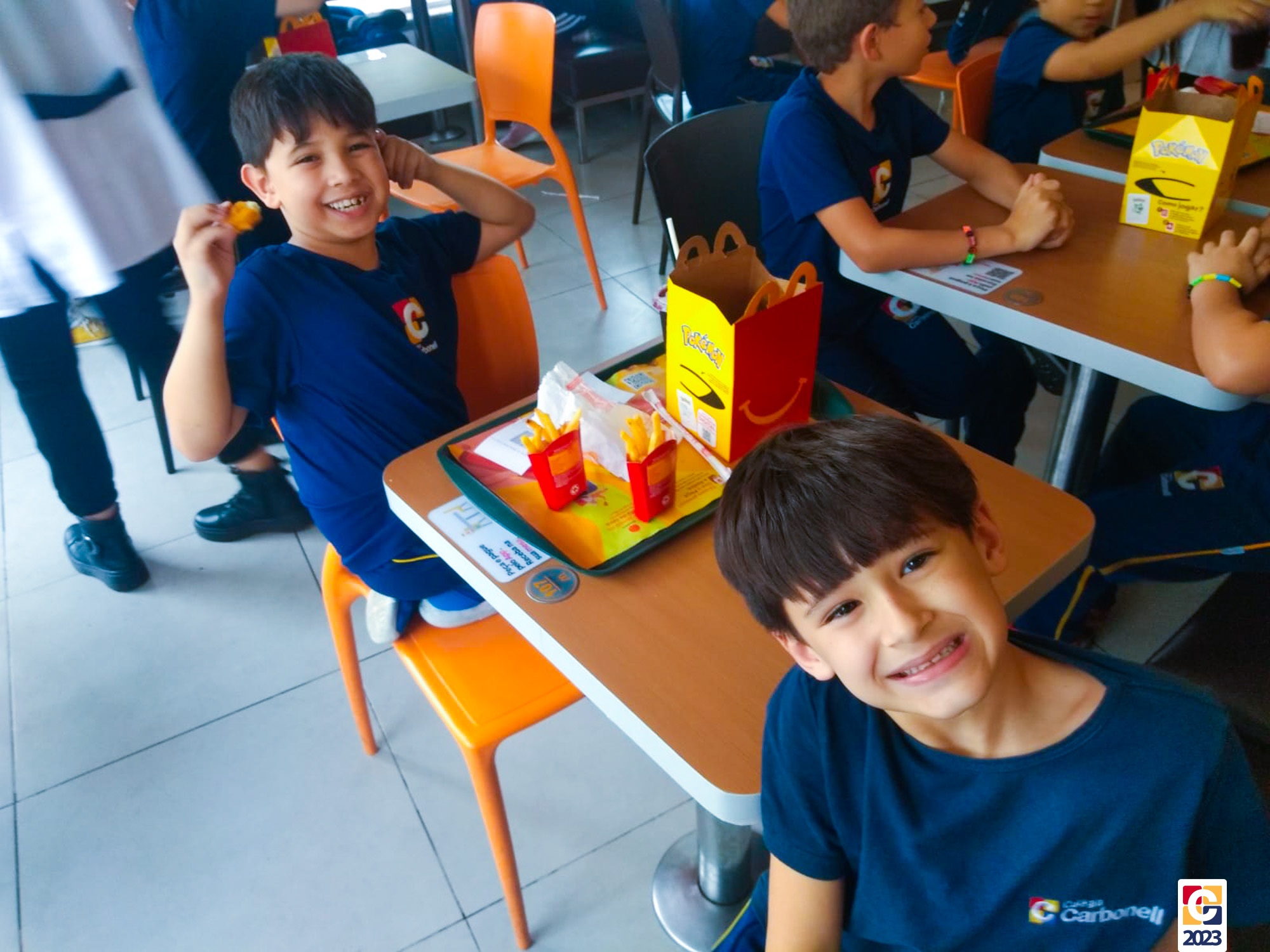 No Carbonell, refletimos sobre a escolha da profissão desde cedo. Em uma dessas experiências que a gente costuma levar nas lembranças para a vida toda, crianças do Período Integral curtiram uma atividade fora da sala de aula, bem diferente, em visita à cozinha do McDonald’s. Nossa turminha dos Anos Iniciais do Ensino Fundamental aprendeu sobre o processo de preparação dos lanches, sobre o armazenamento dos alimentos e a dinâmica agitada de atendimento aos clientes. Para finalizar — afinal, não é sempre que eles podem! —, todos puderam se deliciar com seus lanches favoritos. 🍔