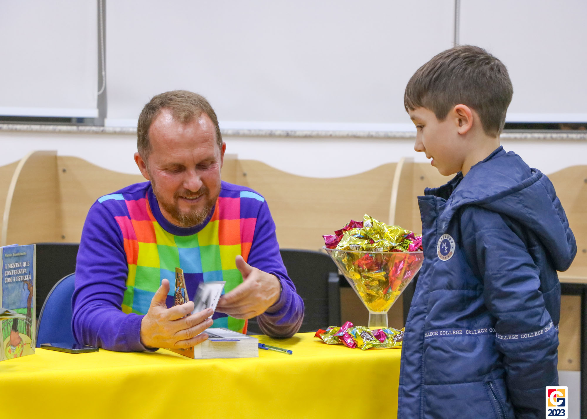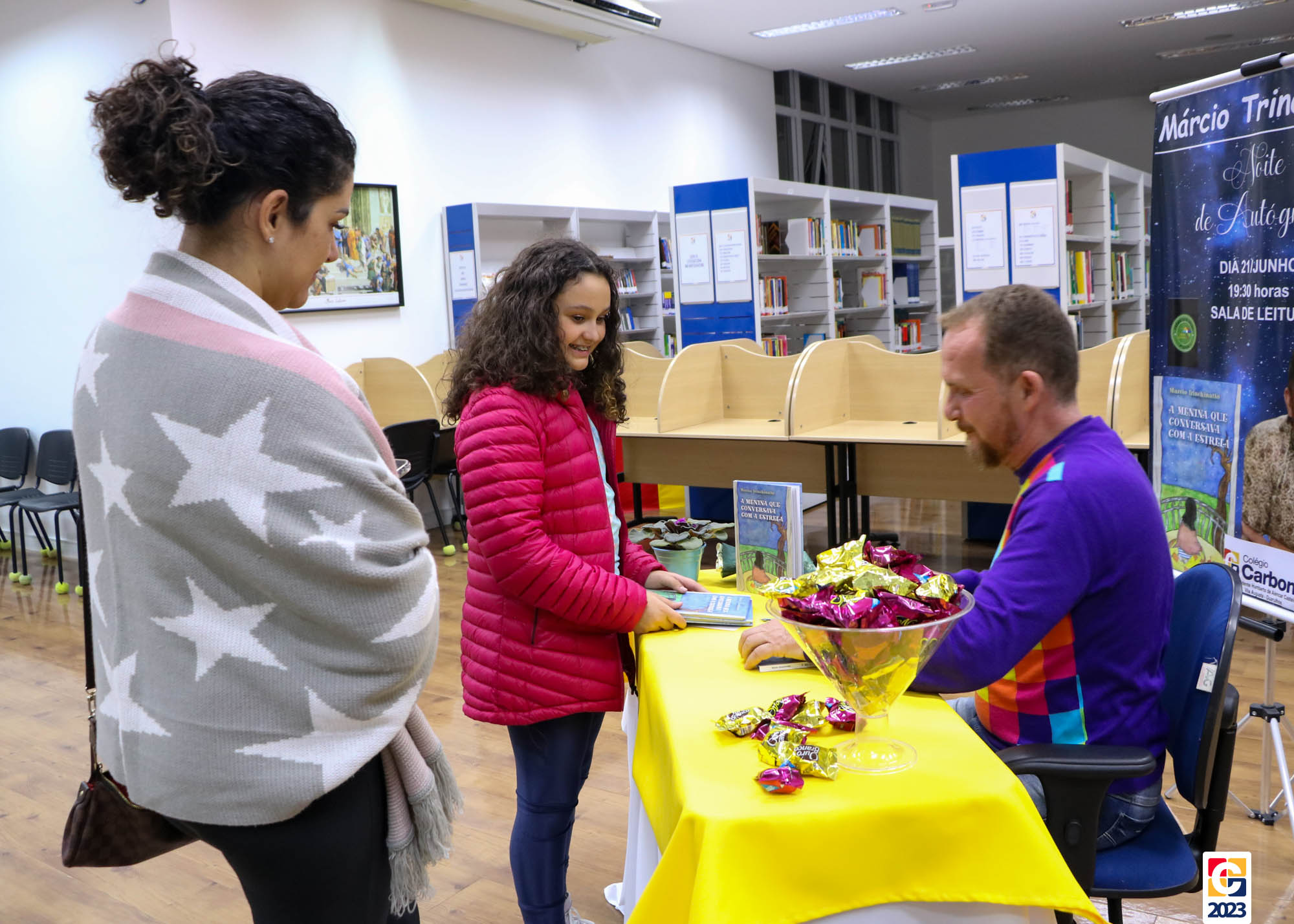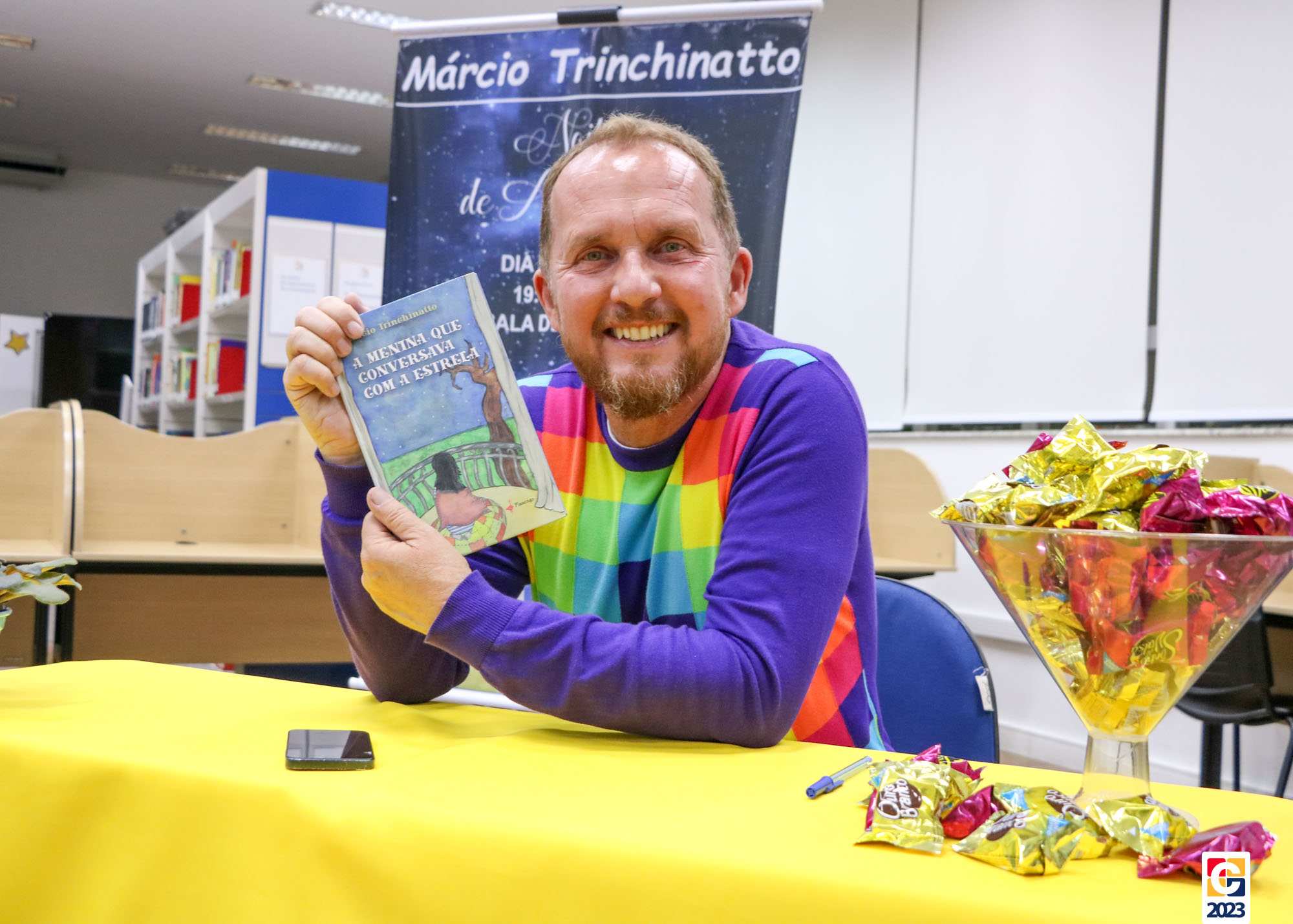 No último semestre, em junho, Marcio Trinchinatto — Professor de Teatro do Colégio Carbonell e autor do livro “A Menina que Conversava com a Estrela” — compartilhou conosco a história de seu livro e suas vivências em uma noite de autógrafos. 🗣