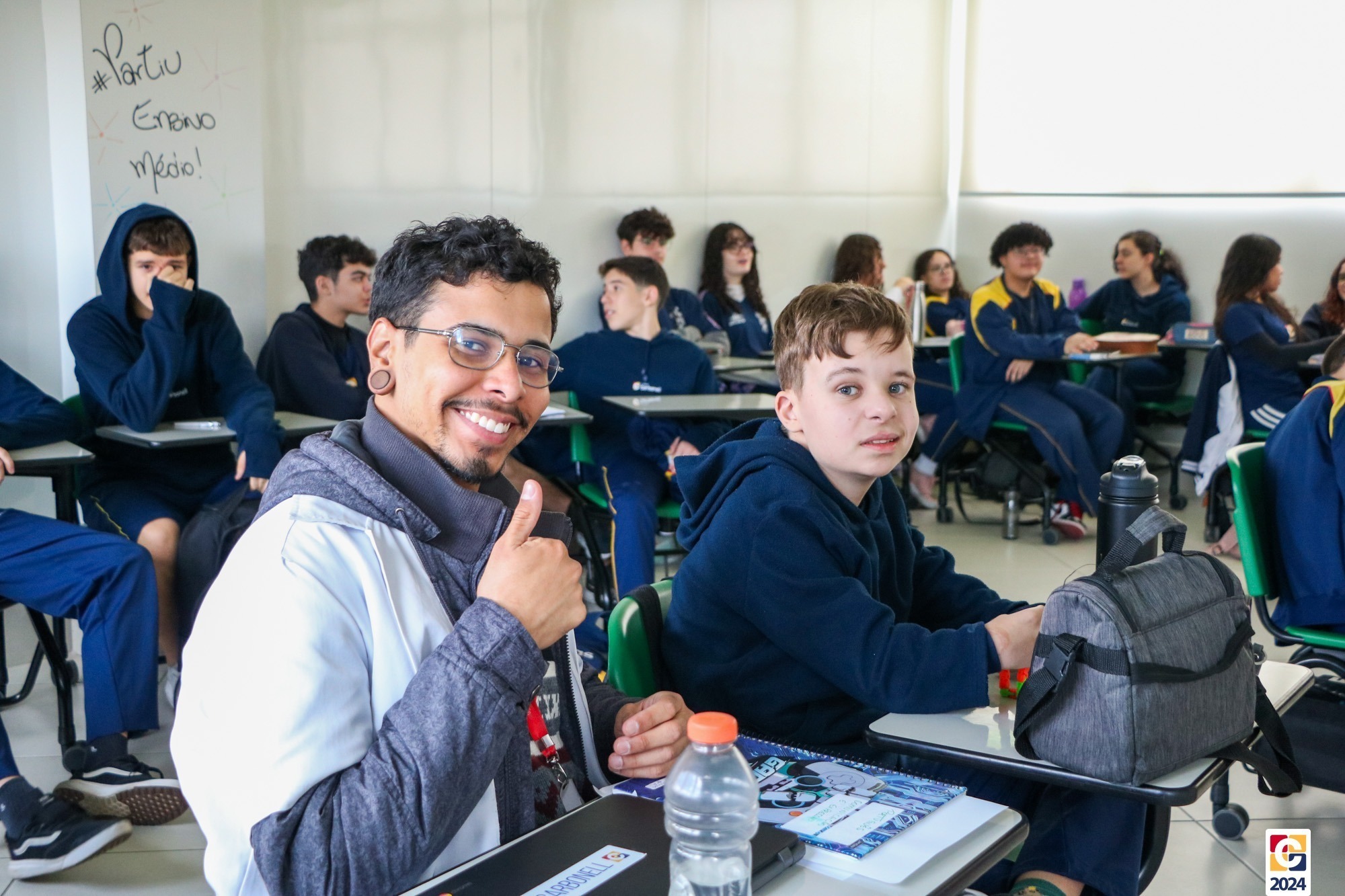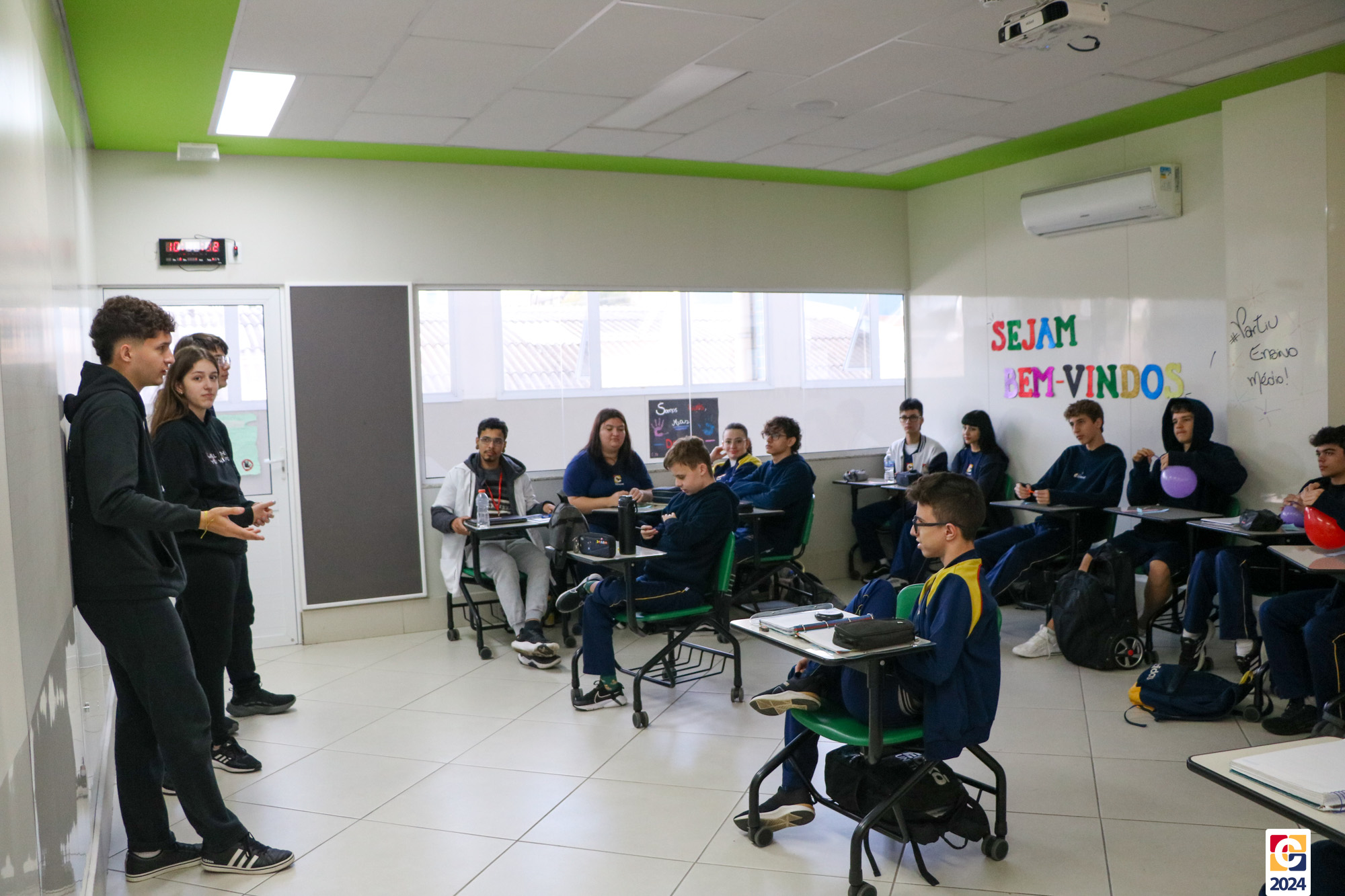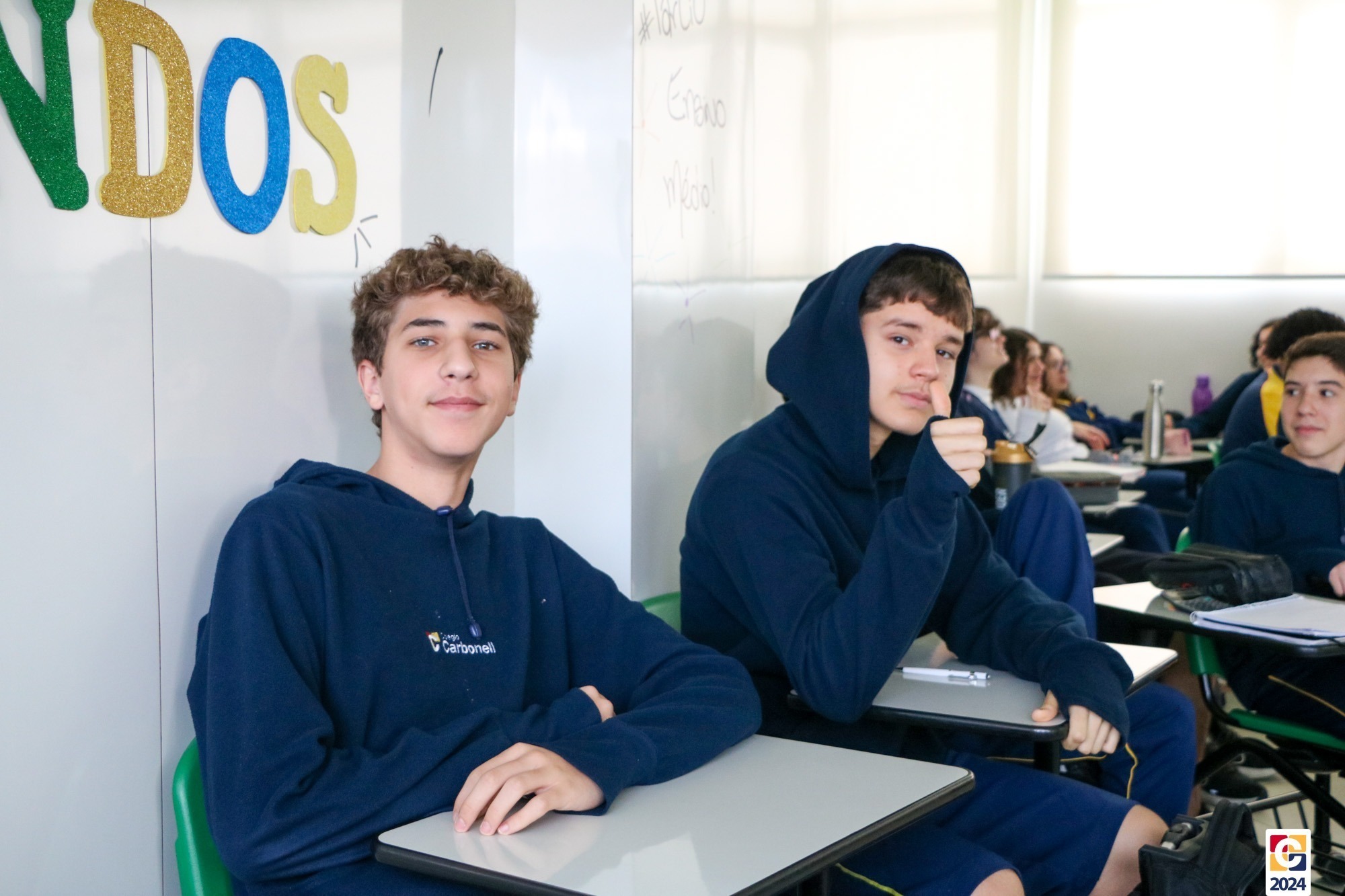 Na segunda-feira (26), os estudantes dos 9º Anos vivenciaram uma experiência única com a dinâmica “Partiu Ensino Médio”. Eles tiveram a oportunidade de passar um dia de aula no prédio do Ensino Médio, interagindo com os professores que os acompanharão nessa nova etapa. A atividade, mediada pela Professora Liz de Projeto de Vida, pela Orientadora do Ensino Médio Renata Nogueira e por nossa Mantenedora Andréa Lourenço, permitiu que os estudantes conhecessem de perto a rotina e as exigências do Ensino Médio, proporcionando uma transição mais tranquila e segura. Essa imersão é mais um exemplo do compromisso do Colégio Carbonell em preparar seus estudantes para os desafios futuros. 📚