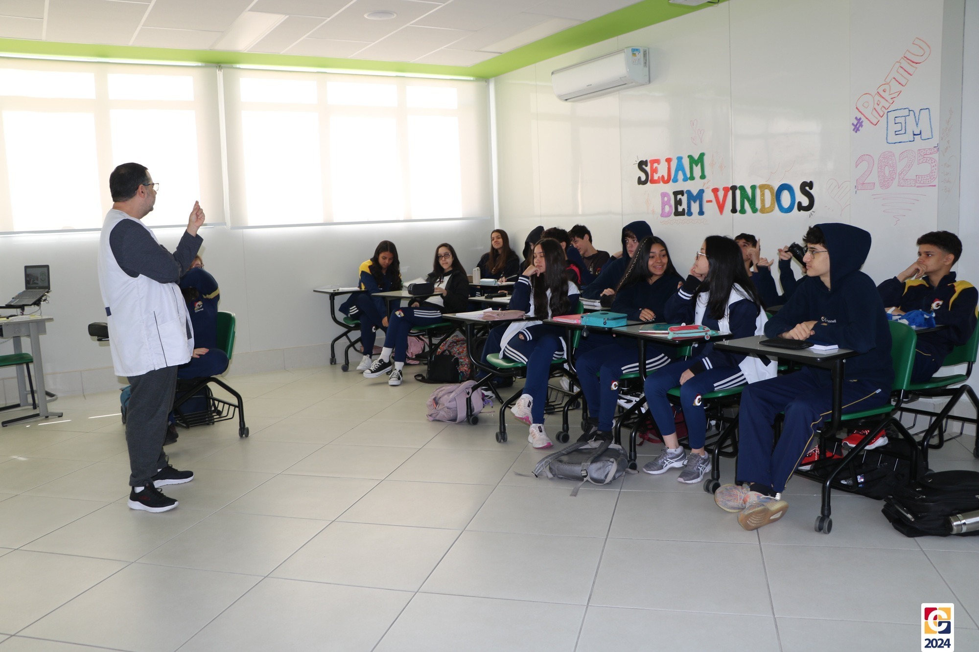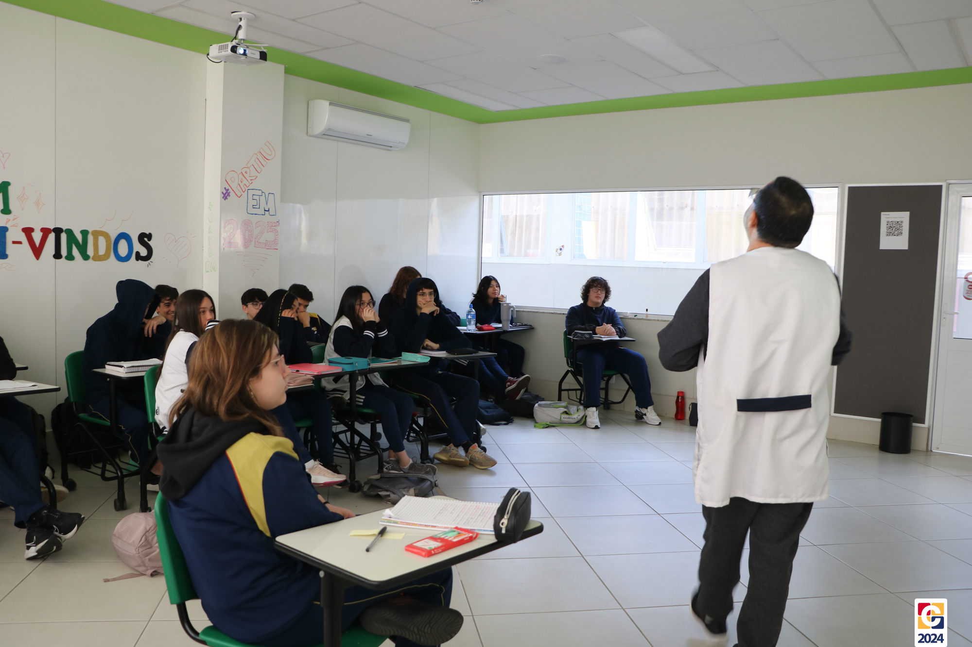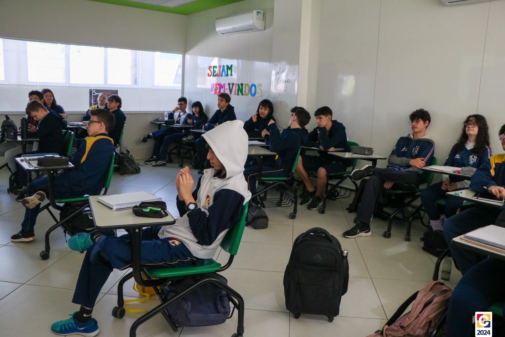 Na segunda-feira (26), os estudantes dos 9º Anos vivenciaram uma experiência única com a dinâmica “Partiu Ensino Médio”. Eles tiveram a oportunidade de passar um dia de aula no prédio do Ensino Médio, interagindo com os professores que os acompanharão nessa nova etapa. A atividade, mediada pela Professora Liz de Projeto de Vida, pela Orientadora do Ensino Médio Renata Nogueira e por nossa Mantenedora Andréa Lourenço, permitiu que os estudantes conhecessem de perto a rotina e as exigências do Ensino Médio, proporcionando uma transição mais tranquila e segura. Essa imersão é mais um exemplo do compromisso do Colégio Carbonell em preparar seus estudantes para os desafios futuros. 📚