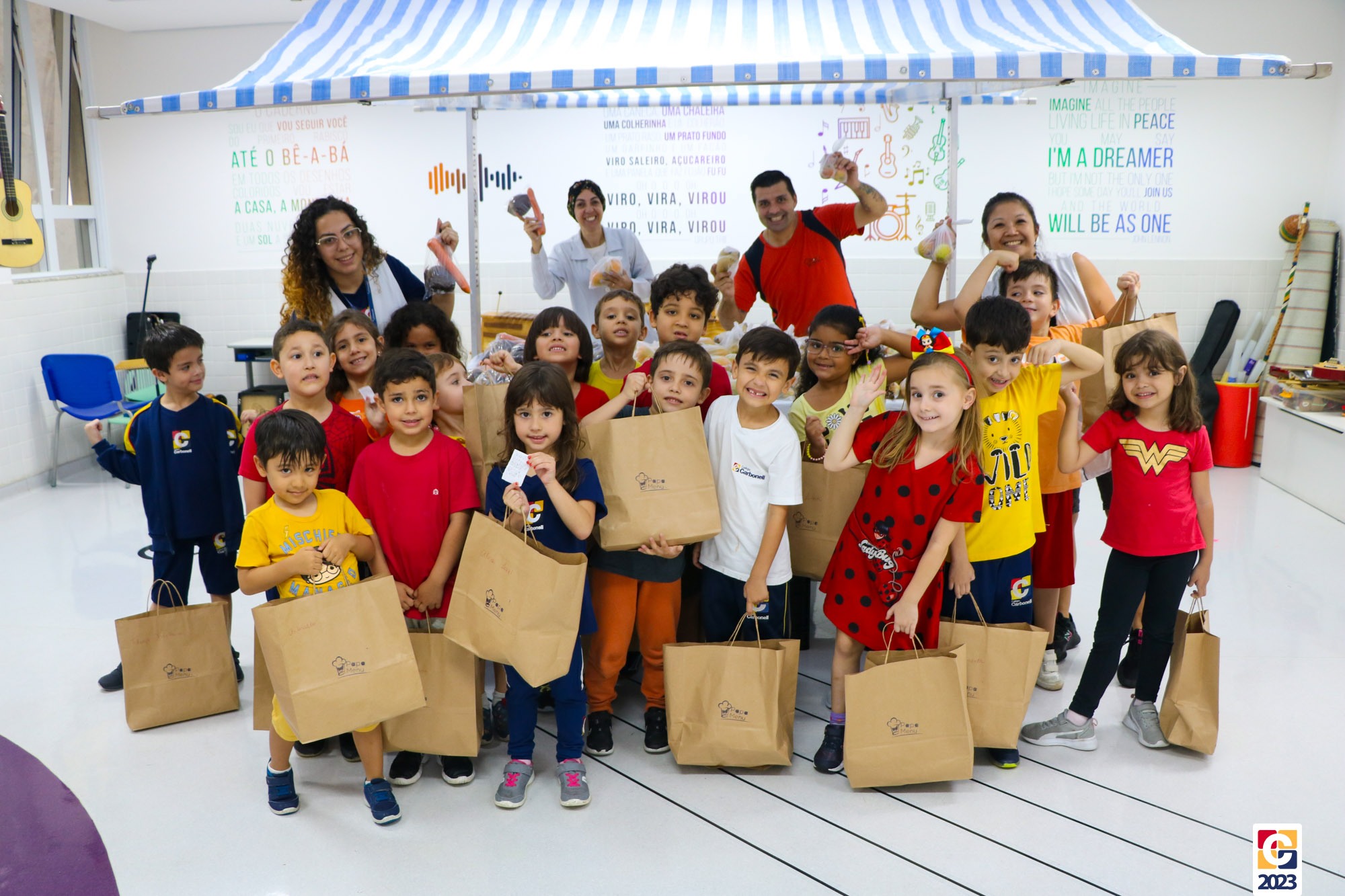 Além disso, com o apoio do PapaMenu, a Sala de Música se transformou numa feirinha colorida, repleta de frutas e hortaliças frescas. Nossos estudantes também se divertiram escolhendo alimentos saudáveis para compartilhar com suas famílias, levando um pouquinho da nossa Semana da Boa Alimentação para casa. 🏠
