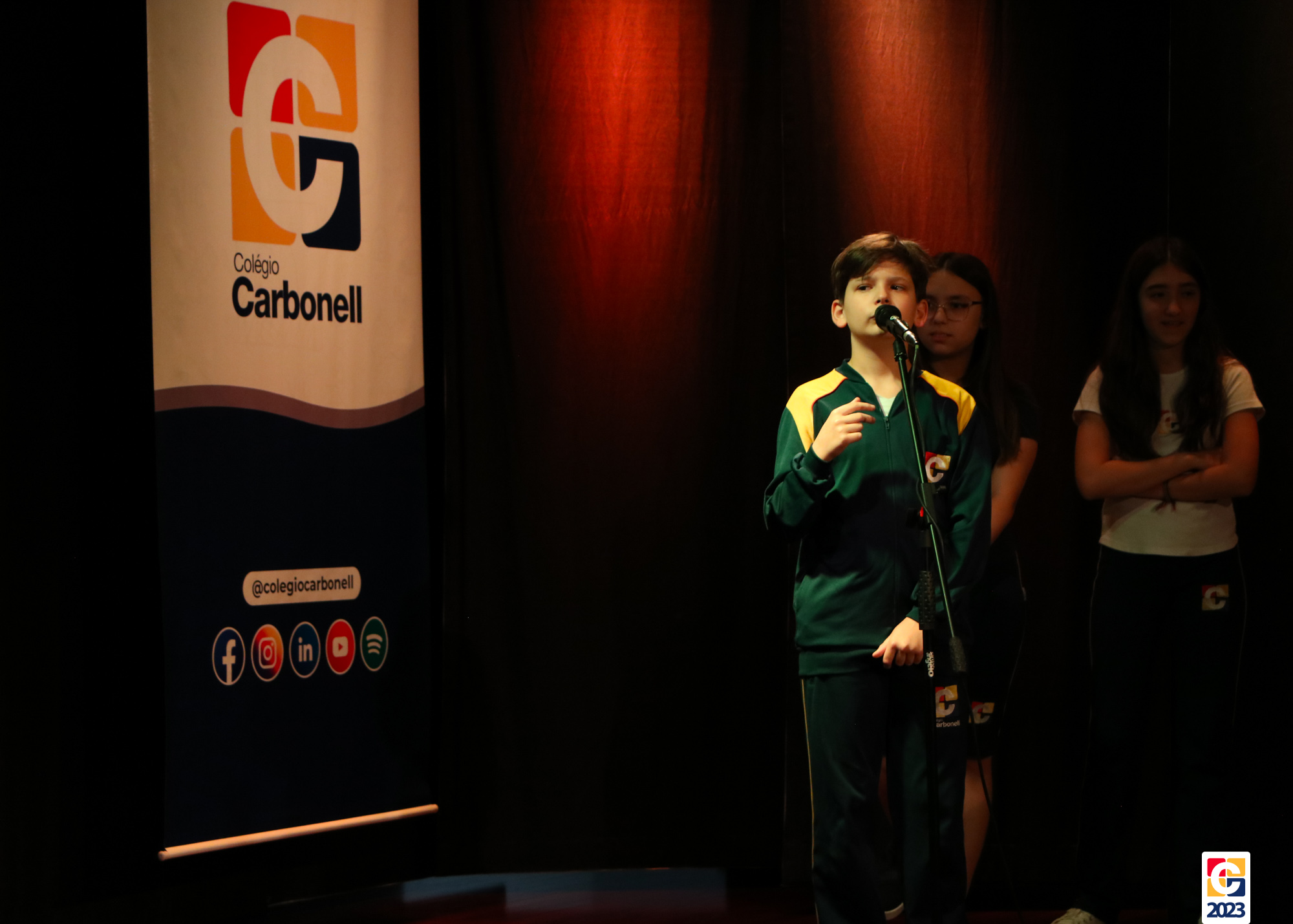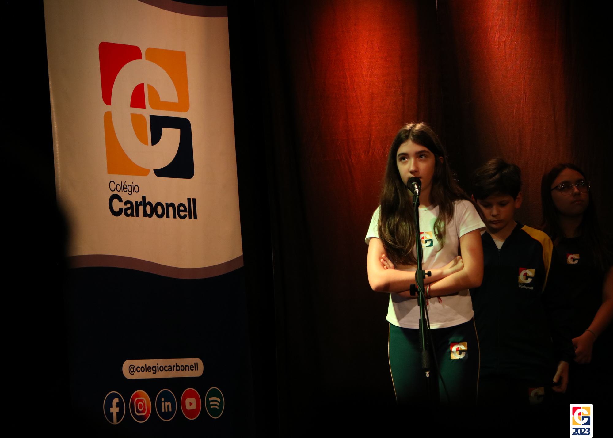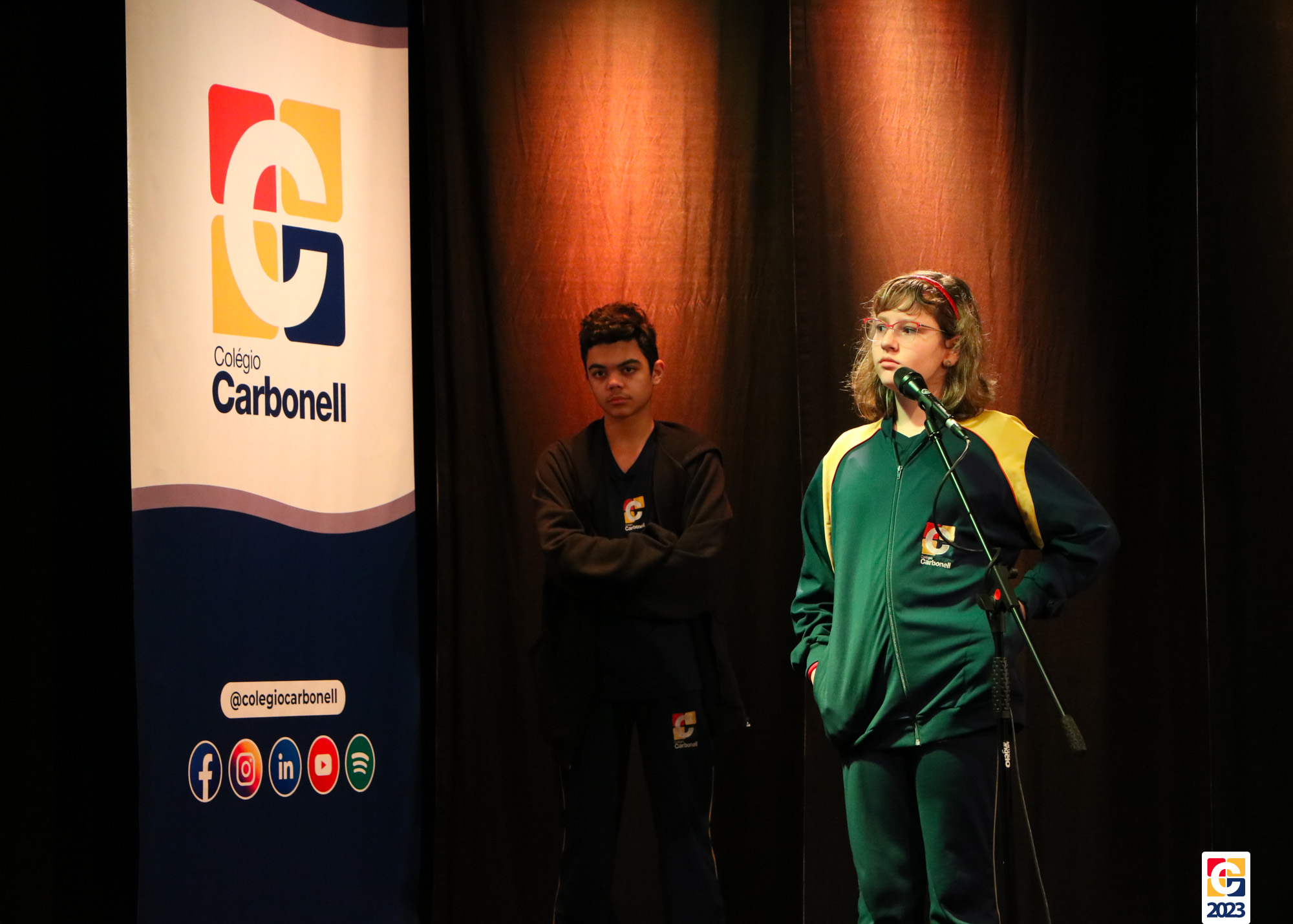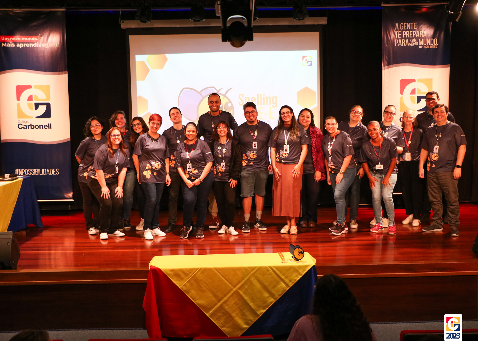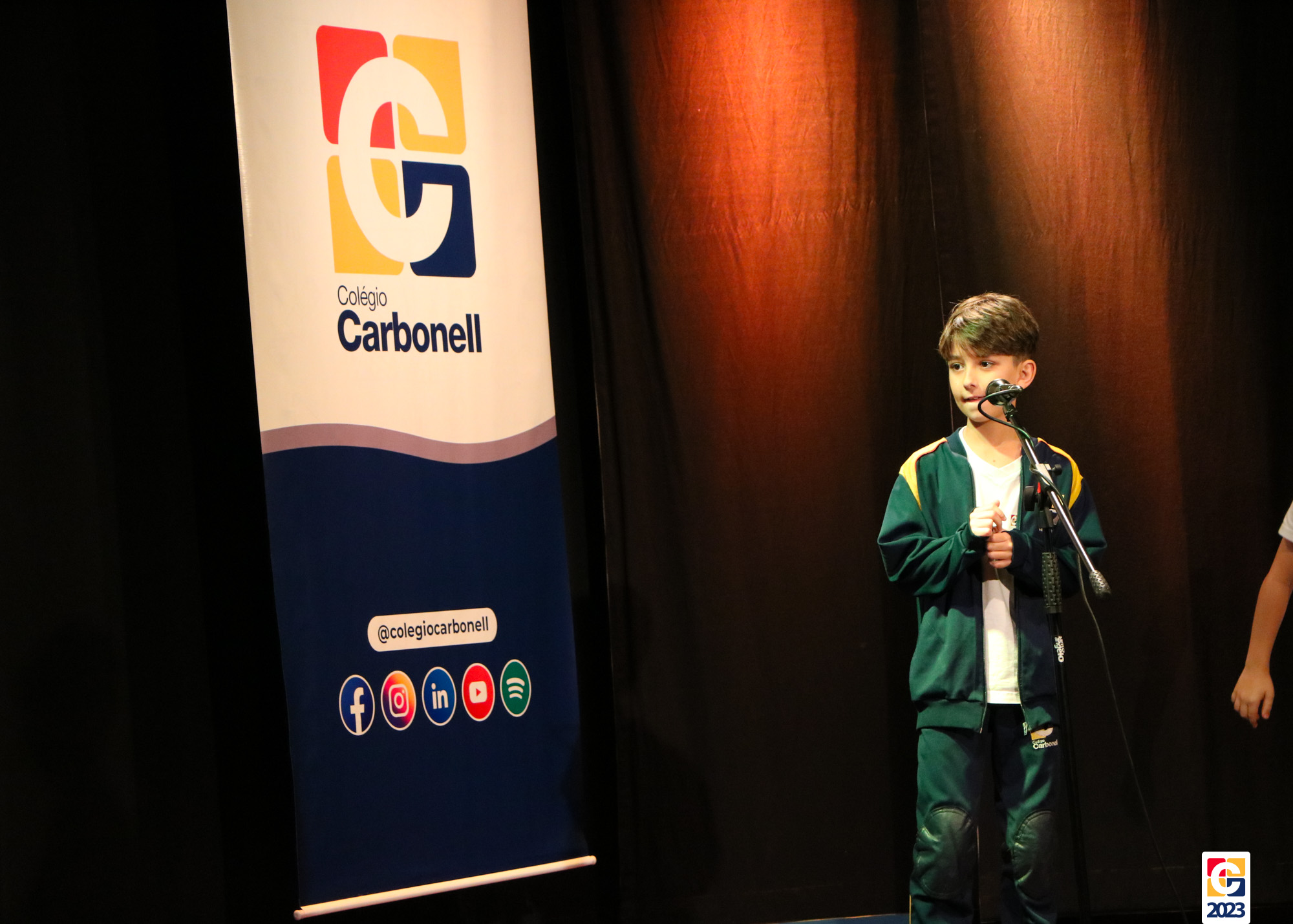 Mais uma vez, o Teatro Oswaldo Mazoni foi palco do Spelling Bee — competição de soletração em inglês para alunos dos Anos Iniciais ao Ensino Médio. A edição de 2023 aconteceu no último sábado (12), faz parte do currículo de inglês do Carbonell Language Program e foi iniciada já há alguns meses, em março, com etapas eliminatórias em grupos: 4º e 5º anos, 6º e 7º anos, 8º e 9º anos e, por fim, jovens do Ensino Médio. 💬