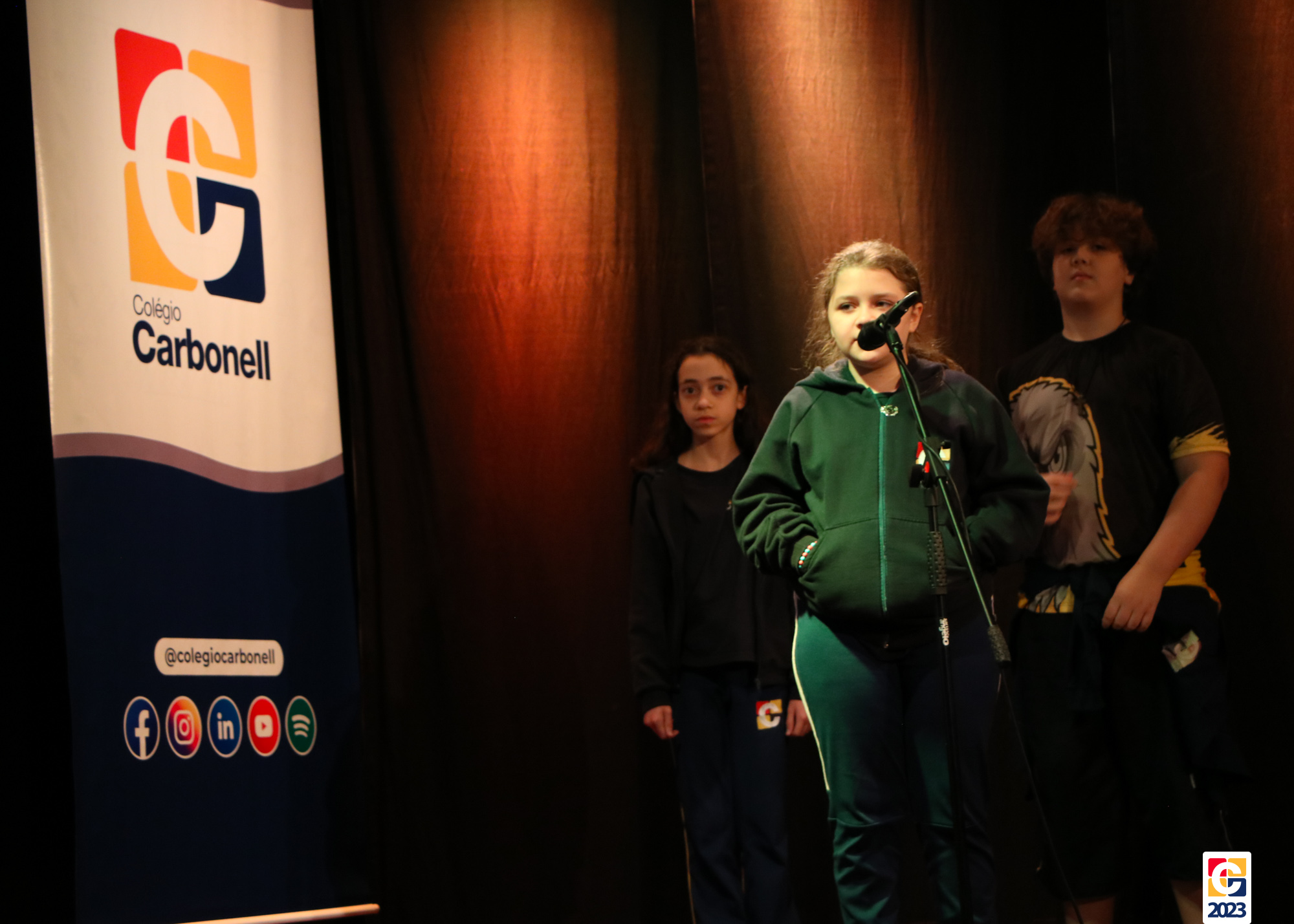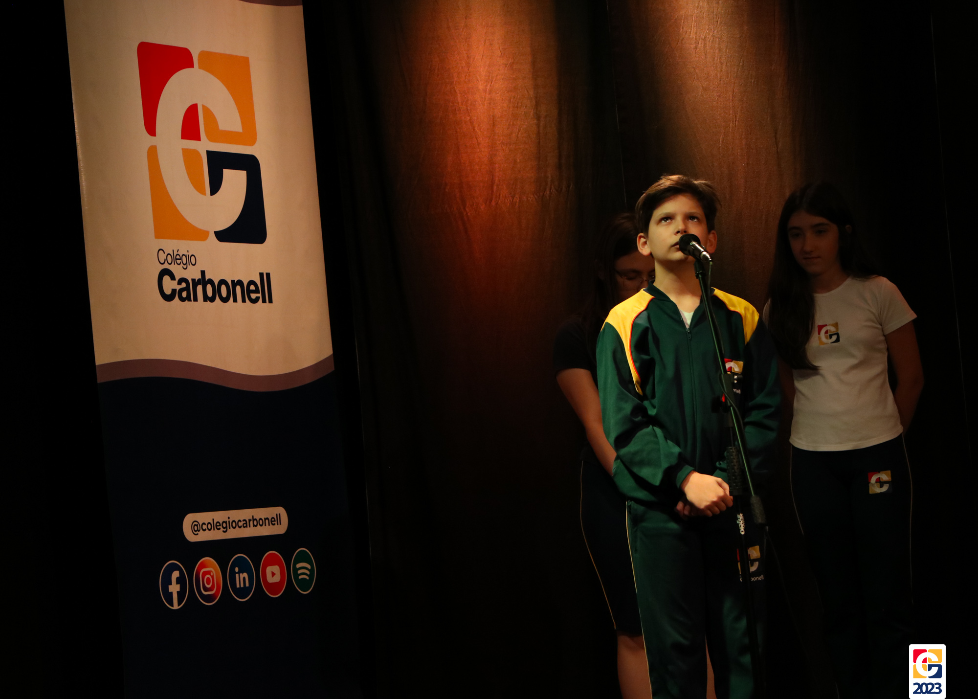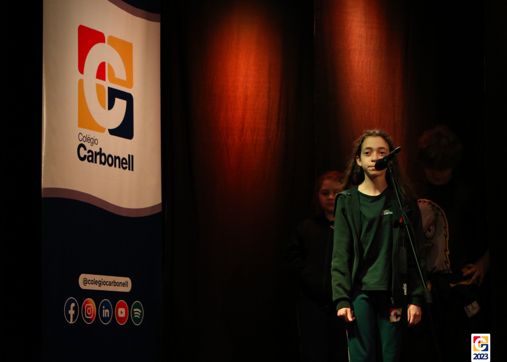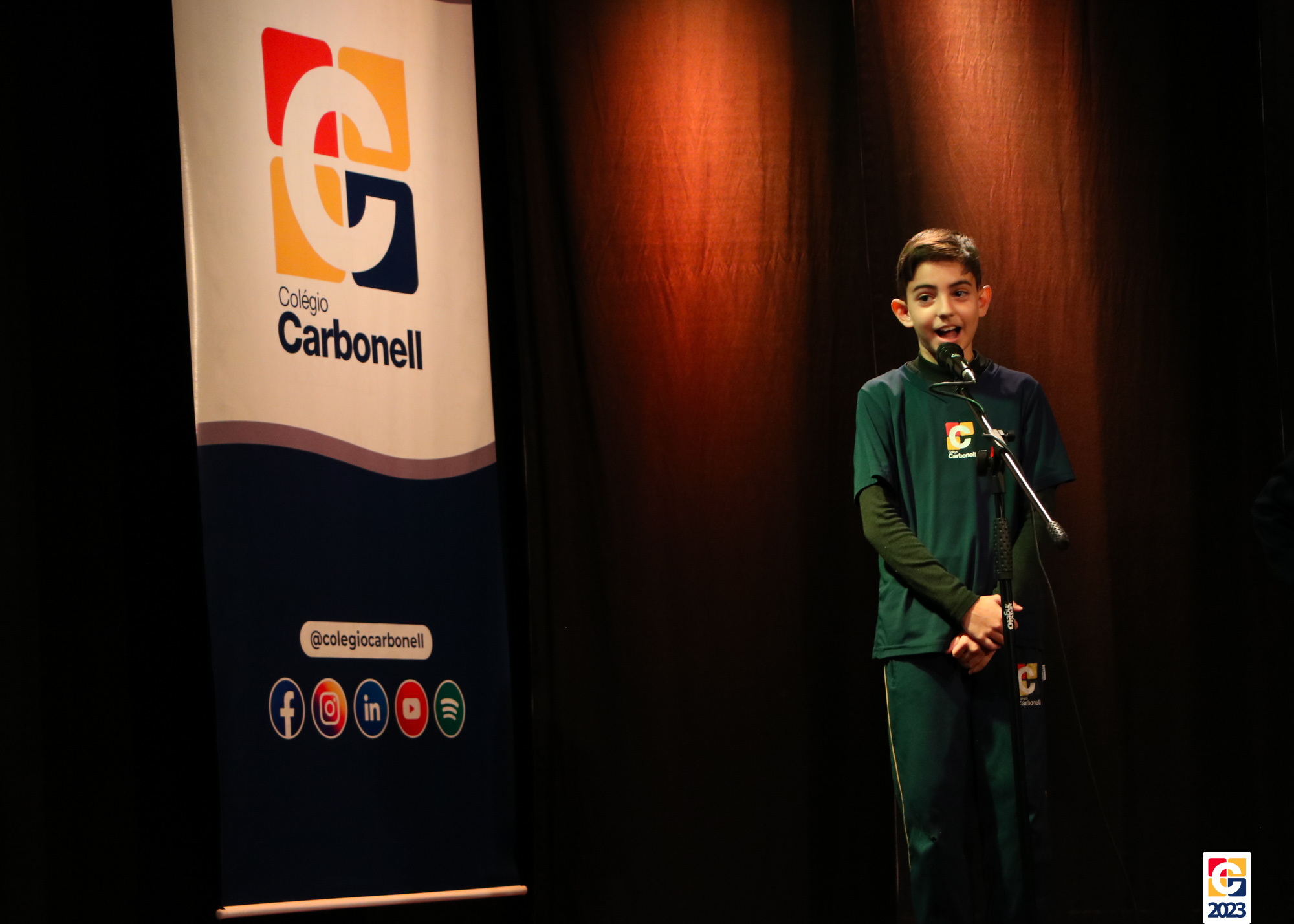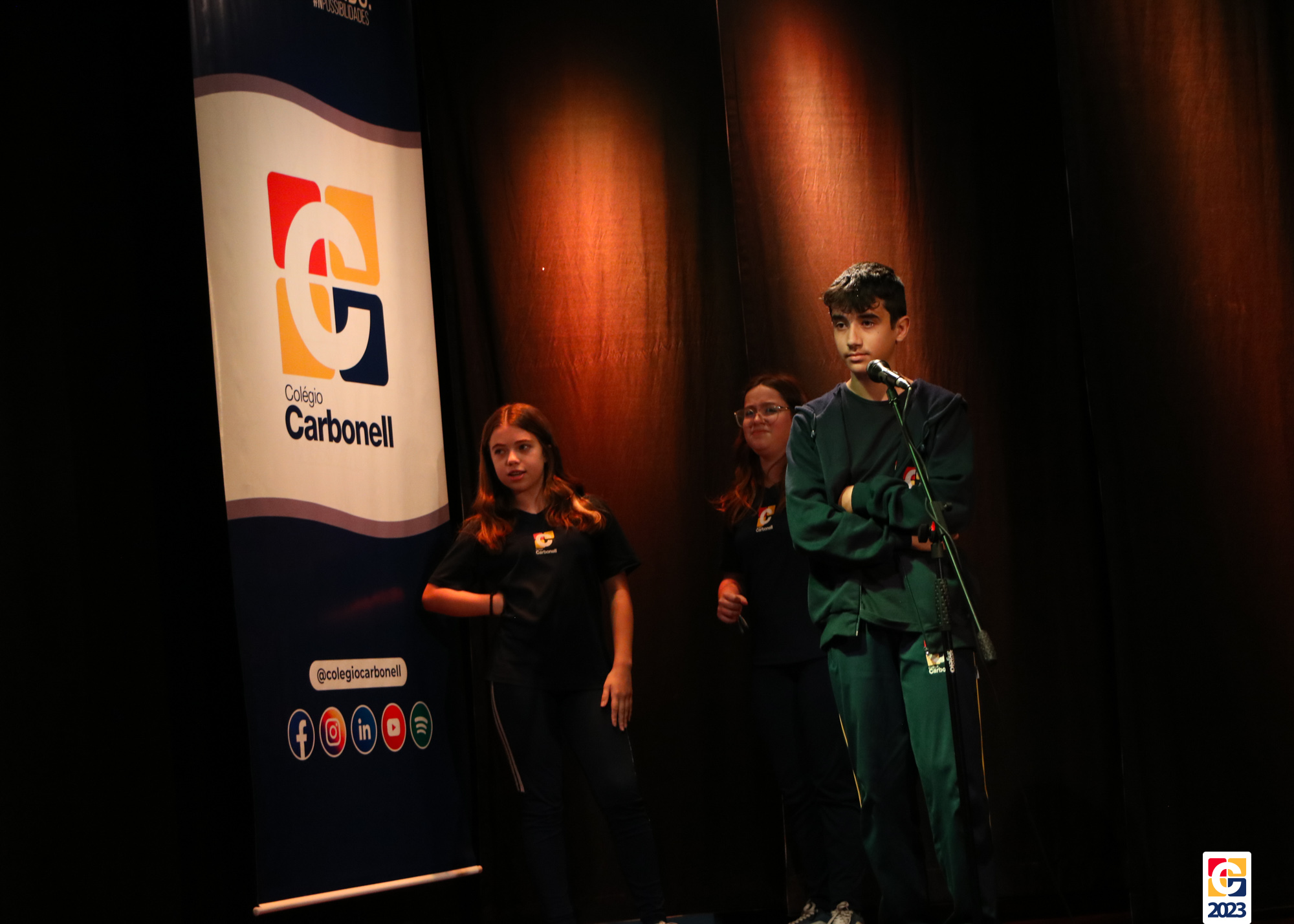 Mais uma vez, o Teatro Oswaldo Mazoni foi palco do Spelling Bee — competição de soletração em inglês para alunos dos Anos Iniciais ao Ensino Médio. A edição de 2023 aconteceu no último sábado (12), faz parte do currículo de inglês do Carbonell Language Program e foi iniciada já há alguns meses, em março, com etapas eliminatórias em grupos: 4º e 5º anos, 6º e 7º anos, 8º e 9º anos e, por fim, jovens do Ensino Médio. 💬